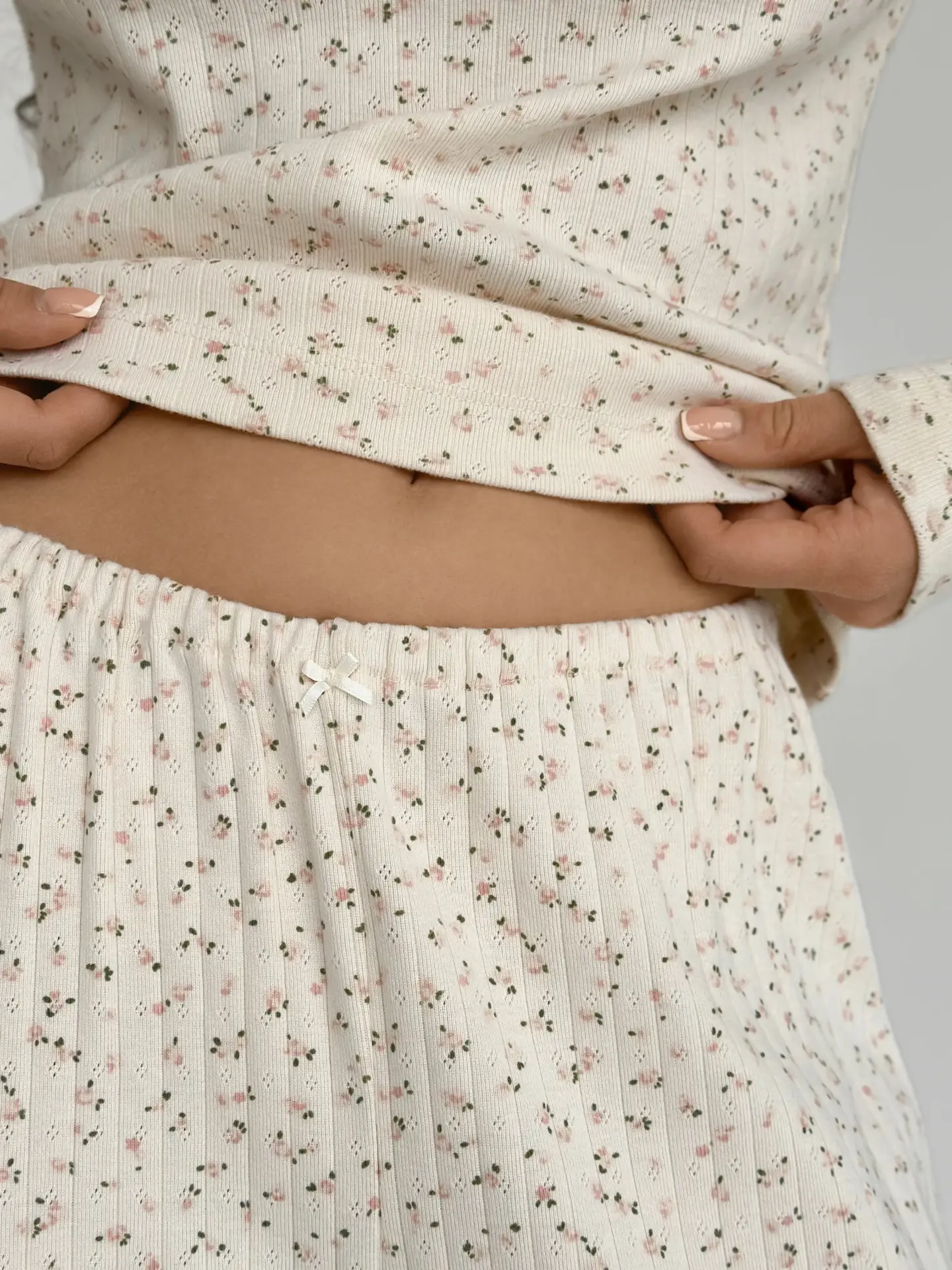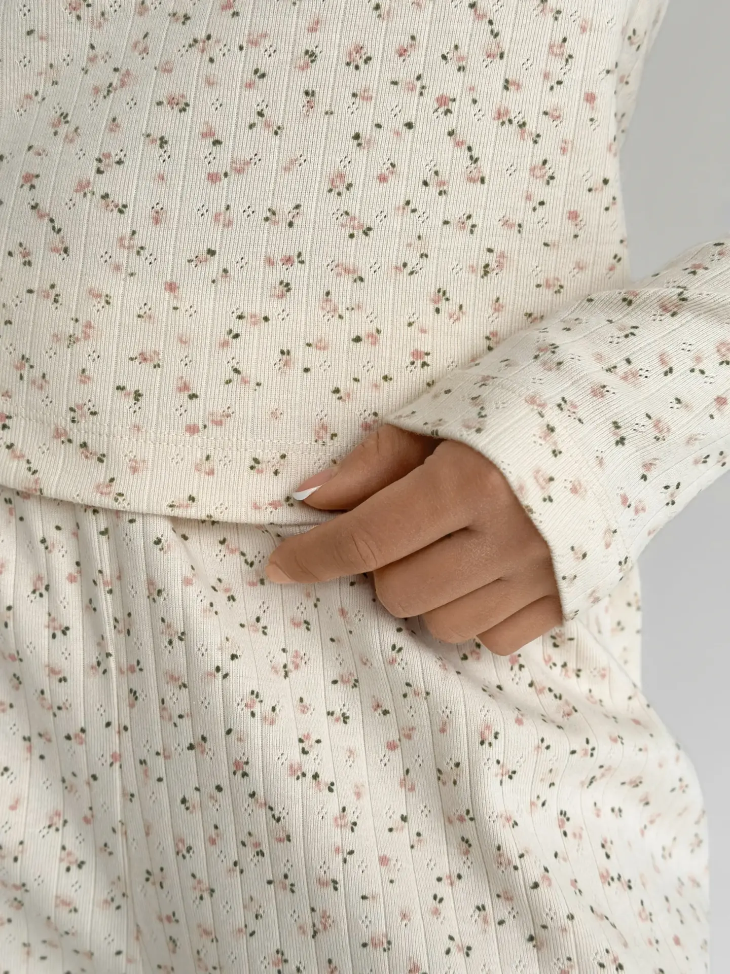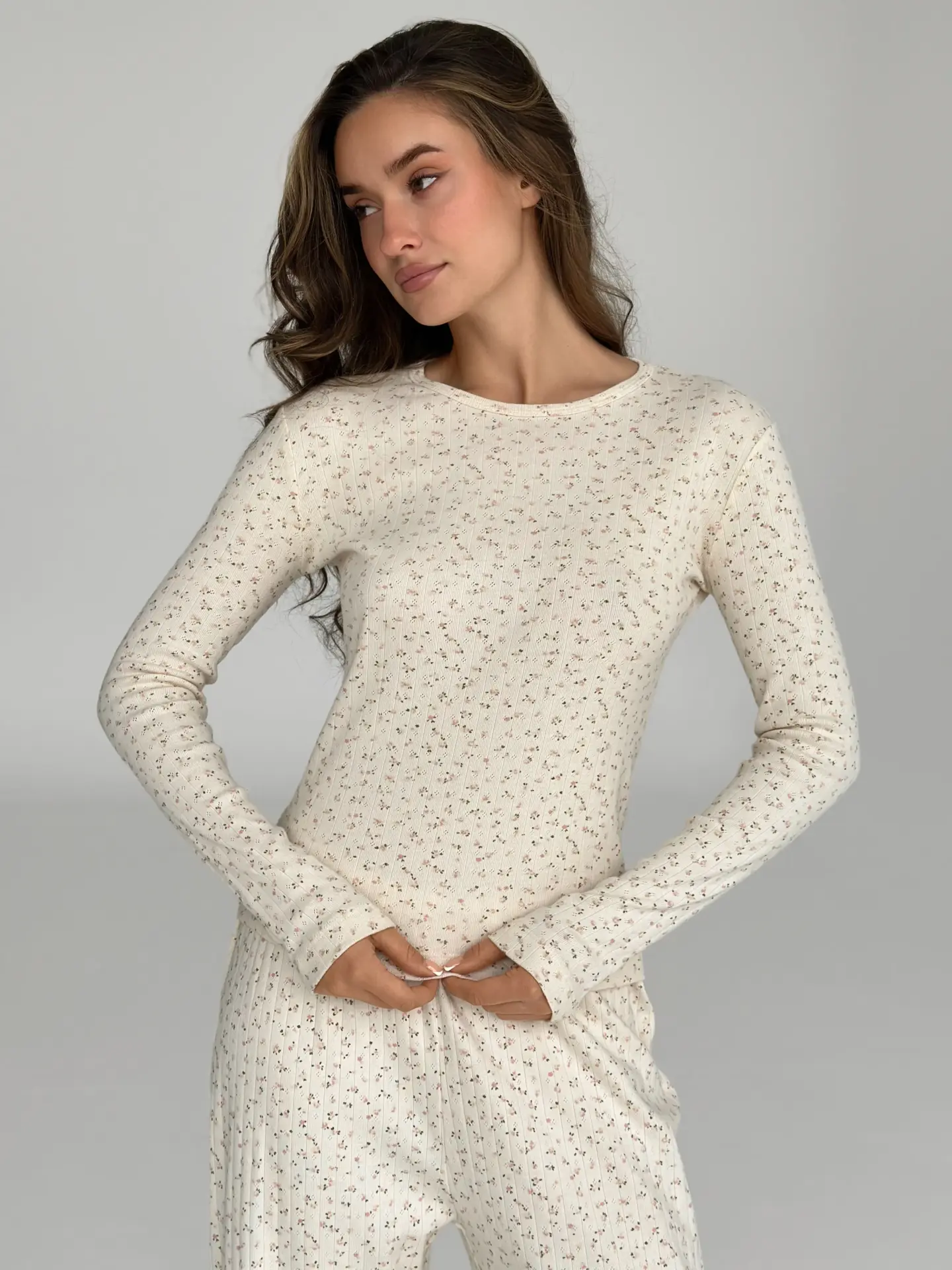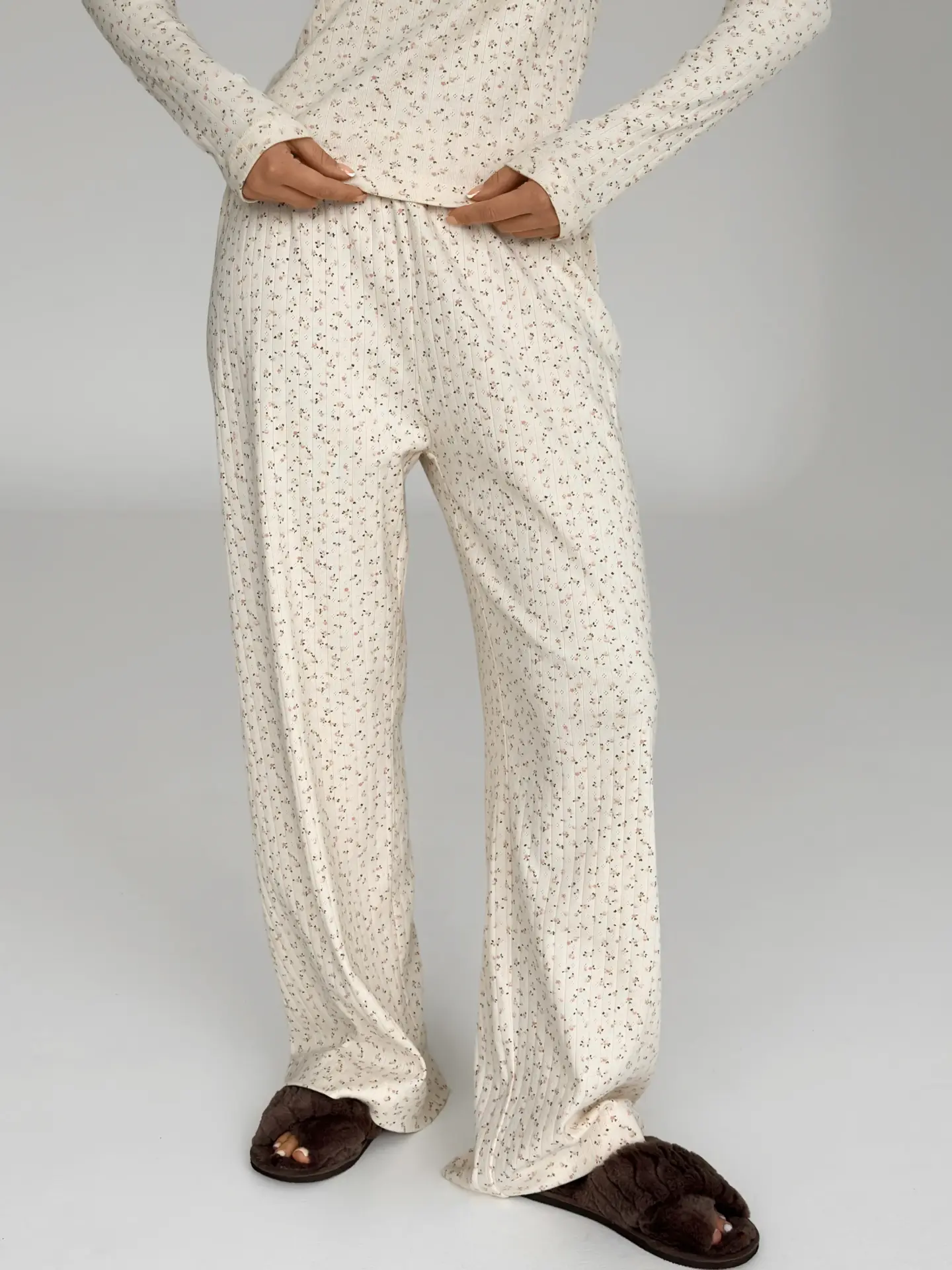 Рібана костюм трикотажний штани широкі та лонгслів рожева квітка - Twins