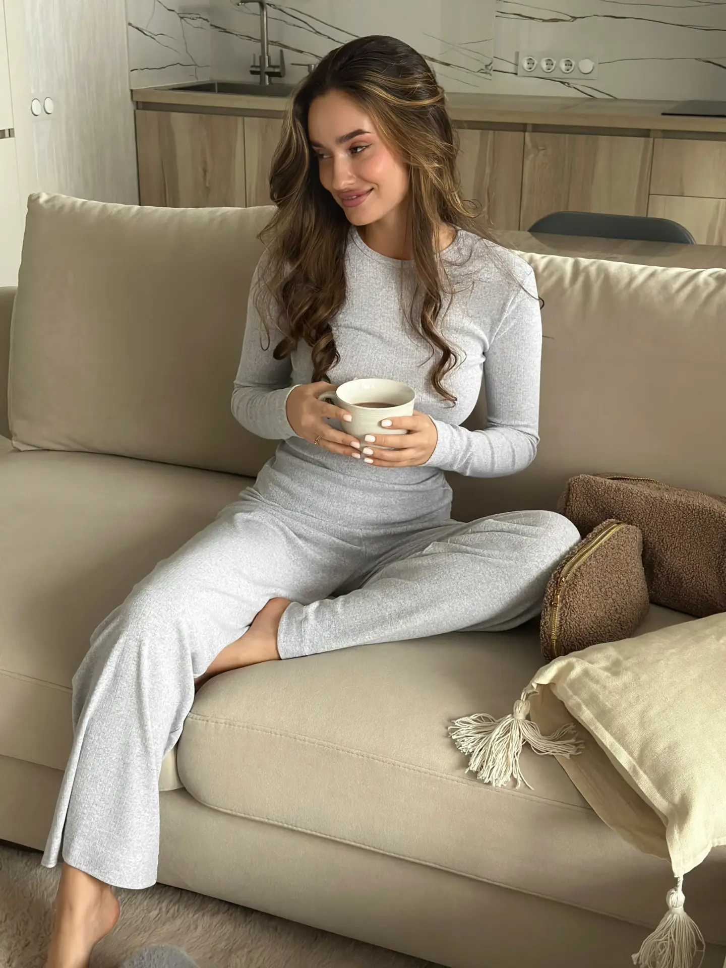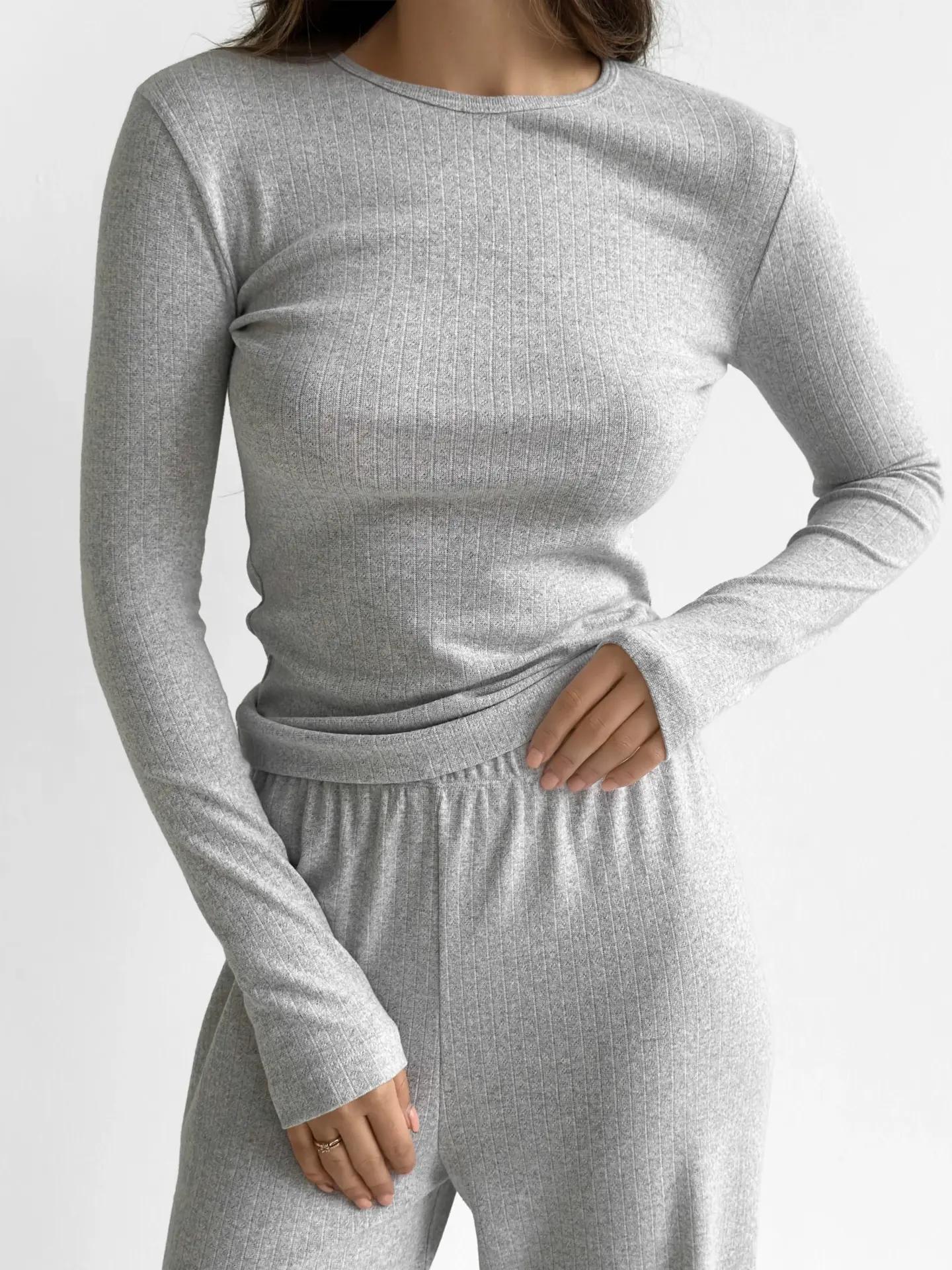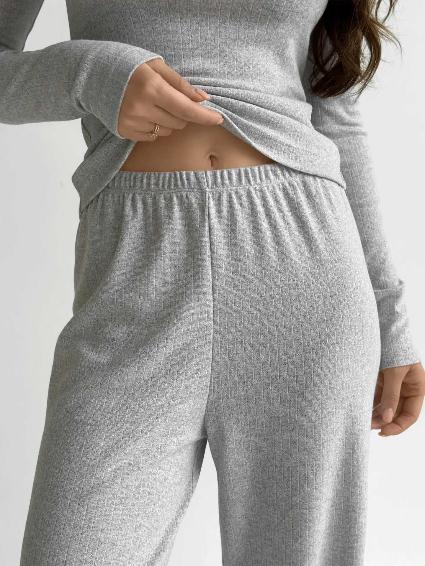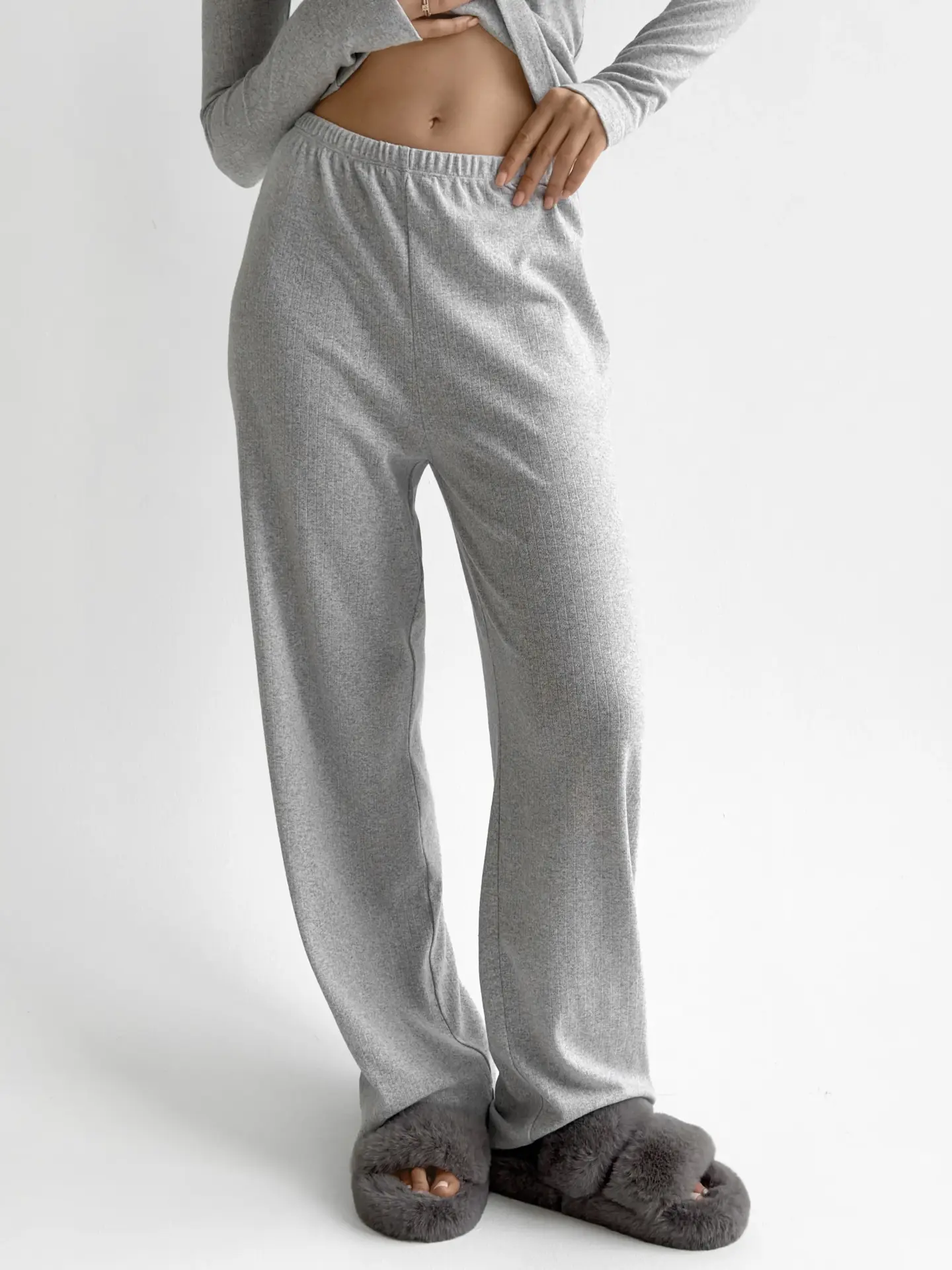 Трикотажний костюм із рібани — це ідеальне поєднання стилю та комфорту. Широкі штани та лонгслів забезпечують свободу рухів, а м’яка тканина дарує приємні відчуття протягом усього дня.
