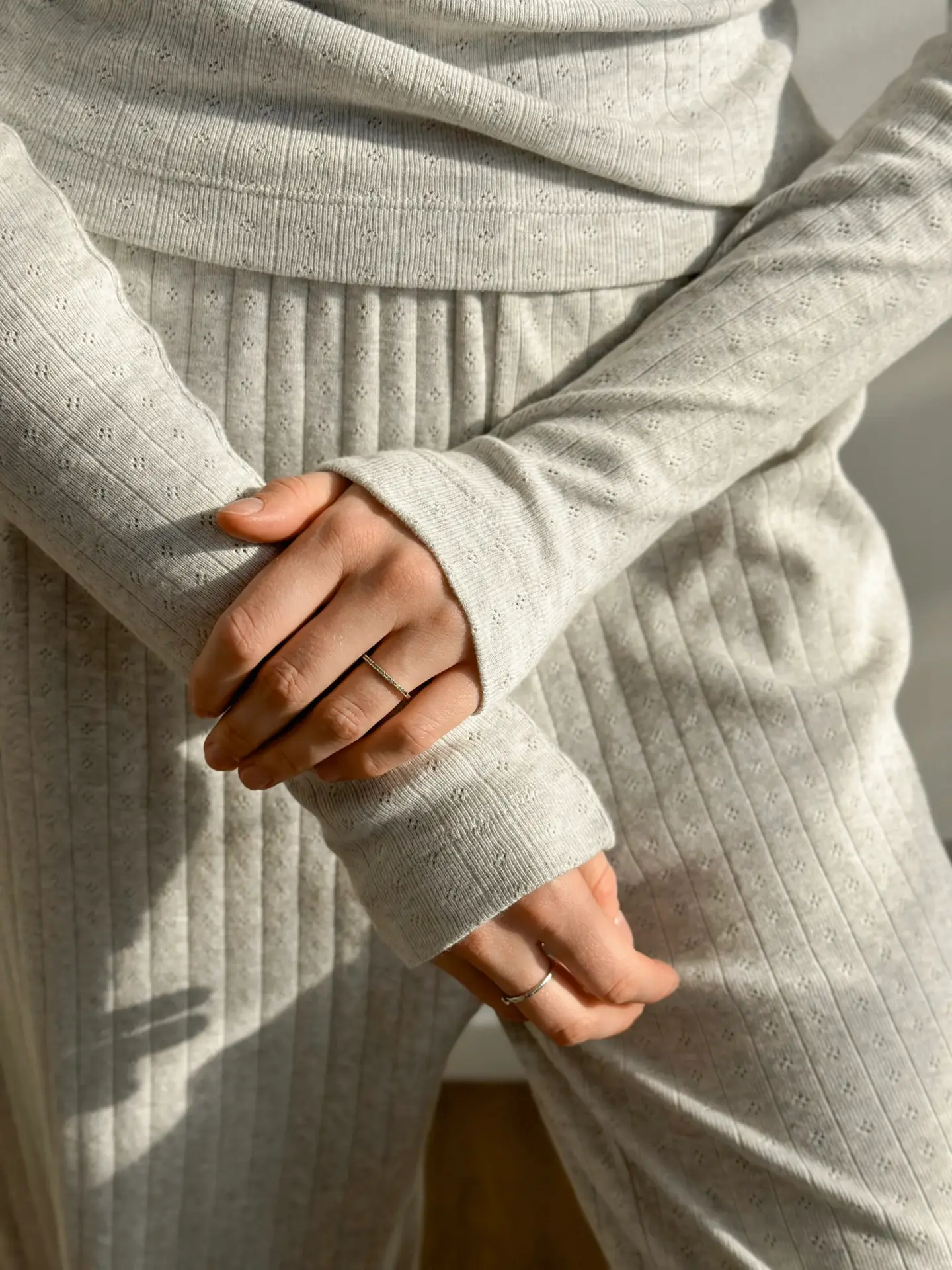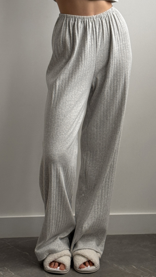 SOLD OUTРібана костюм трикотажний штани широкі та лонгслів світло сірий