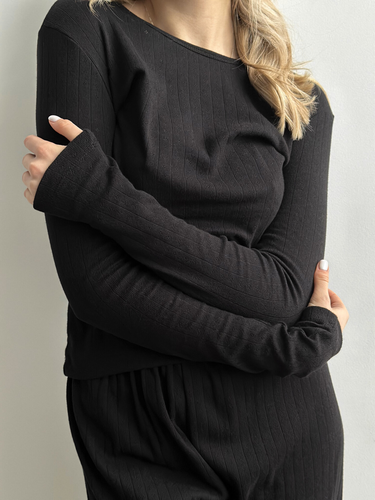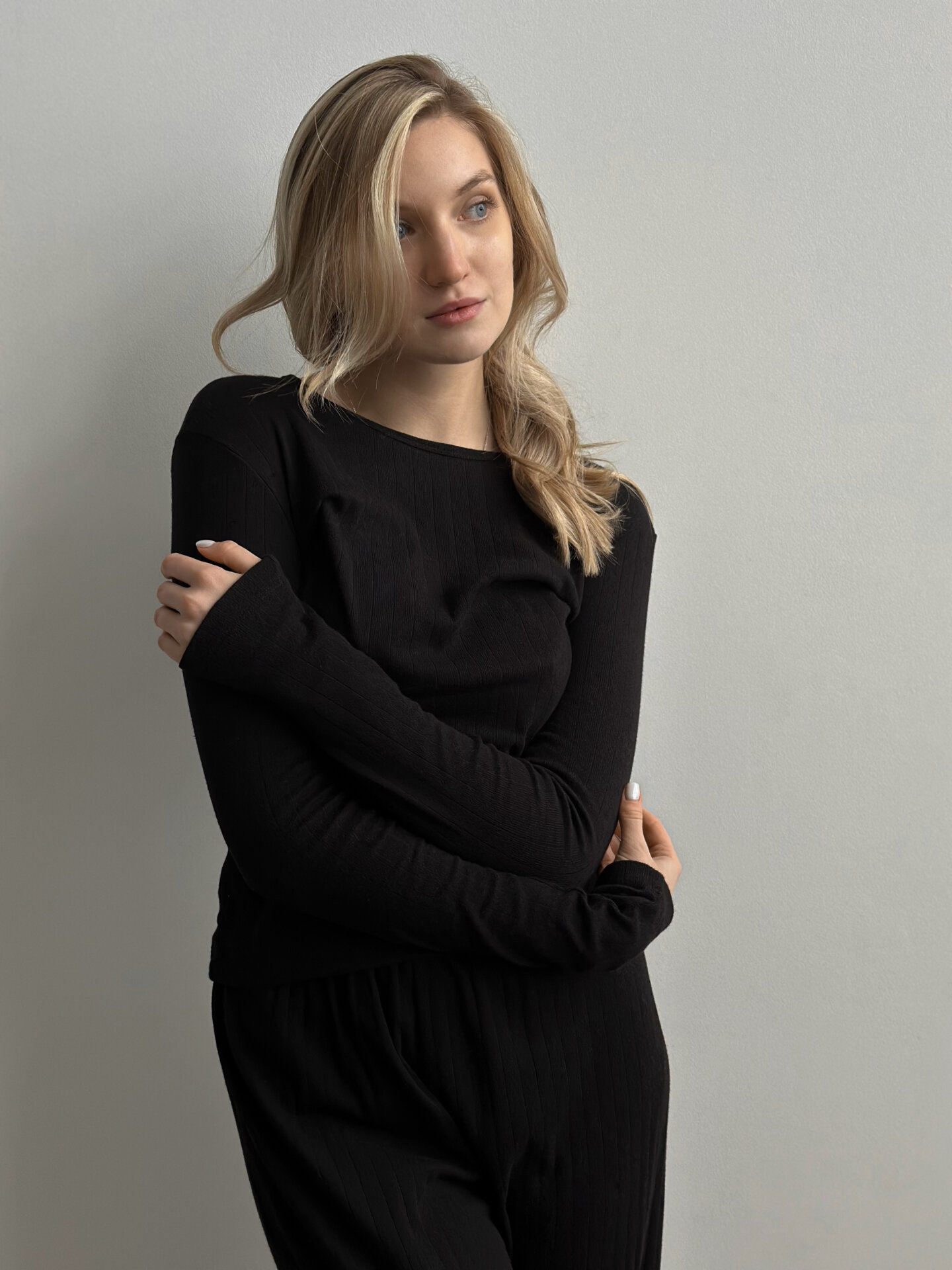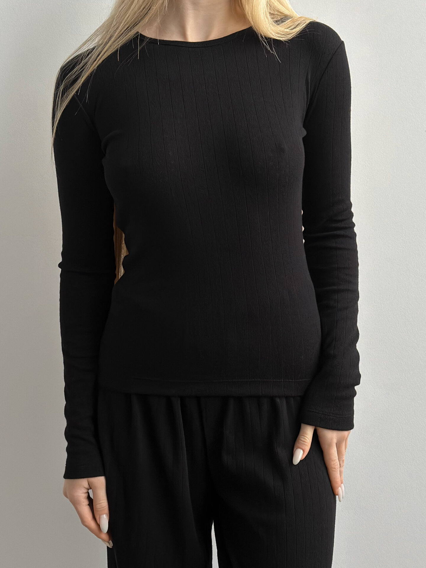 Рібана лонгслів (без ґудзика) чорний - Twins