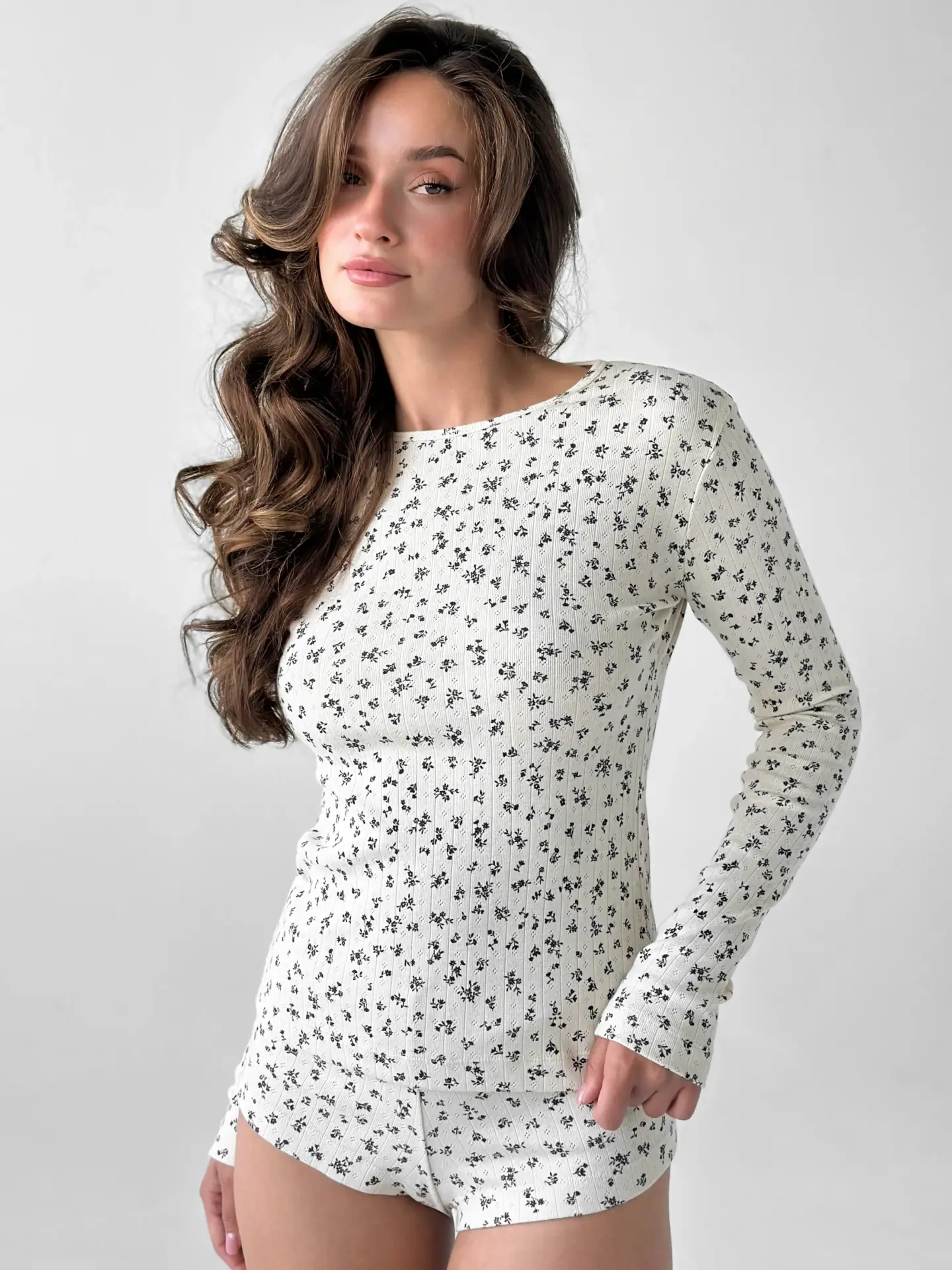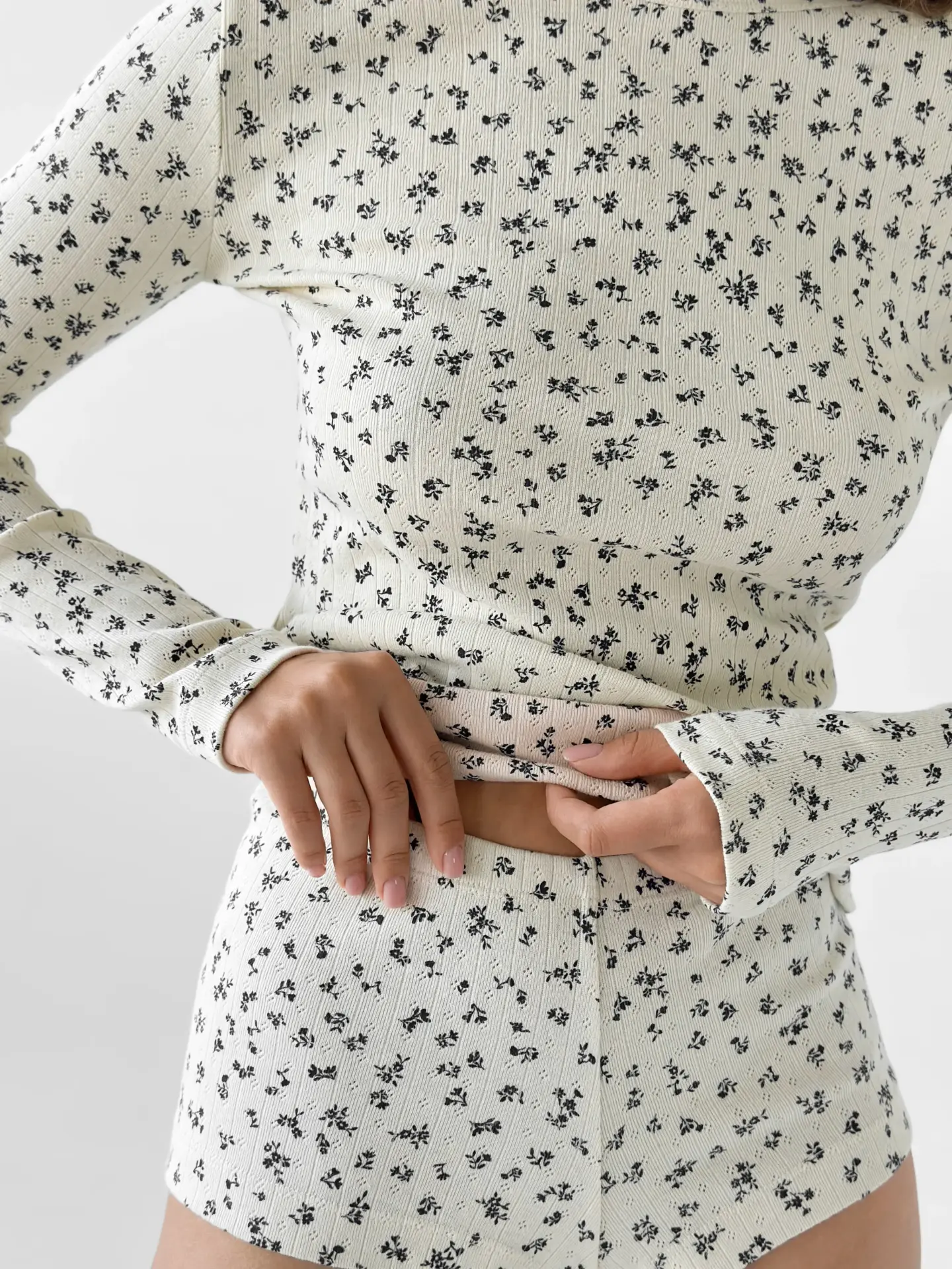 Рібана лонгслив молочний у синю квіточку (без гудзика) - Twins