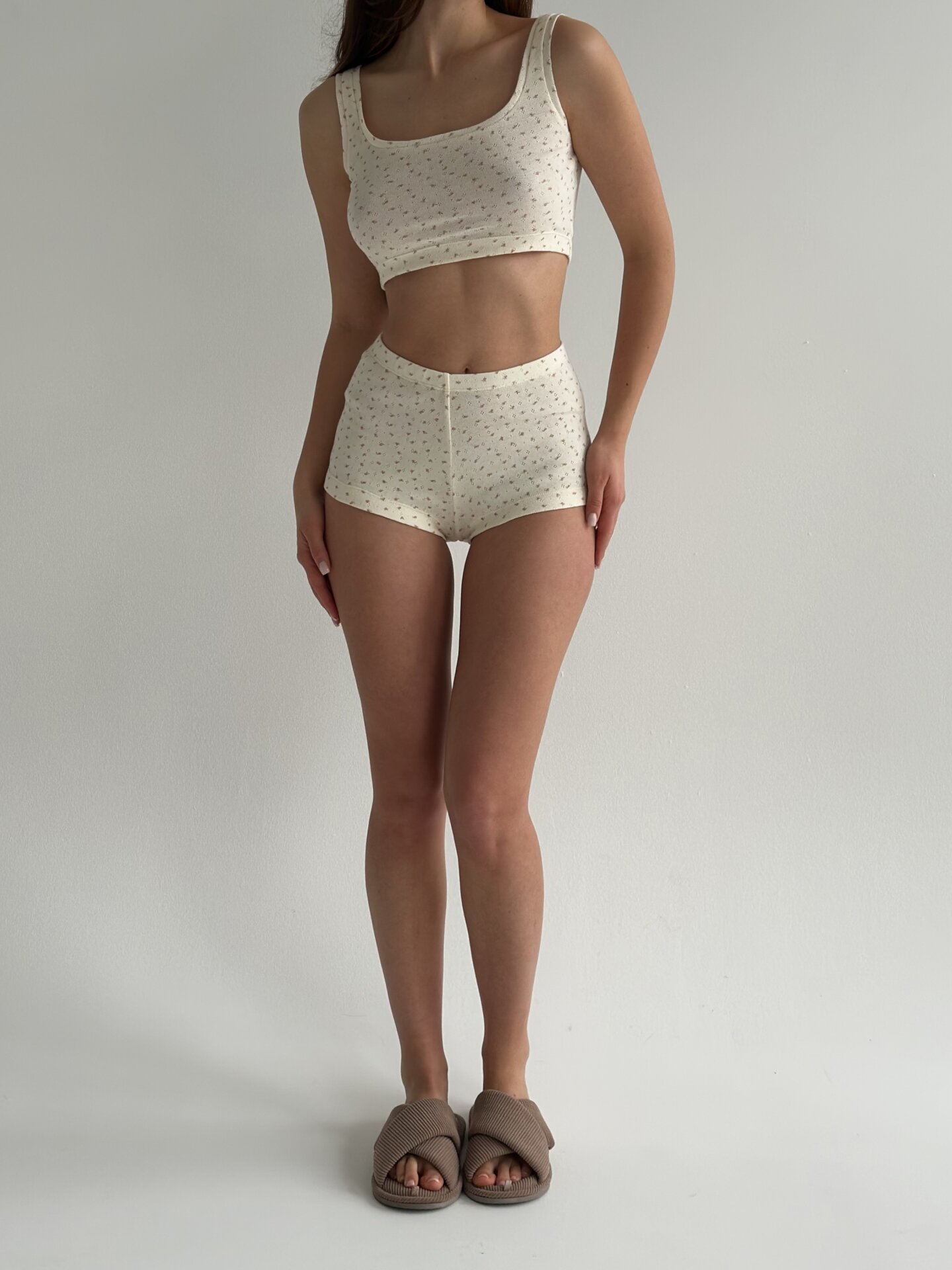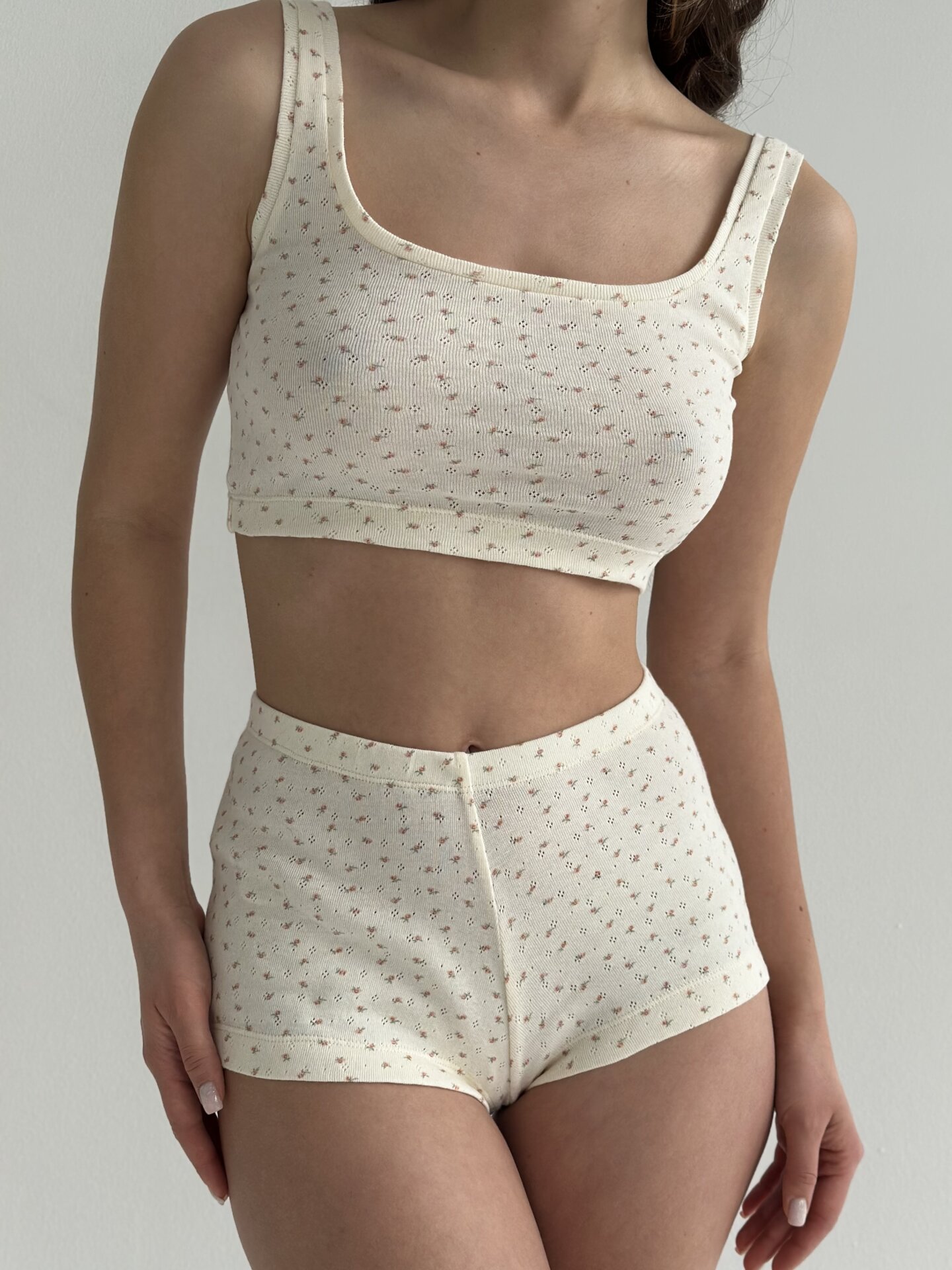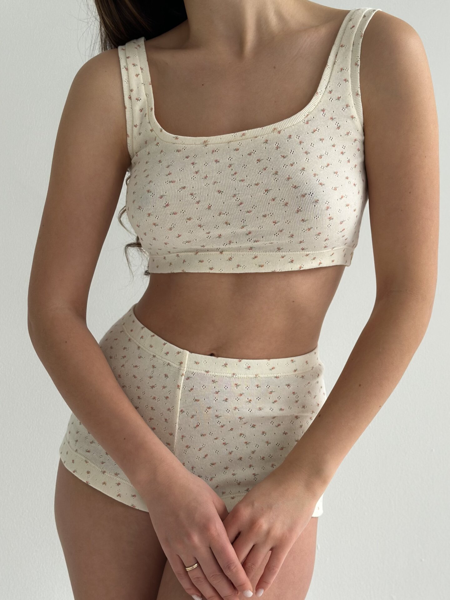 SOLD OUTРібана майка на бретелях молочна у троянду