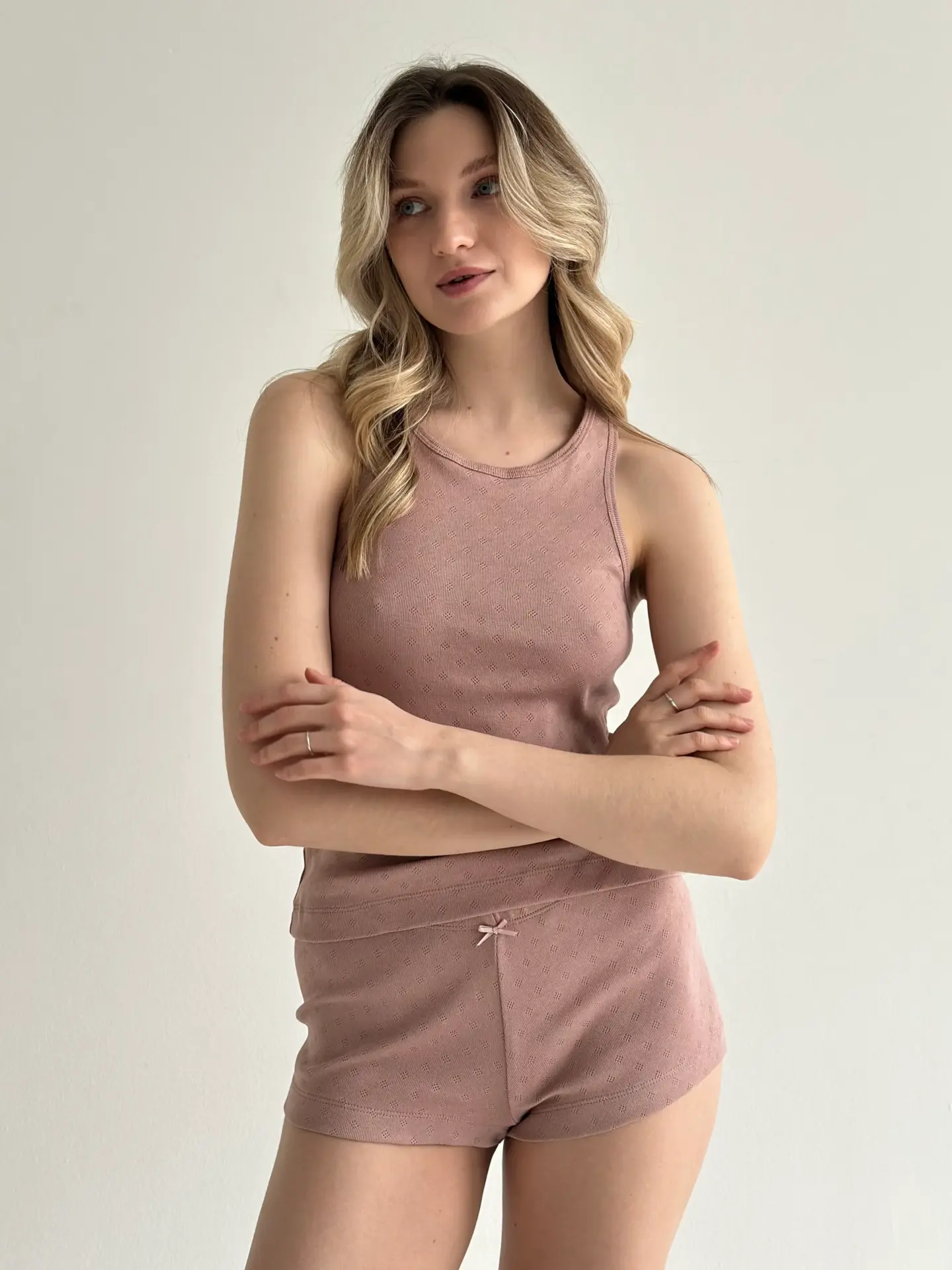 Шорти з рібани — це базовий елемент гардероба, що поєднує комфорт і стиль. М’яка, еластична тканина з тонкою текстурою забезпечує свободу рухів і приємні тактильні відчуття. Ідеально підходять для домашнього носіння або літнього відпочинку.