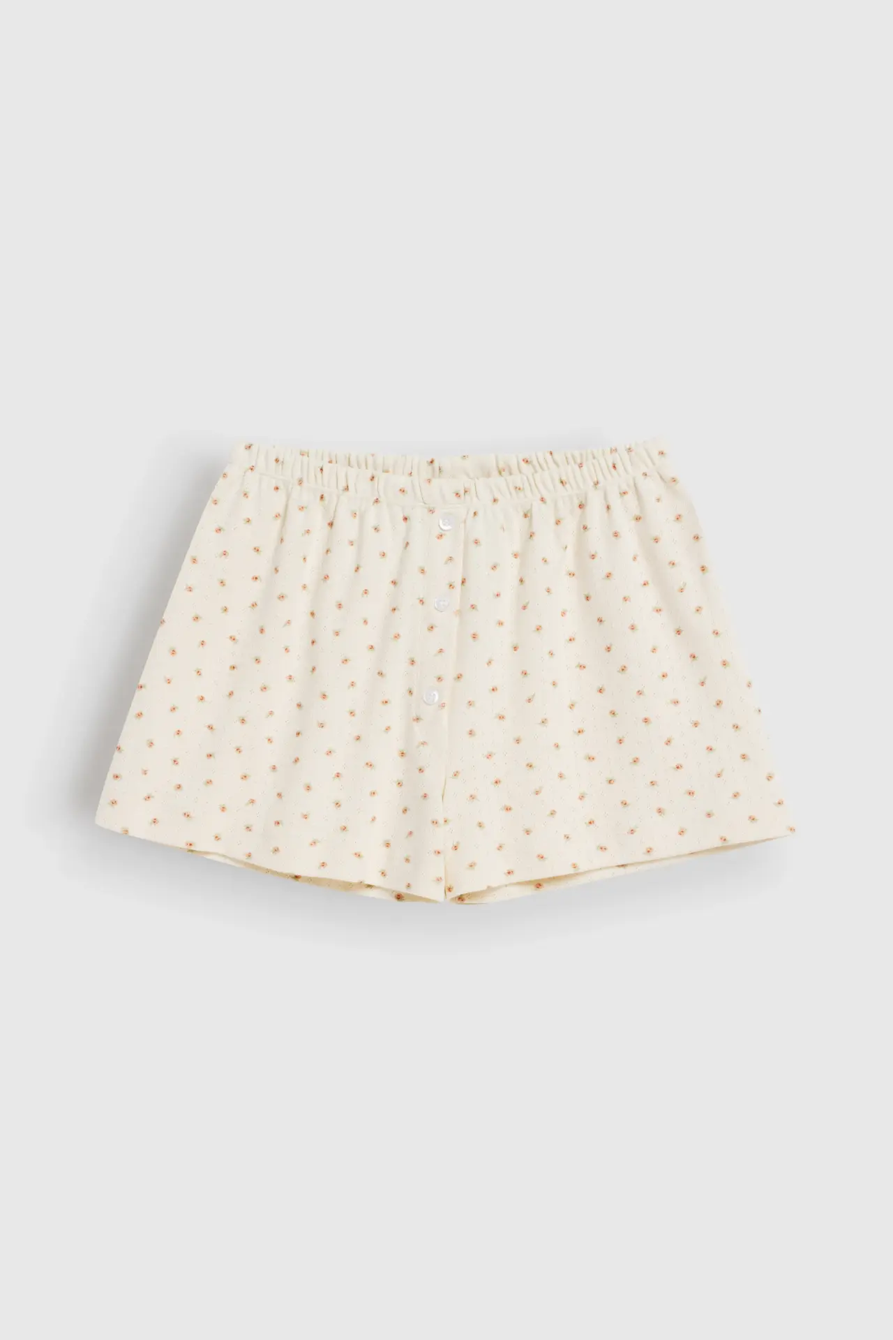 Шорти рібана легкі та комфортні. Завдяки еластичній тканині та вільному крою, вони забезпечують зручність у носінні, а декоративна планка з ґудзиками додає витонченості. Ідеальний вибір для дому або як частина стильного повсякденного комплекту.