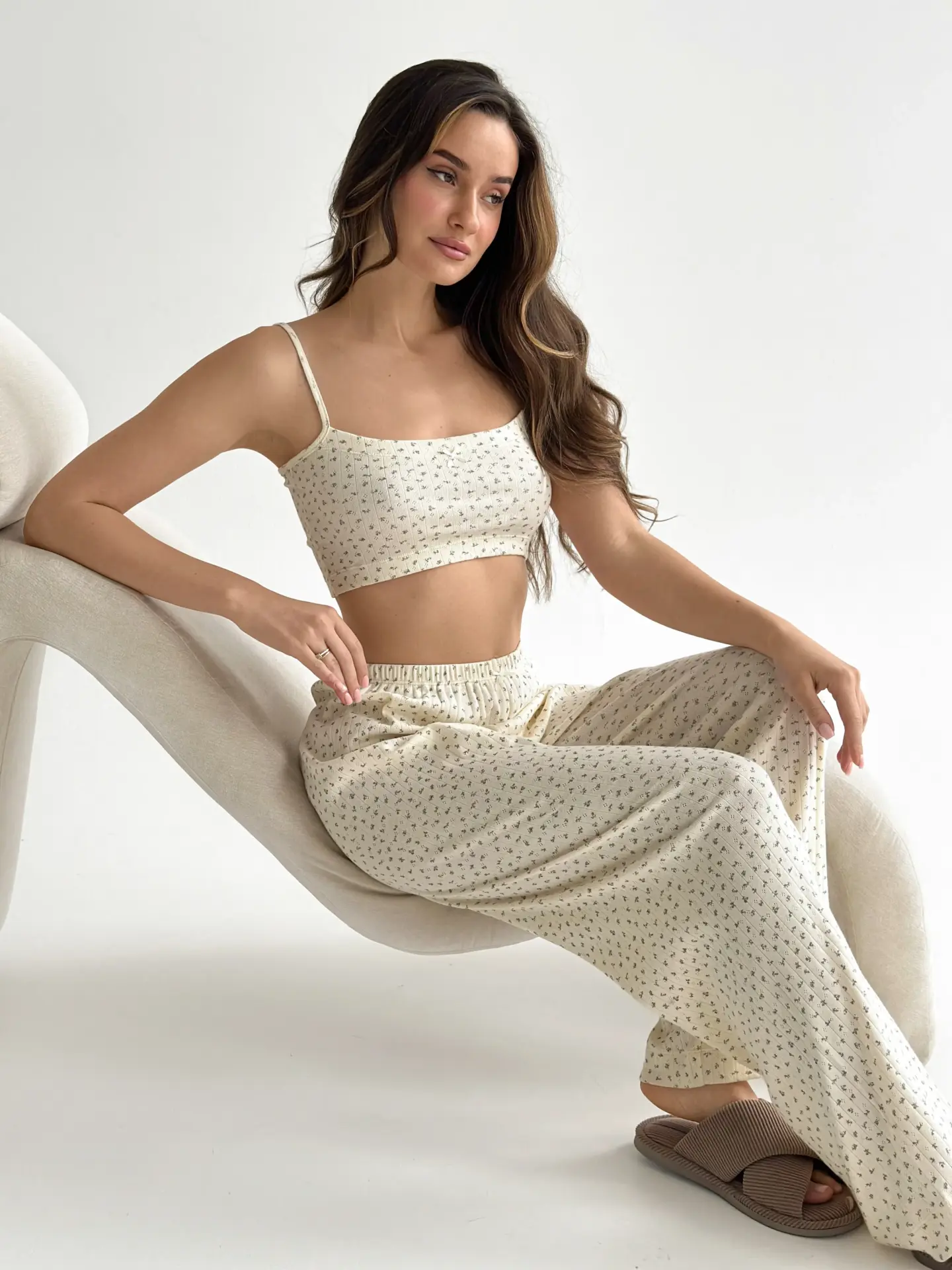 Комфортні та стильні широкі штани з рібани. М’який, дихаючий матеріал забезпечує зручність у носінні. Ідеальні як для дому, так і для комфортного сну.