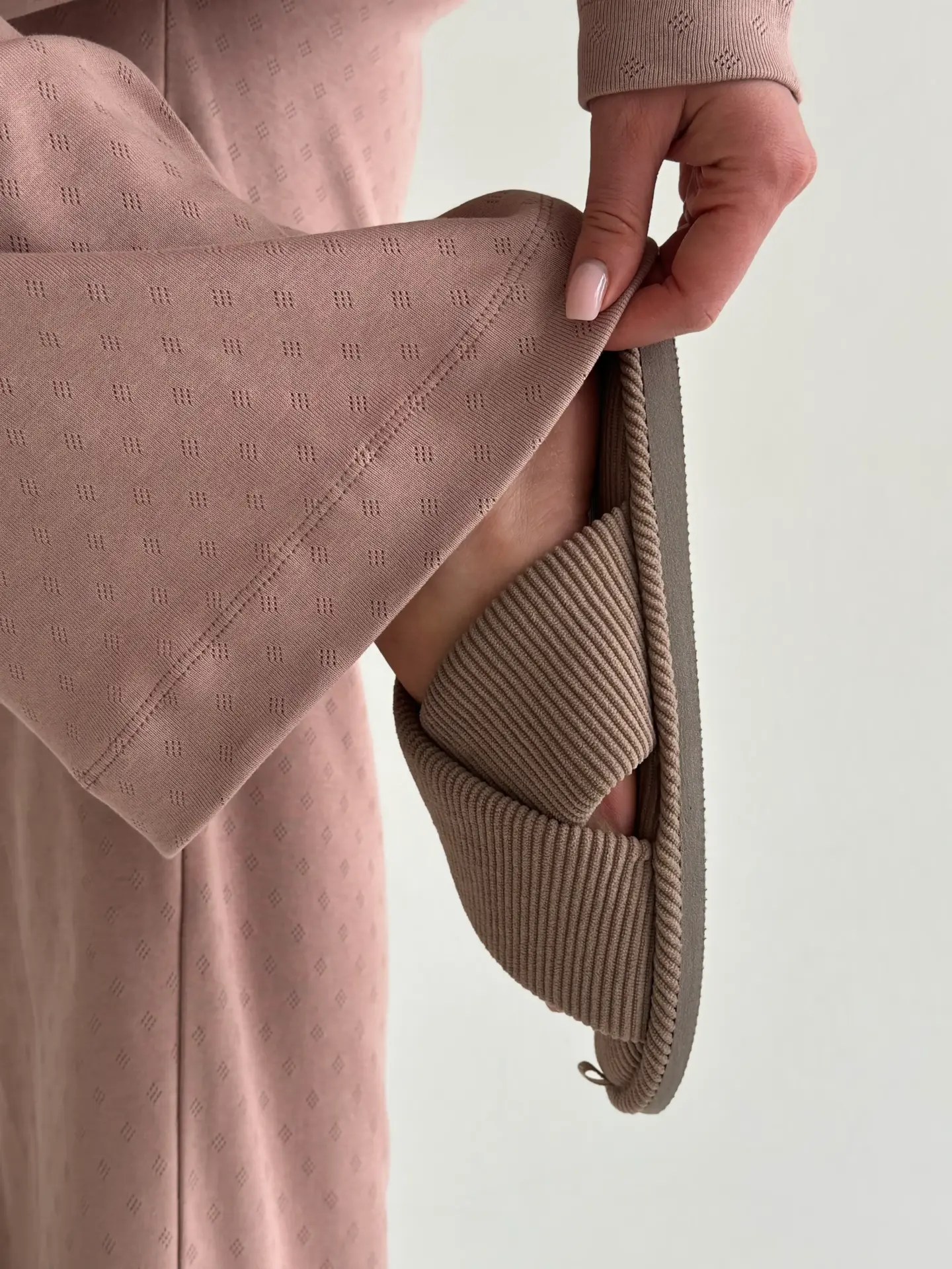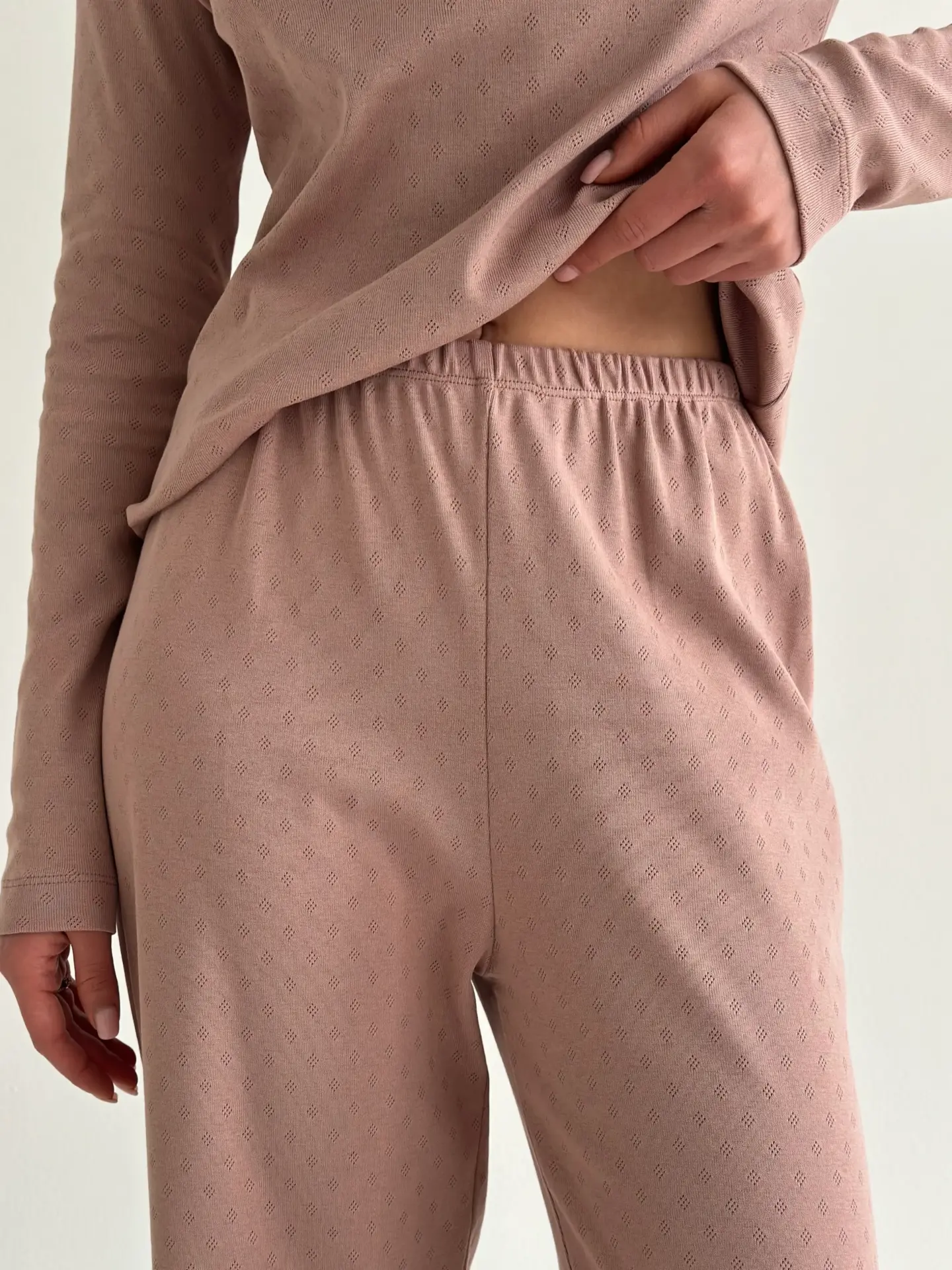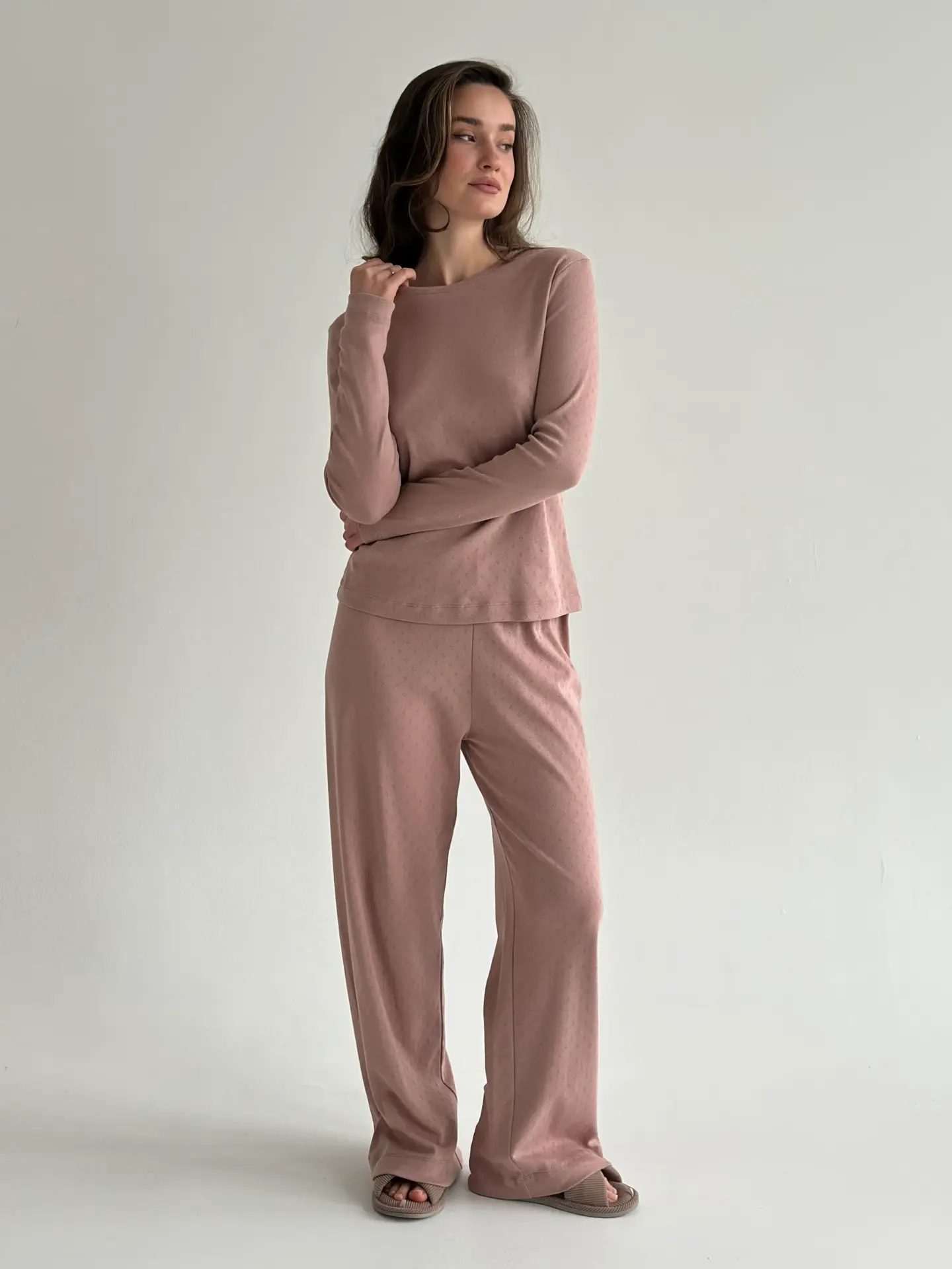 Комфортні та стильні широкі штани з рібани. М’який, дихаючий матеріал забезпечує зручність у носінні. Ідеальні як для дому, так і для комфортного сну.