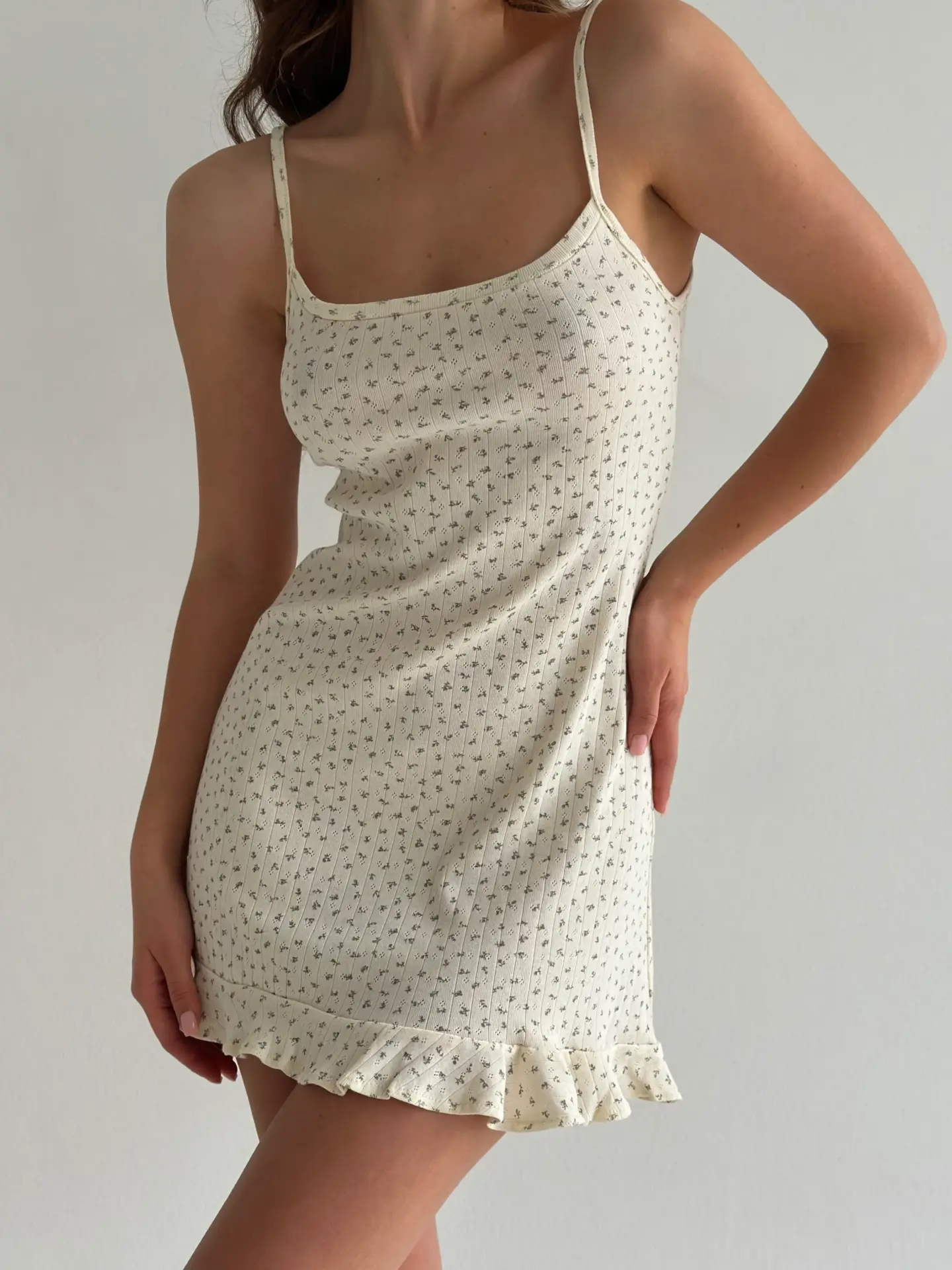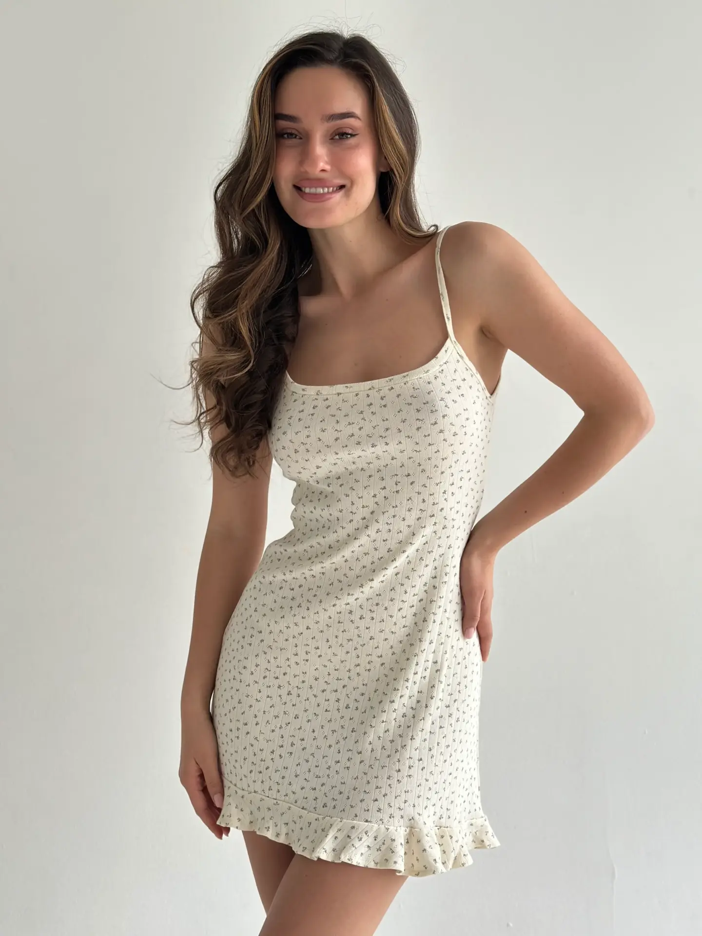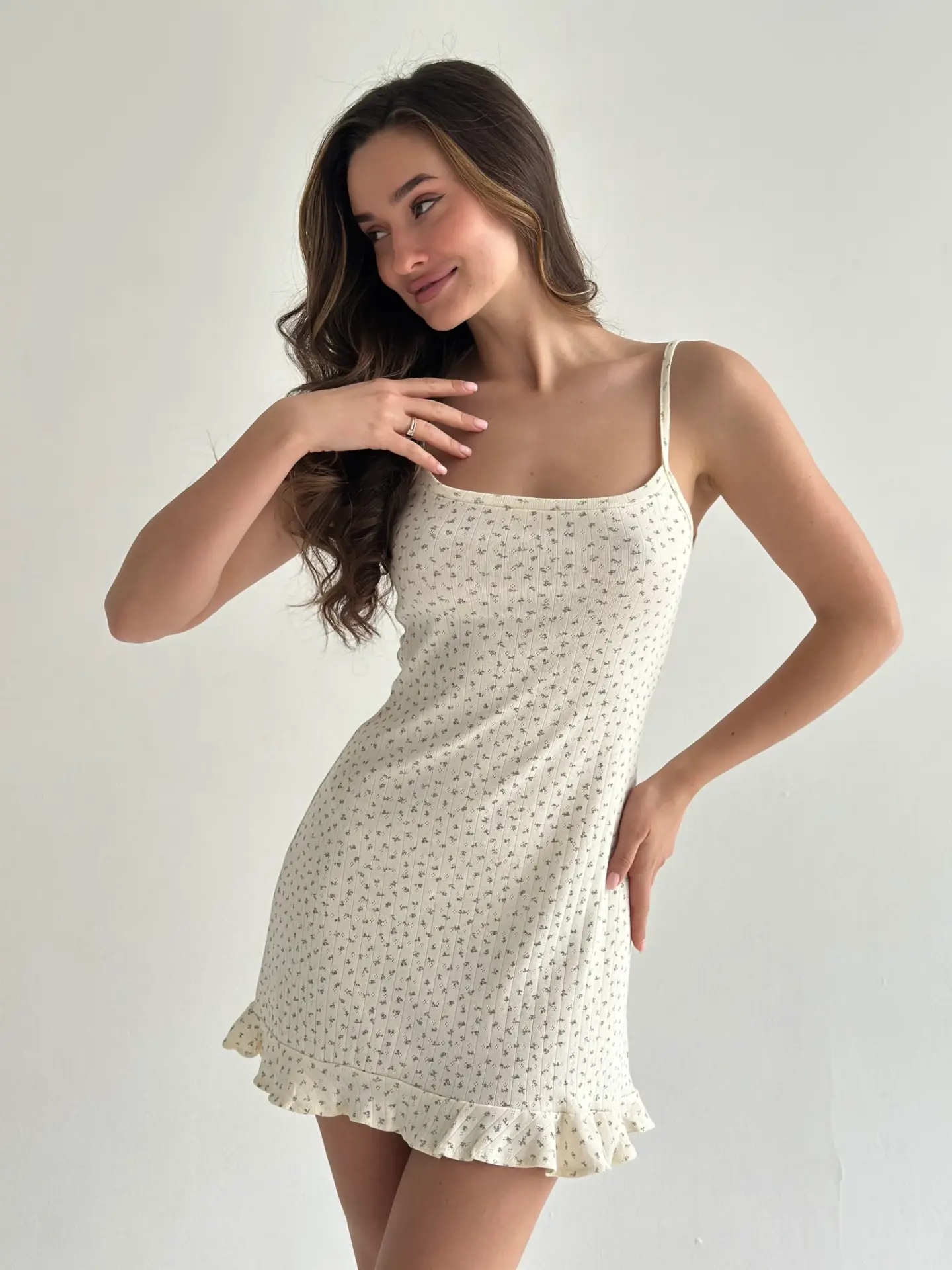 Сукня для сну з рібани з оборками – ідеальний вибір для домашнього затишку. М’яка еластична тканина забезпечує комфорт і свободу рухів, а ніжні оборки додають жіночності та витонченості. Стильний і практичний варіант для вашого нічного гардероба.