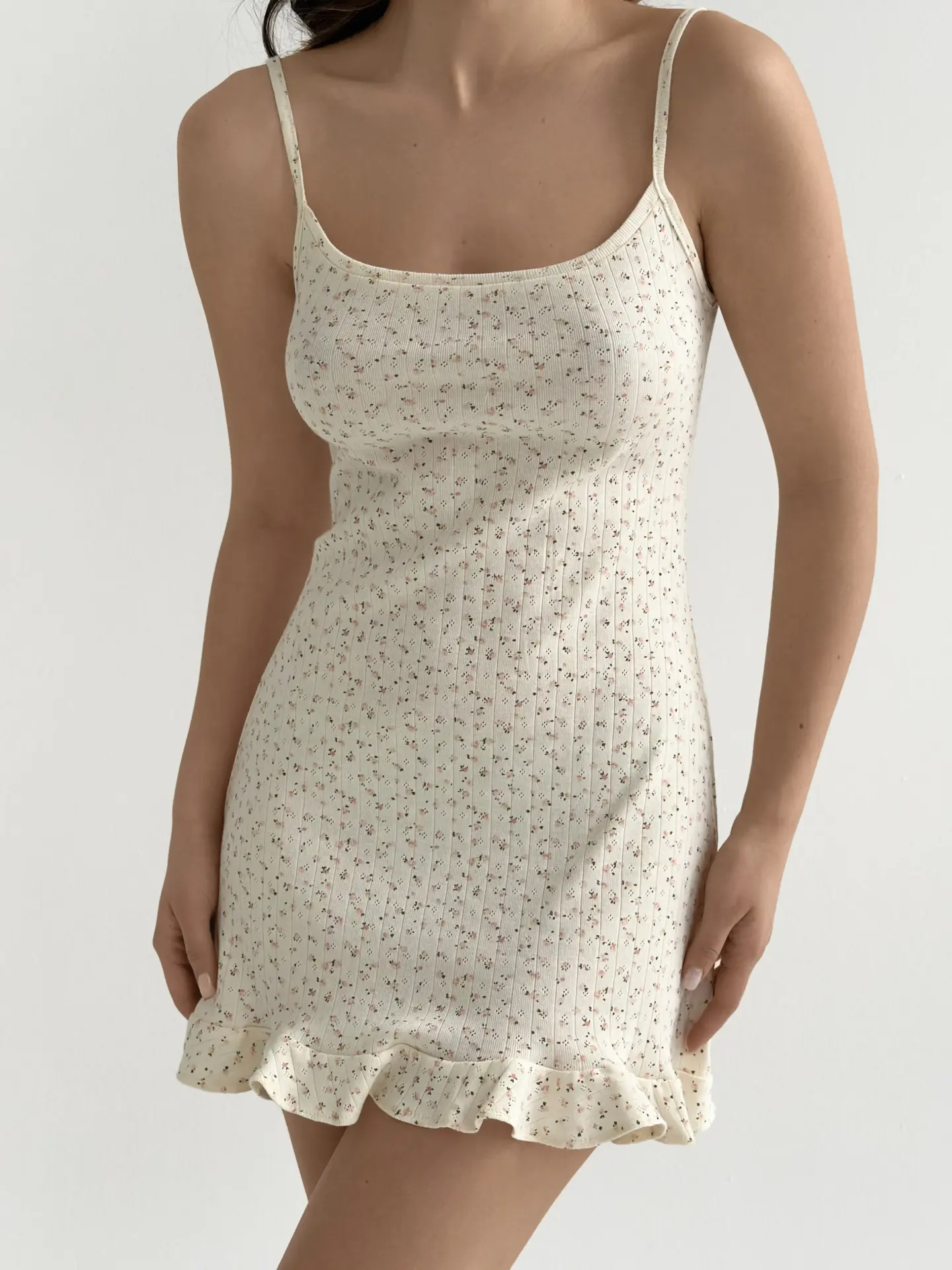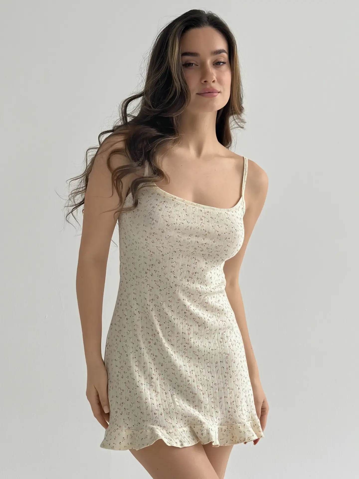 Сукня для сну з рібани з оборками – ідеальний вибір для домашнього затишку. М’яка еластична тканина забезпечує комфорт і свободу рухів, а ніжні оборки додають жіночності та витонченості. Стильний і практичний варіант для вашого нічного гардероба.