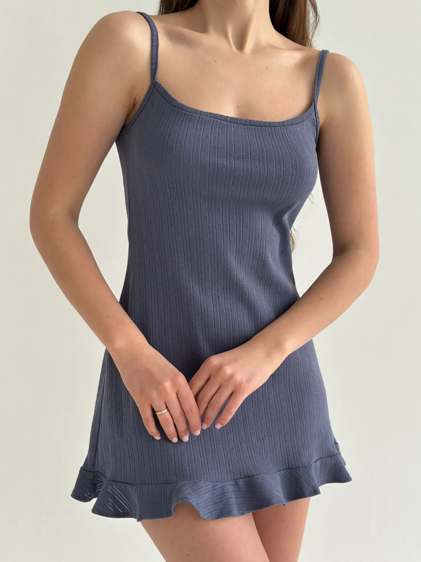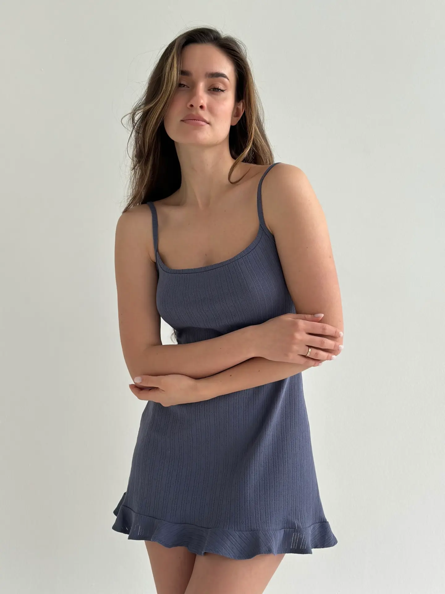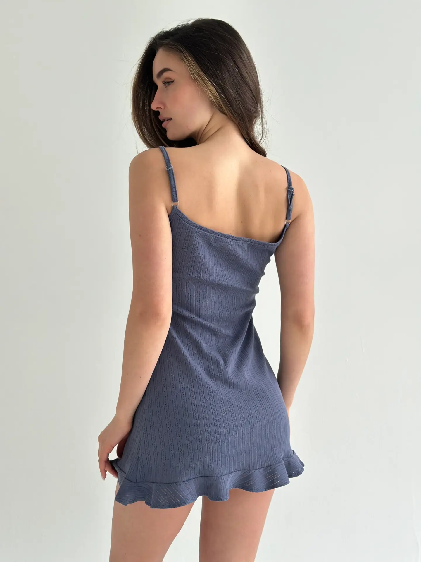 Рібана сукня для сну з оборками синя - Twins