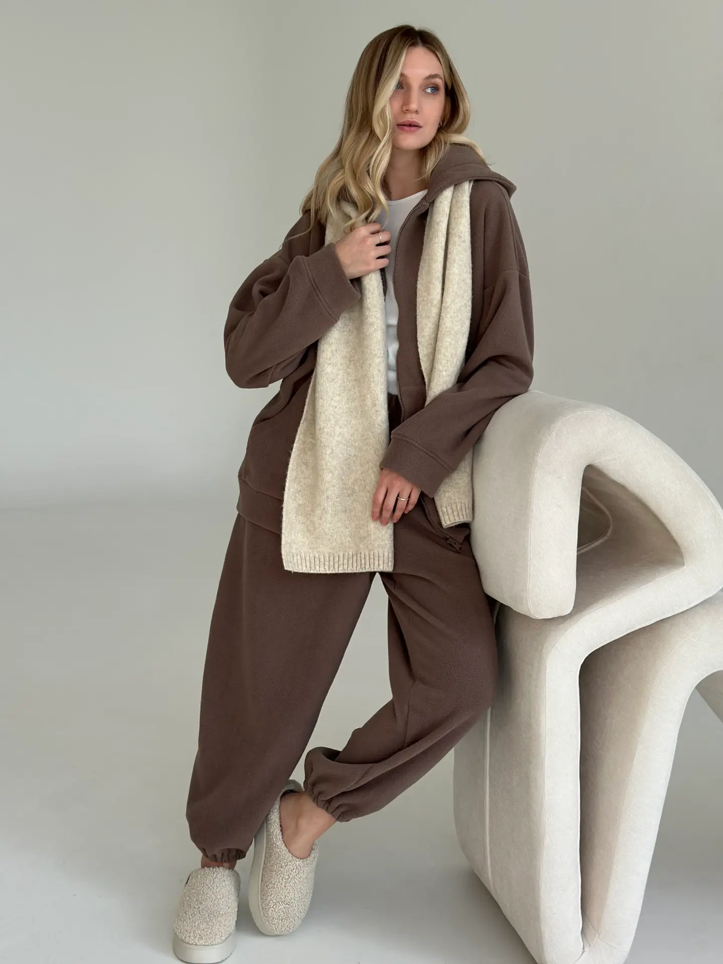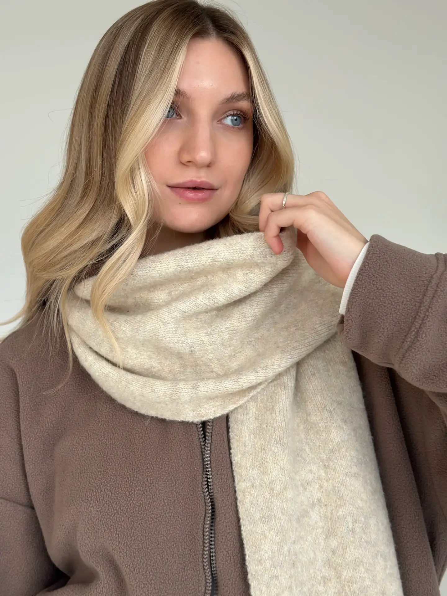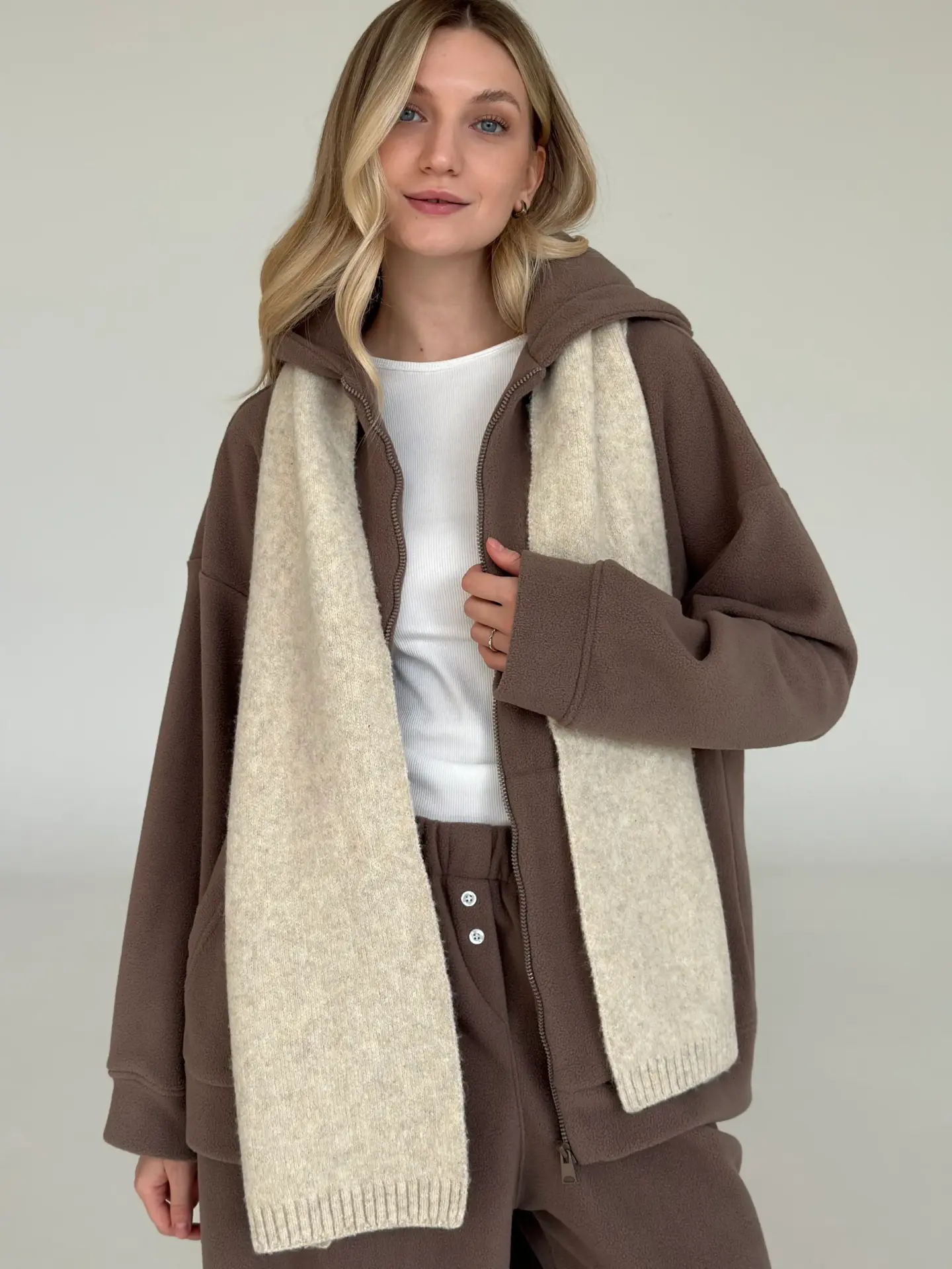 Шарф в’язаний із м’якої, об’ємної пряжі створює відчуття тепла й затишку. Акуратна в’язка та базові відтінки додають образу вишуканості. Ідеальний аксесуар для холодного сезону — легко поєднується з пальто, пуховиком чи светром.
