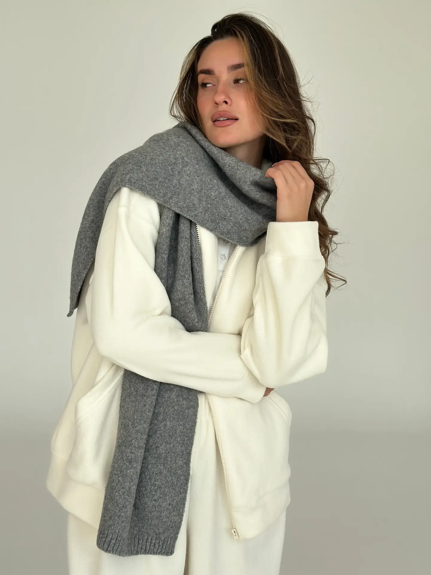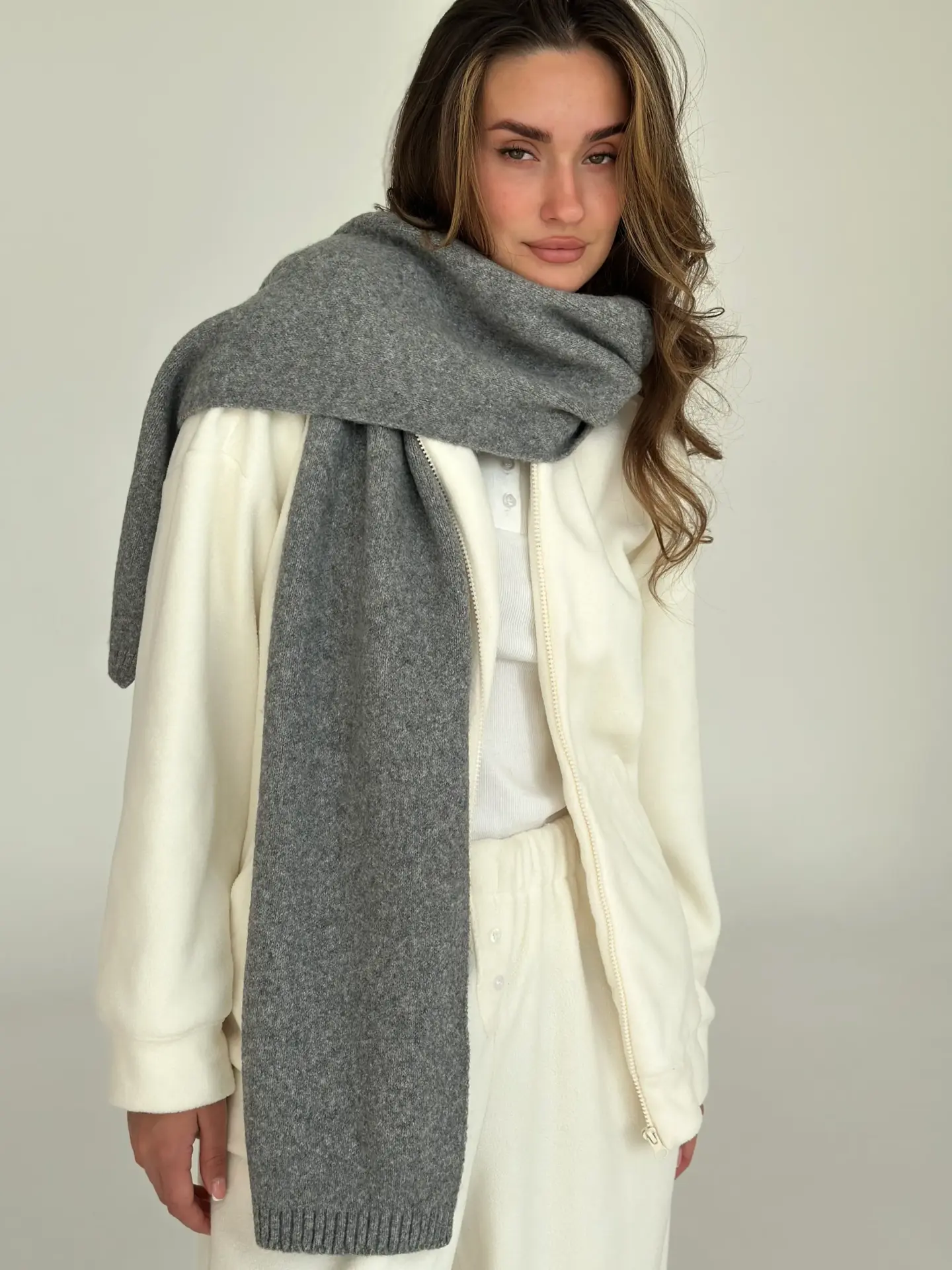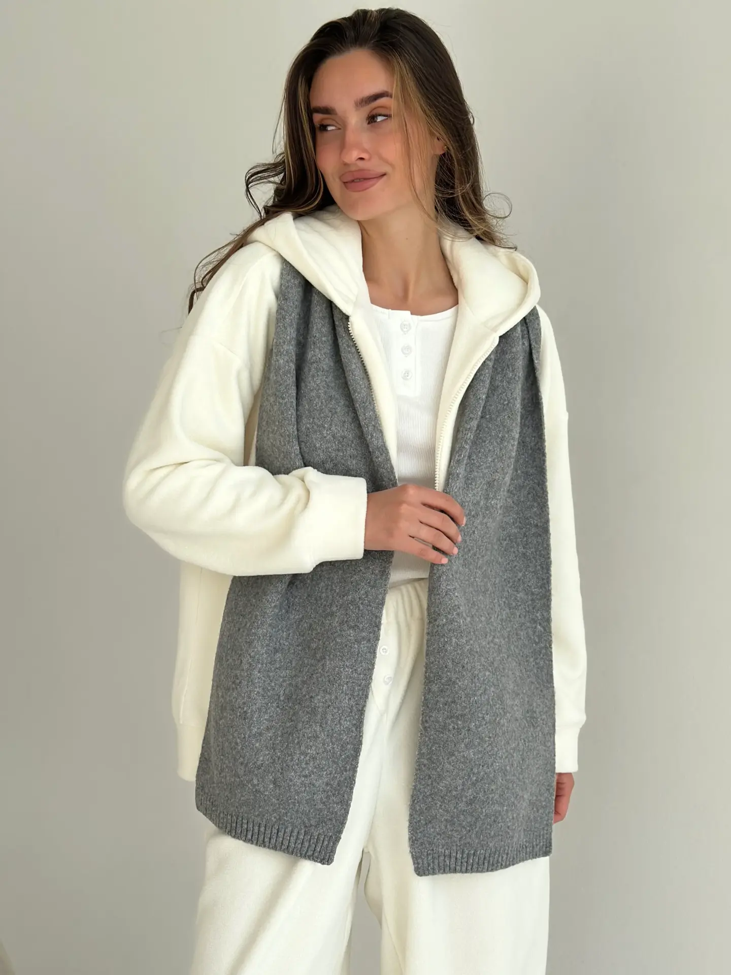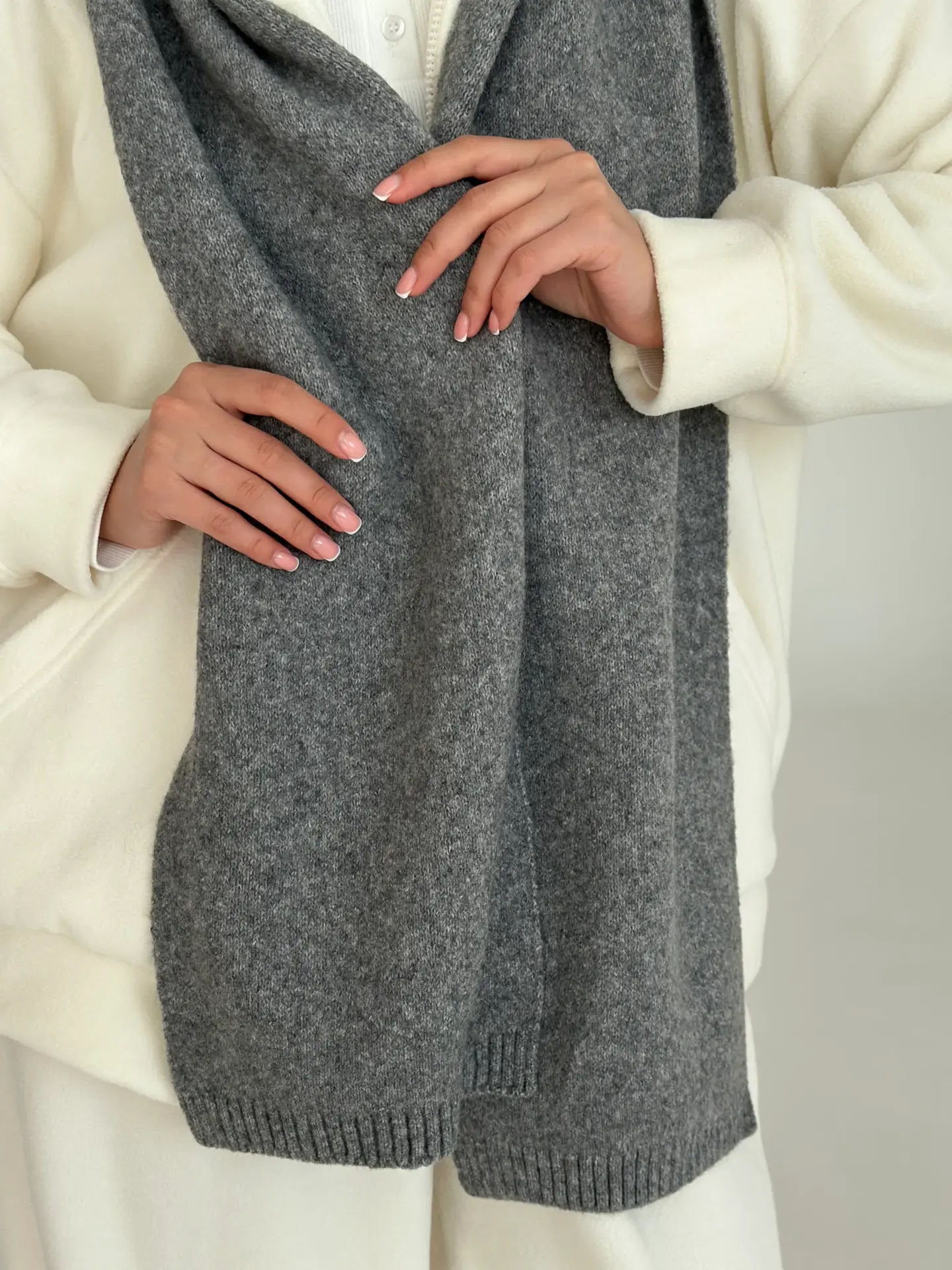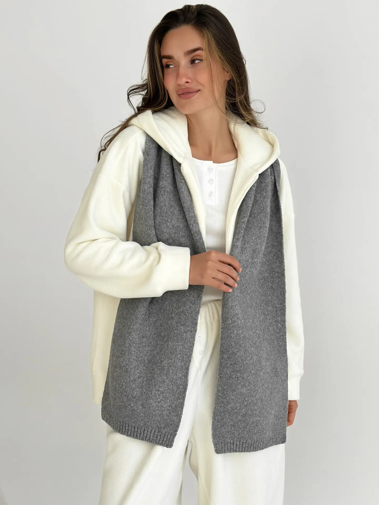 Шарф в’язаний із м’якої, об’ємної пряжі створює відчуття тепла й затишку. Акуратна в’язка та базові відтінки додають образу вишуканості. Ідеальний аксесуар для холодного сезону — легко поєднується з пальто, пуховиком чи светром.