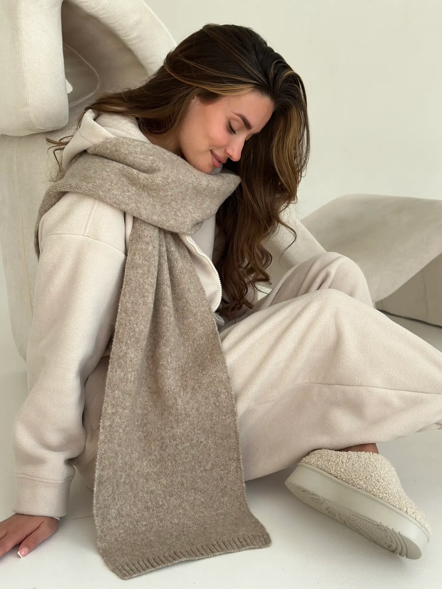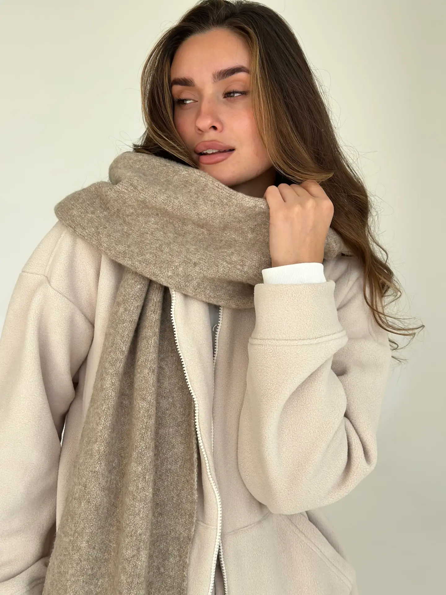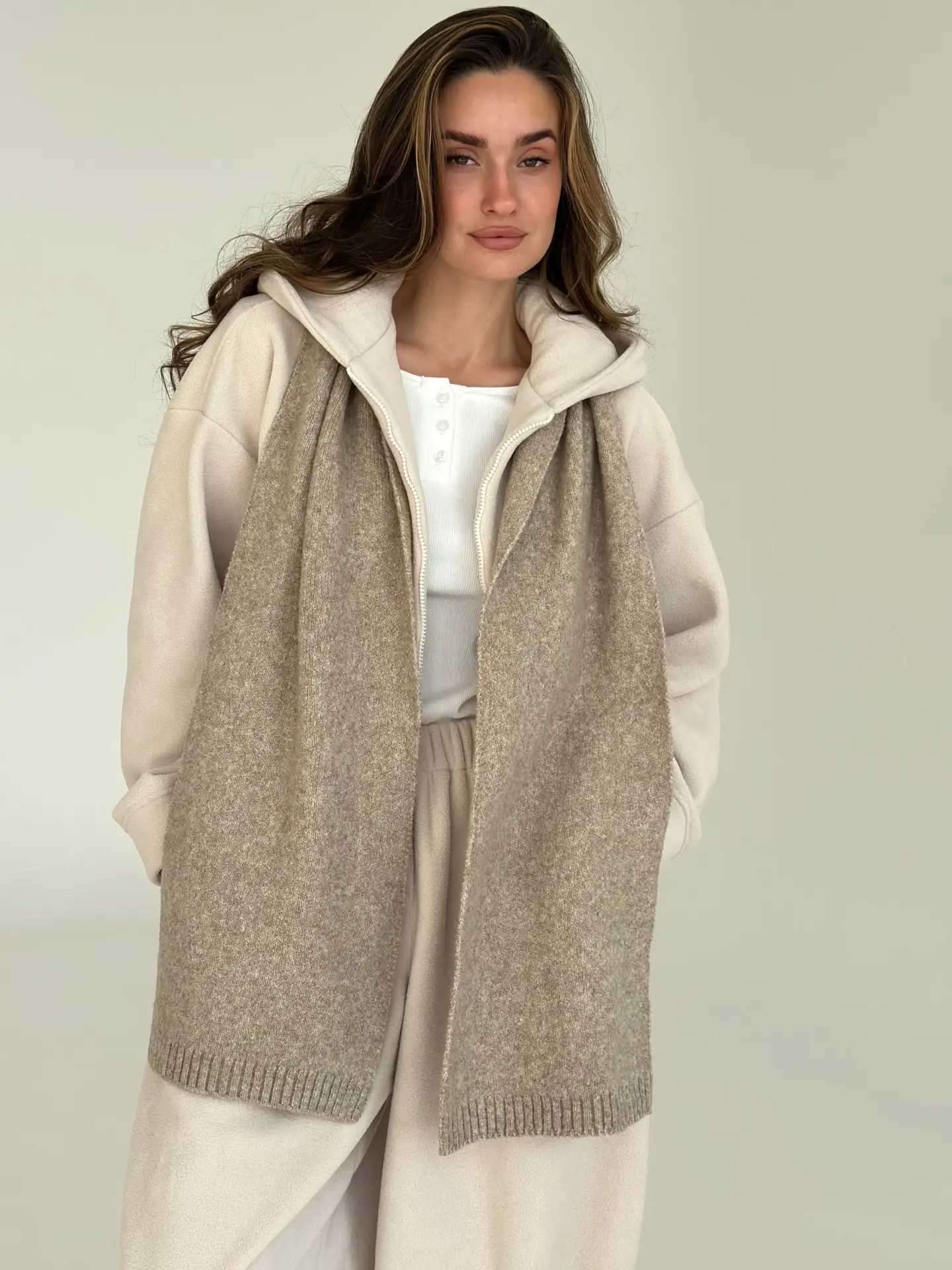 Шарф в’язаний із м’якої, об’ємної пряжі створює відчуття тепла й затишку. Акуратна в’язка та базові відтінки додають образу вишуканості. Ідеальний аксесуар для холодного сезону — легко поєднується з пальто, пуховиком чи светром.