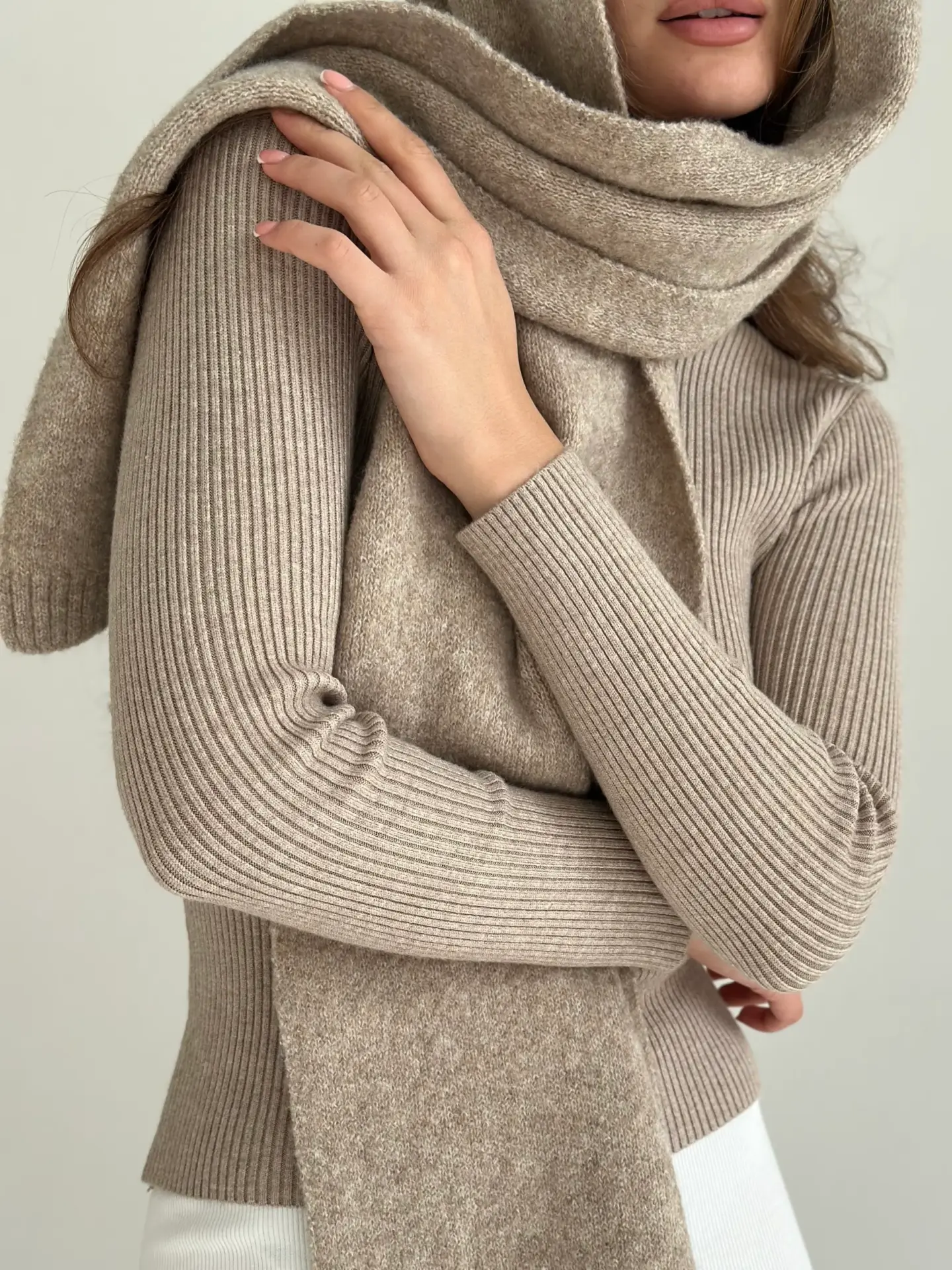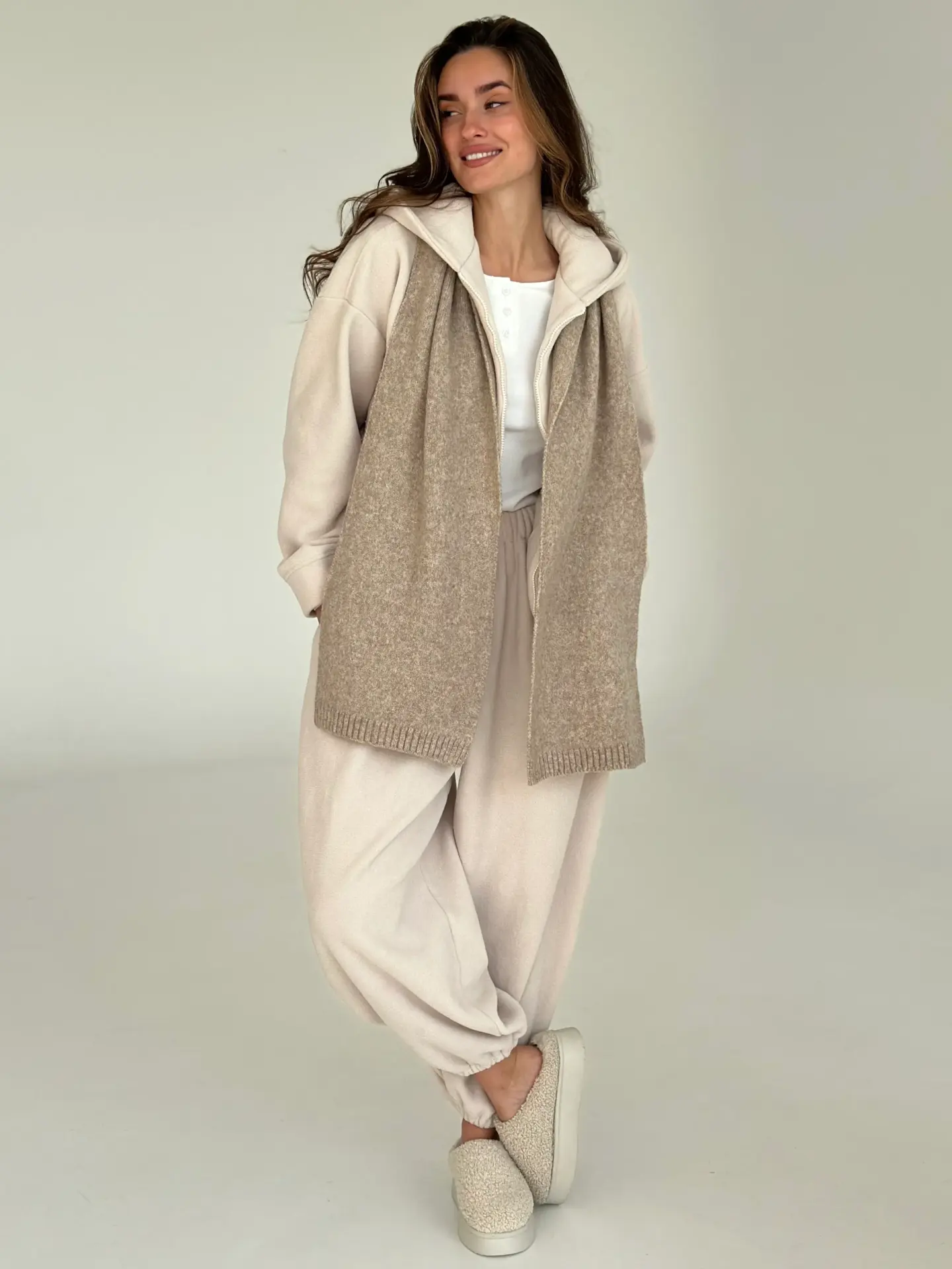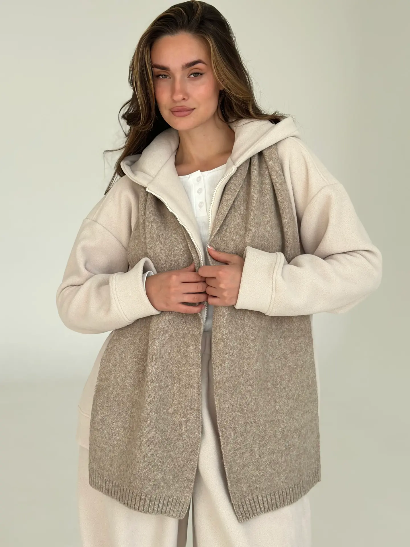 Шарф в’язаний із м’якої, об’ємної пряжі створює відчуття тепла й затишку. Акуратна в’язка та базові відтінки додають образу вишуканості. Ідеальний аксесуар для холодного сезону — легко поєднується з пальто, пуховиком чи светром.