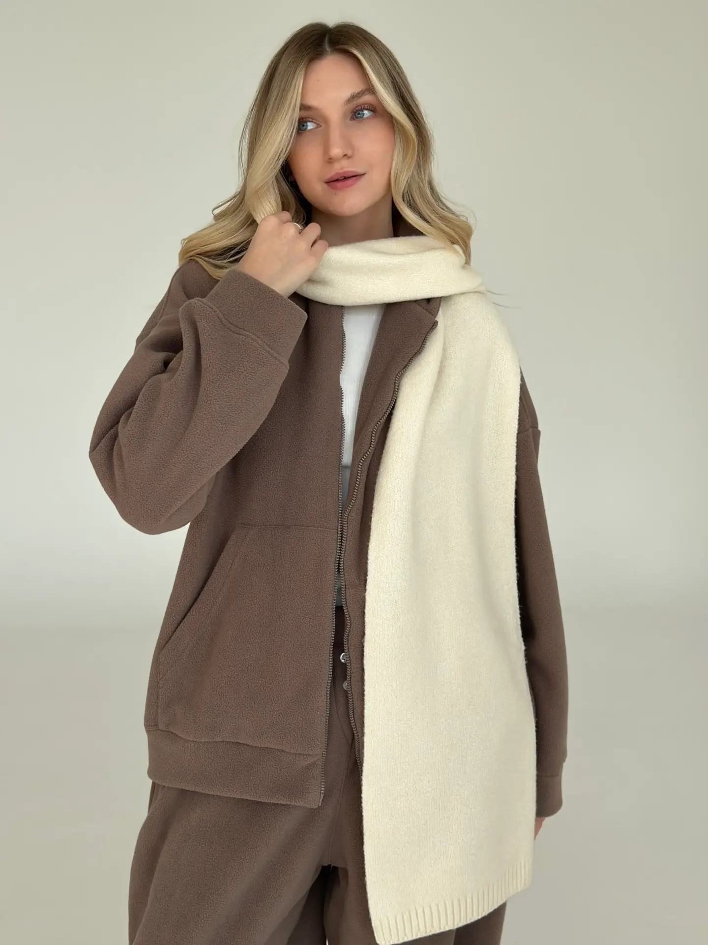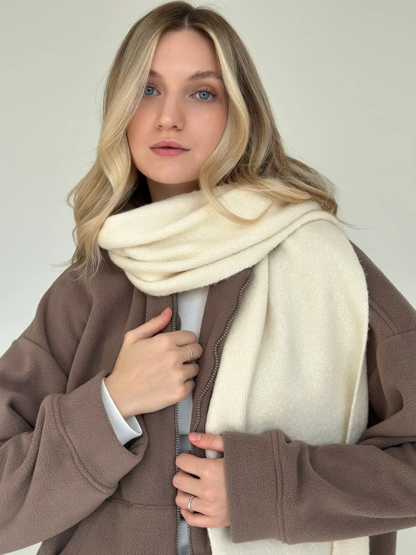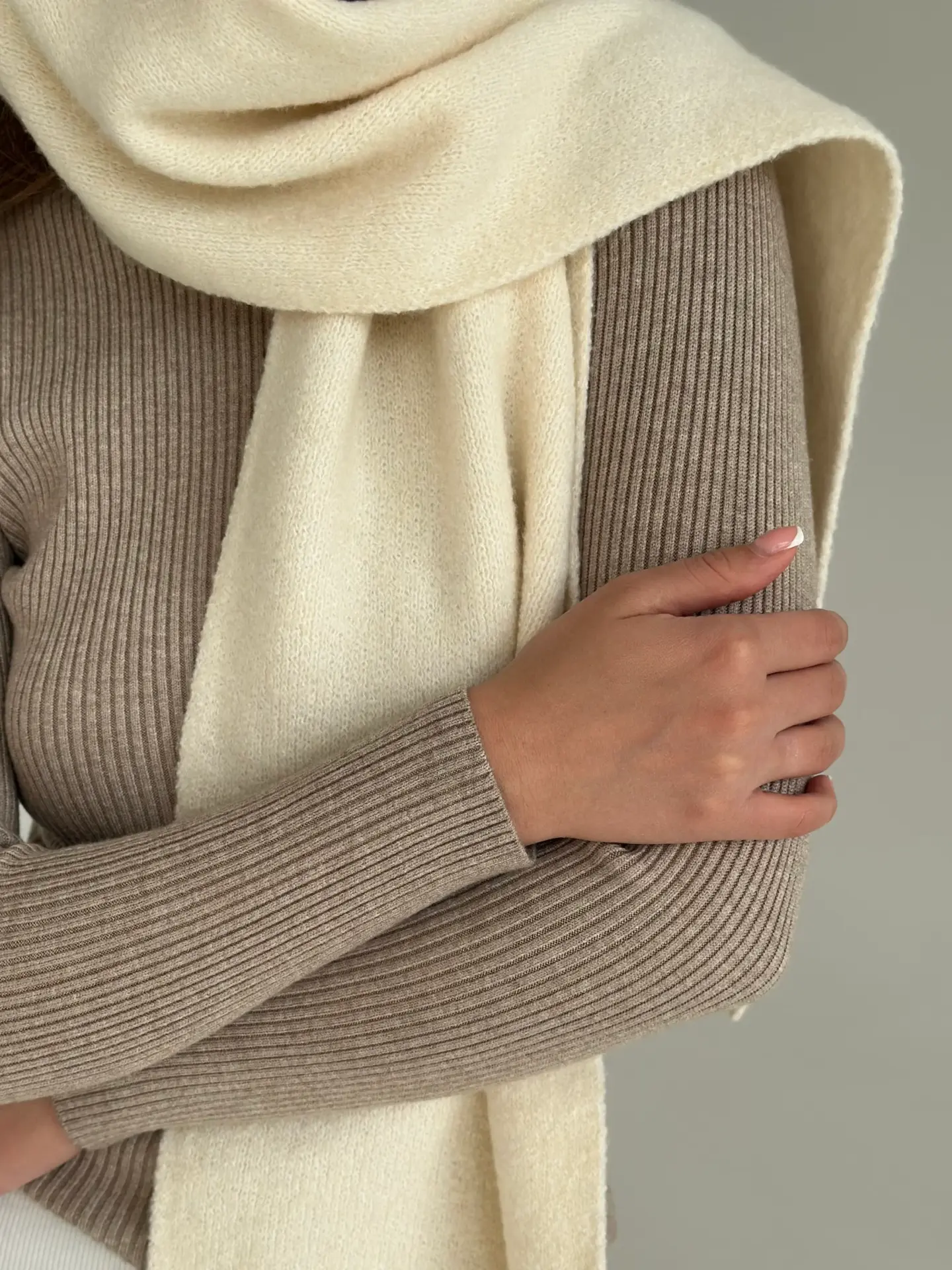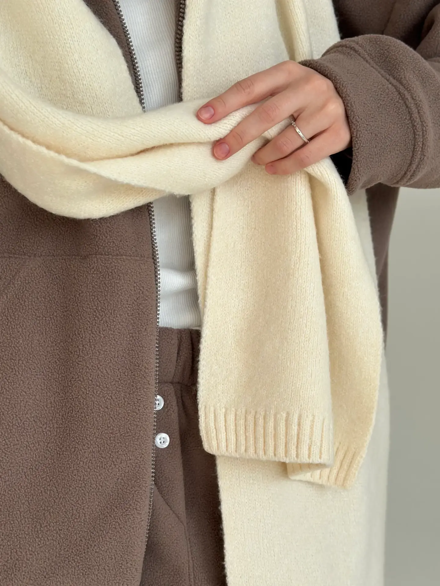 Шарф в’язаний із м’якої, об’ємної пряжі створює відчуття тепла й затишку. Акуратна в’язка та базові відтінки додають образу вишуканості. Ідеальний аксесуар для холодного сезону — легко поєднується з пальто, пуховиком чи светром.