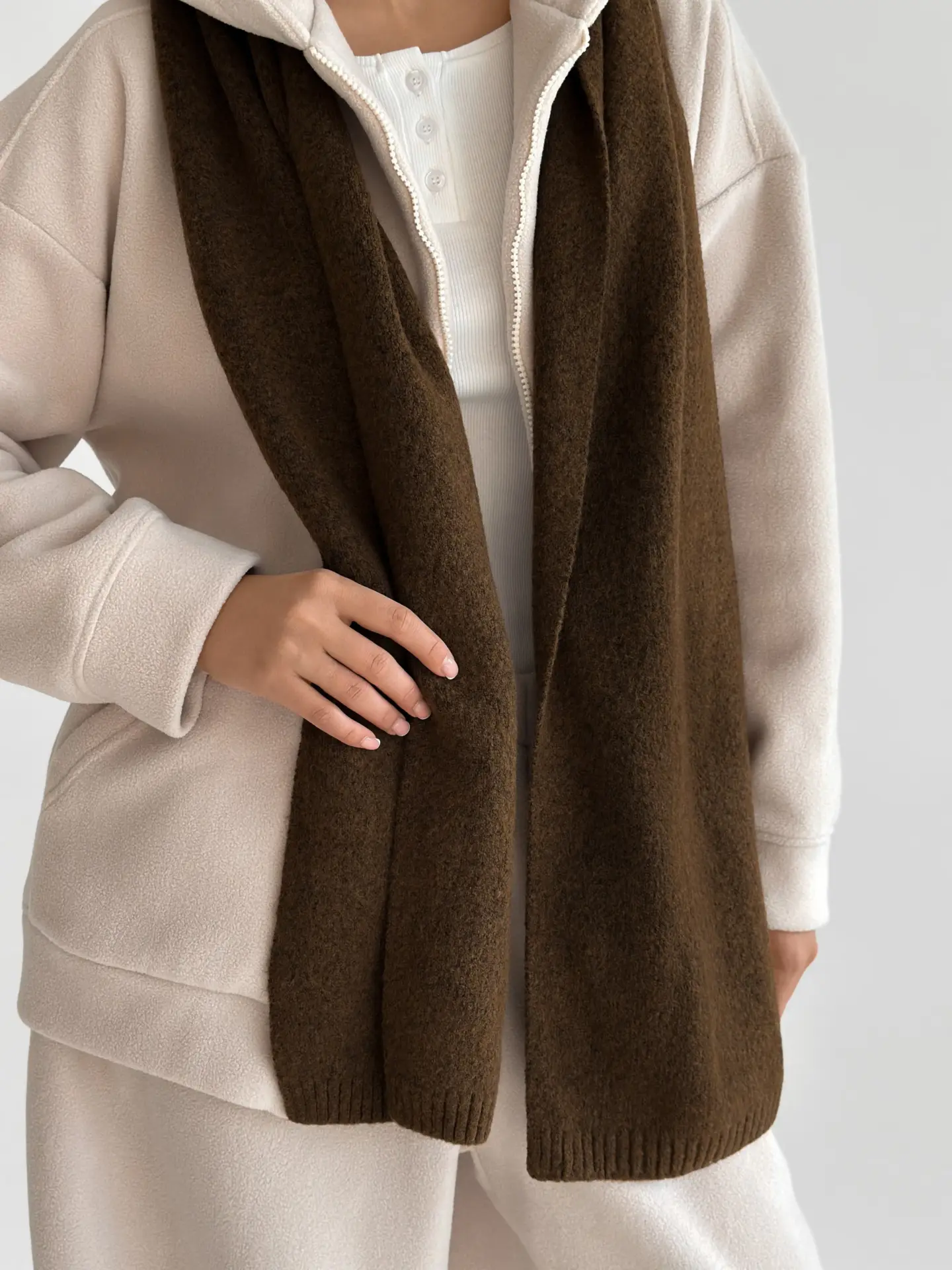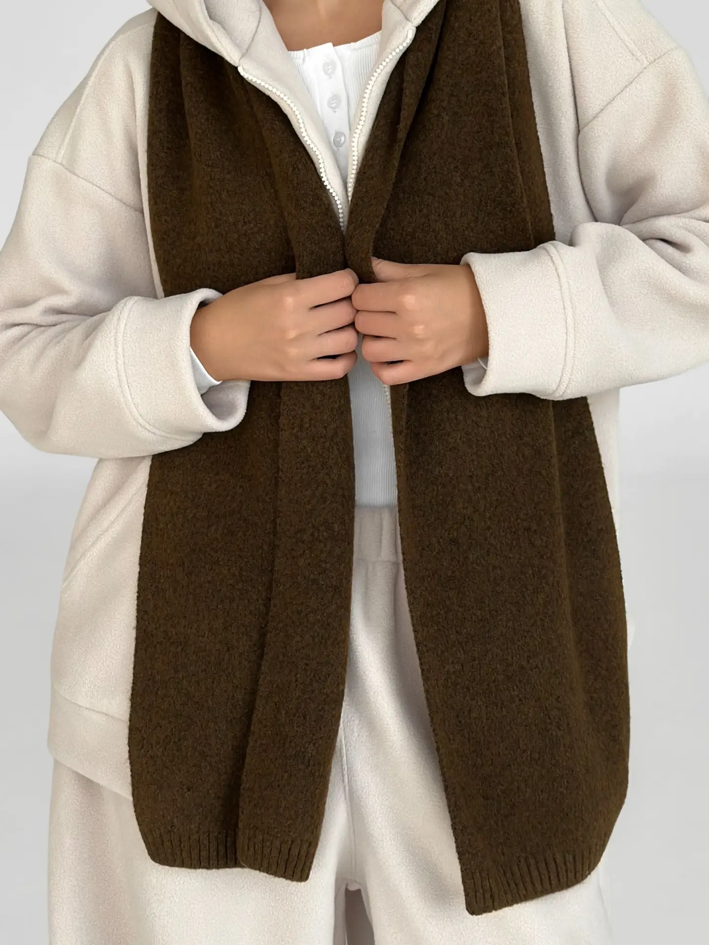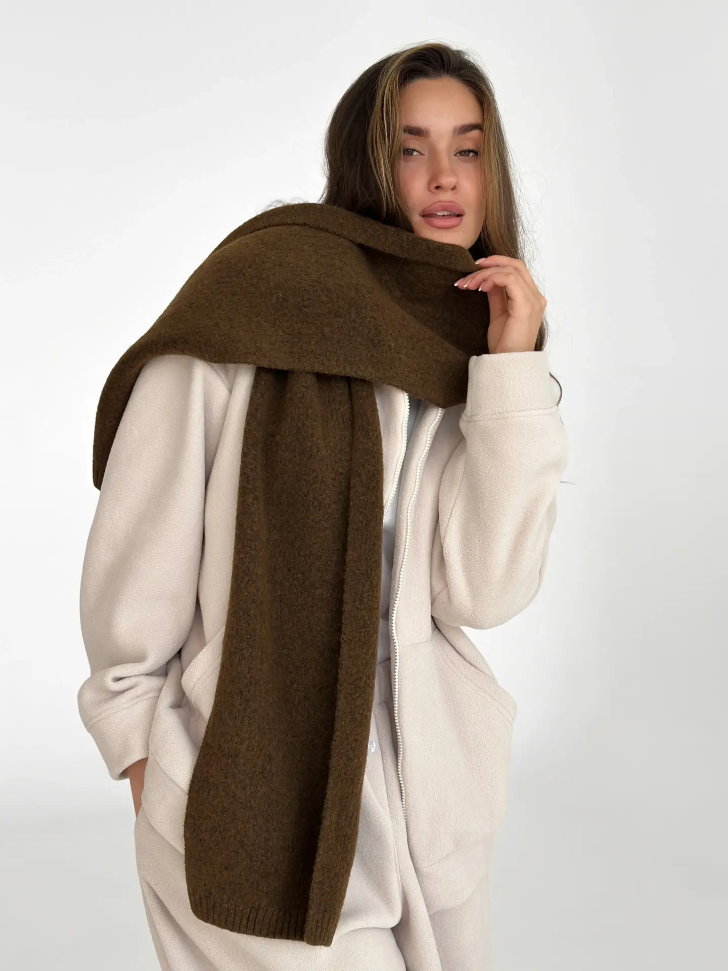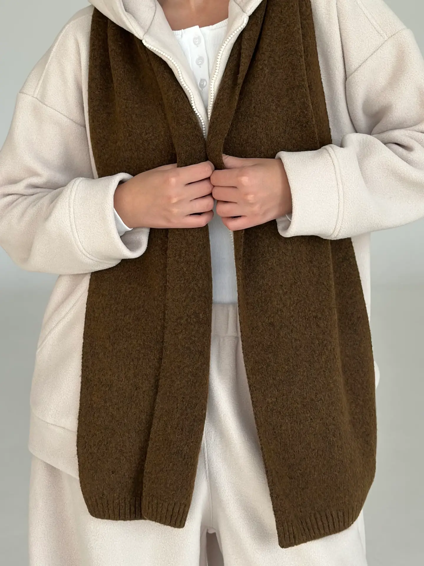 Шарф в’язаний із м’якої, об’ємної пряжі створює відчуття тепла й затишку. Акуратна в’язка та базові відтінки додають образу вишуканості. Ідеальний аксесуар для холодного сезону — легко поєднується з пальто, пуховиком чи светром.