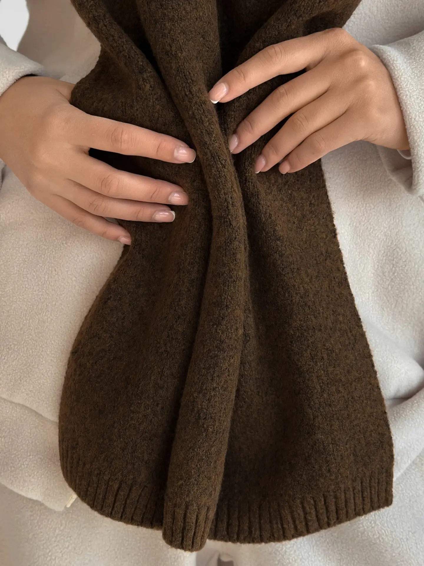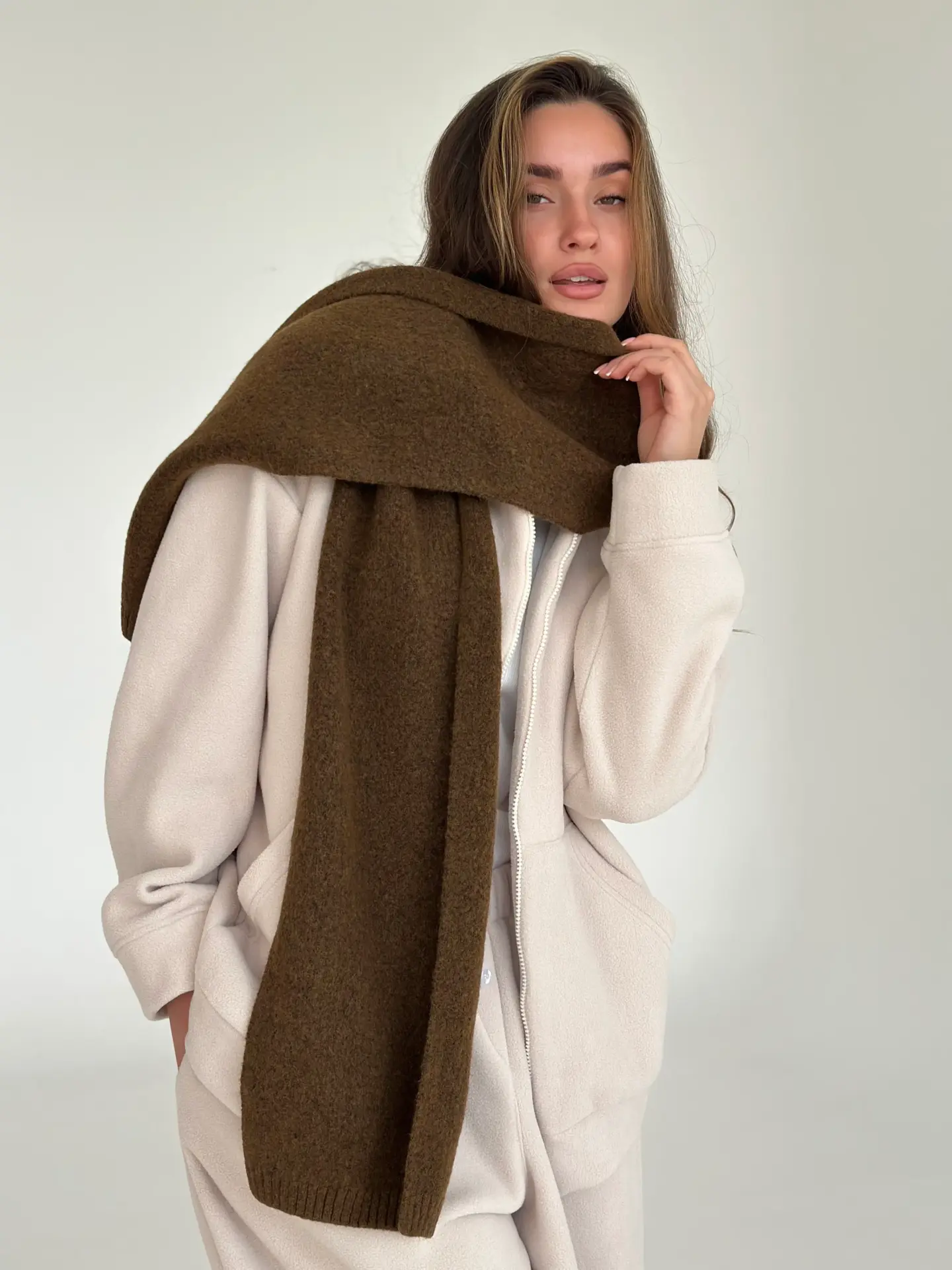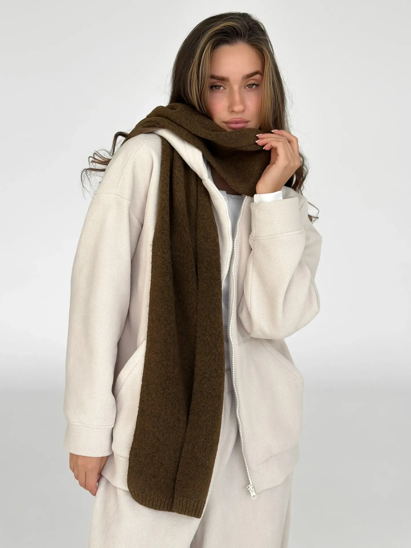 Шарф в’язаний із м’якої, об’ємної пряжі створює відчуття тепла й затишку. Акуратна в’язка та базові відтінки додають образу вишуканості. Ідеальний аксесуар для холодного сезону — легко поєднується з пальто, пуховиком чи светром.