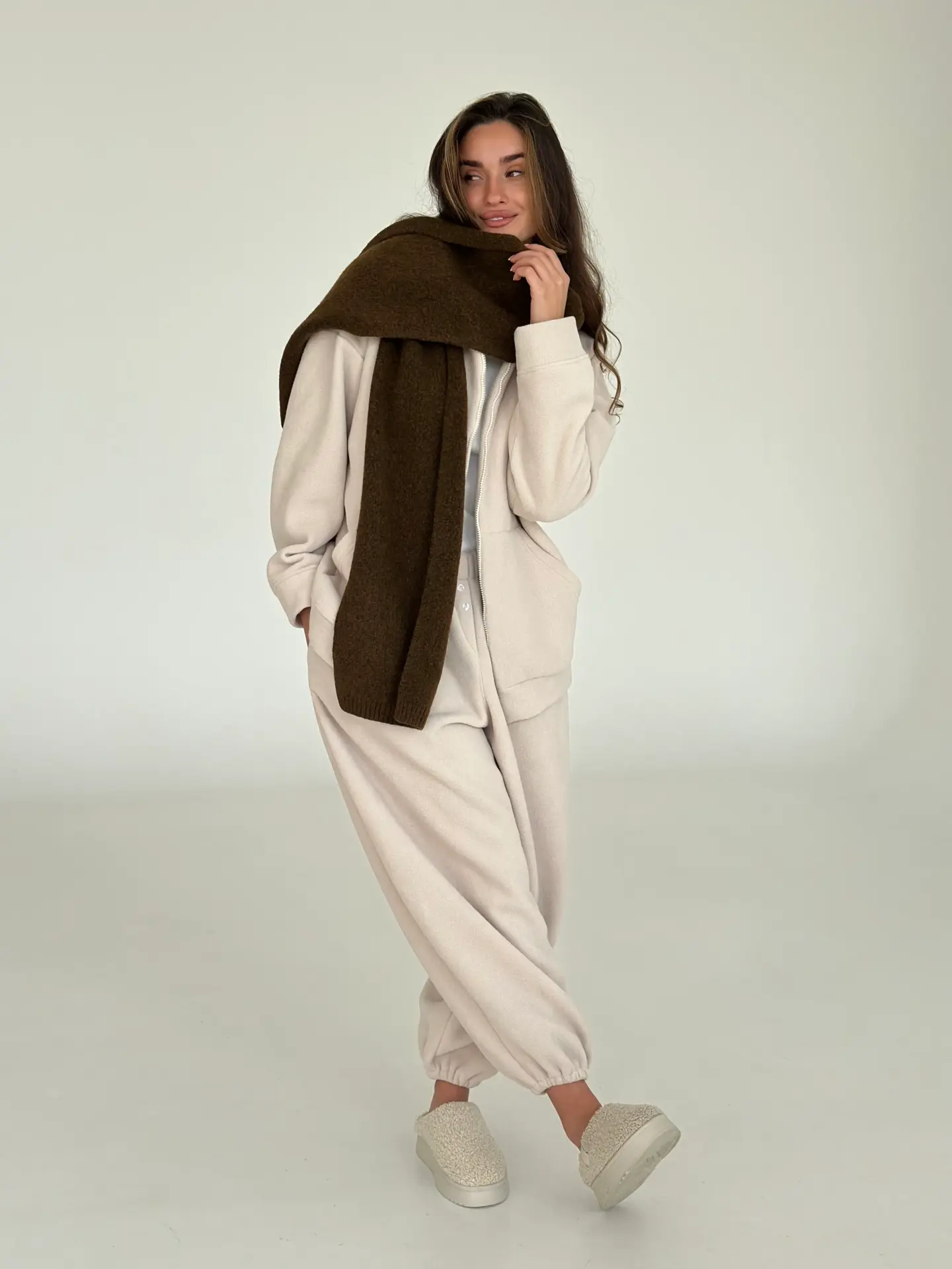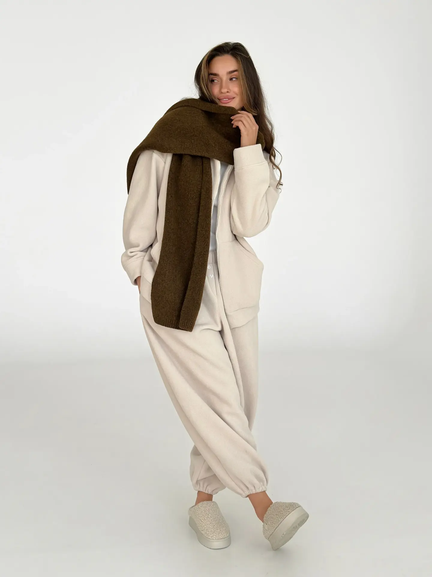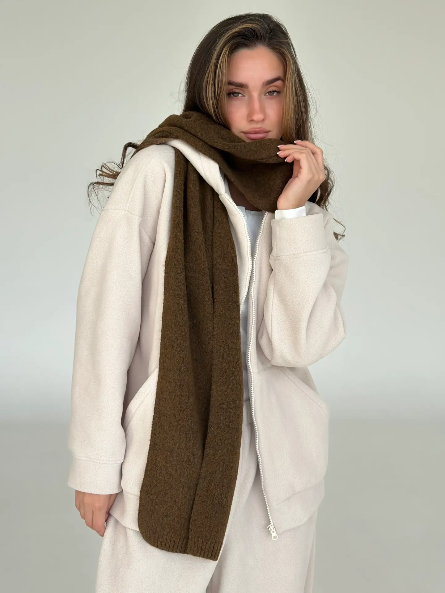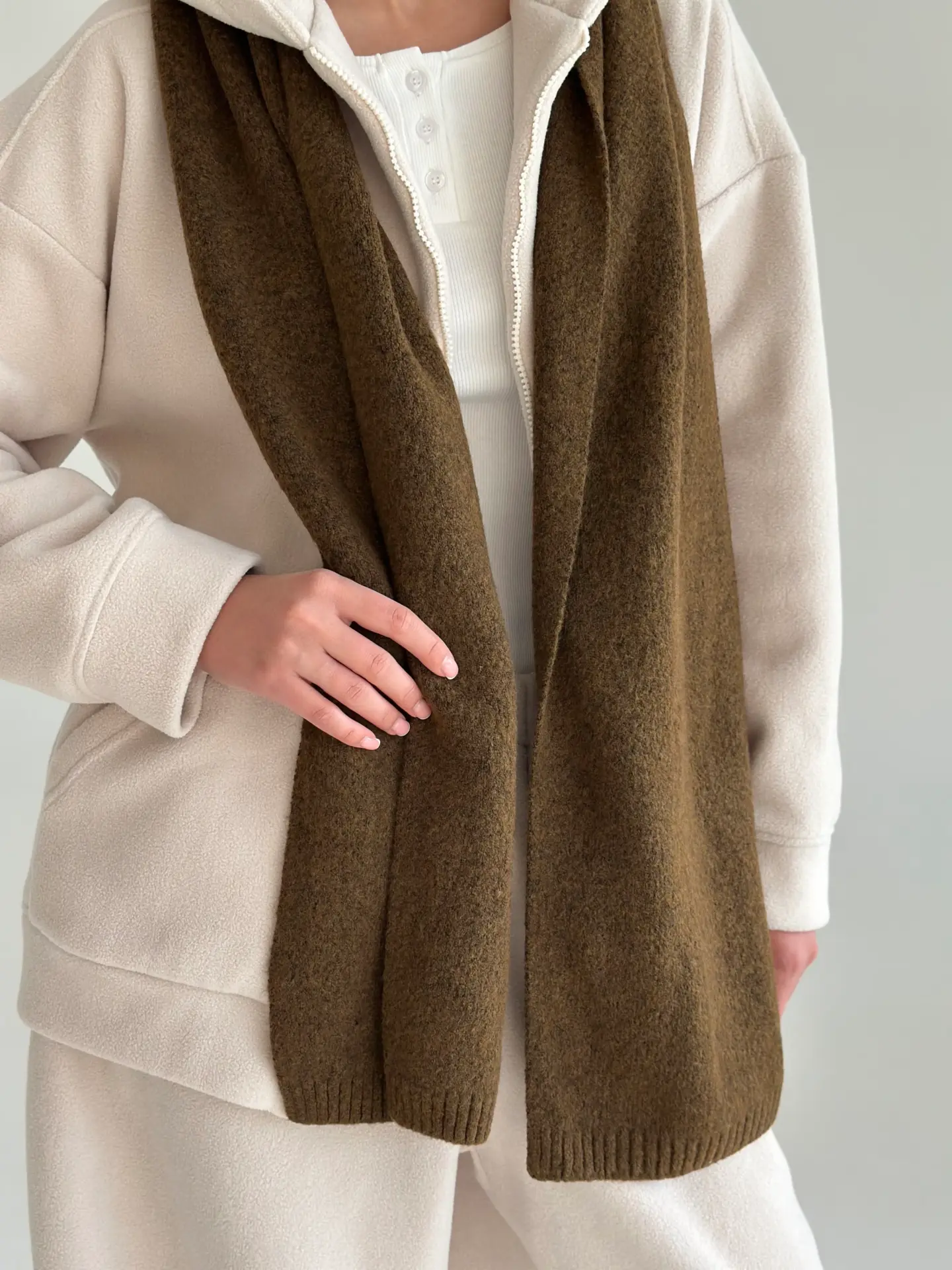 Шарф в’язаний із м’якої, об’ємної пряжі створює відчуття тепла й затишку. Акуратна в’язка та базові відтінки додають образу вишуканості. Ідеальний аксесуар для холодного сезону — легко поєднується з пальто, пуховиком чи светром.