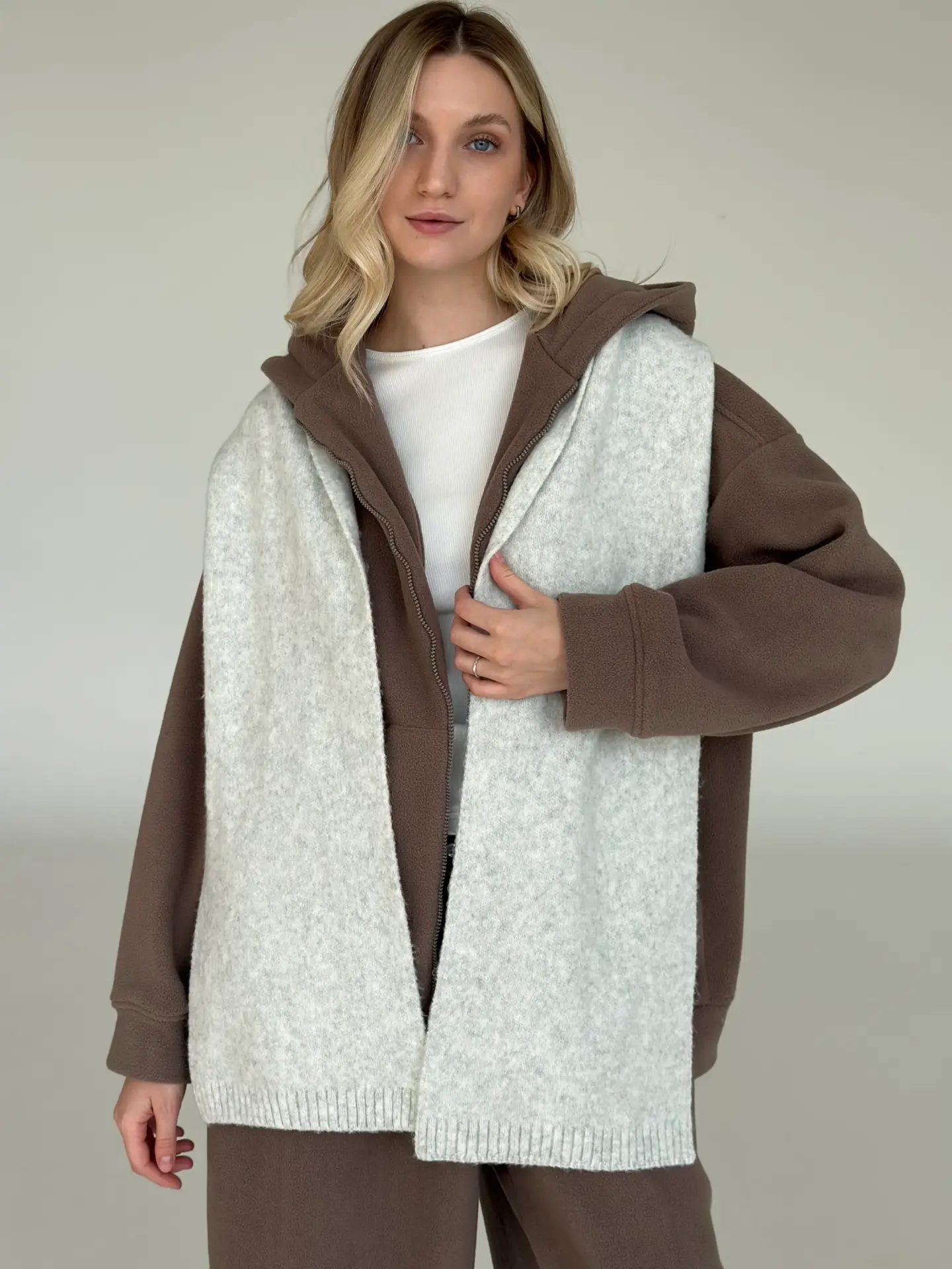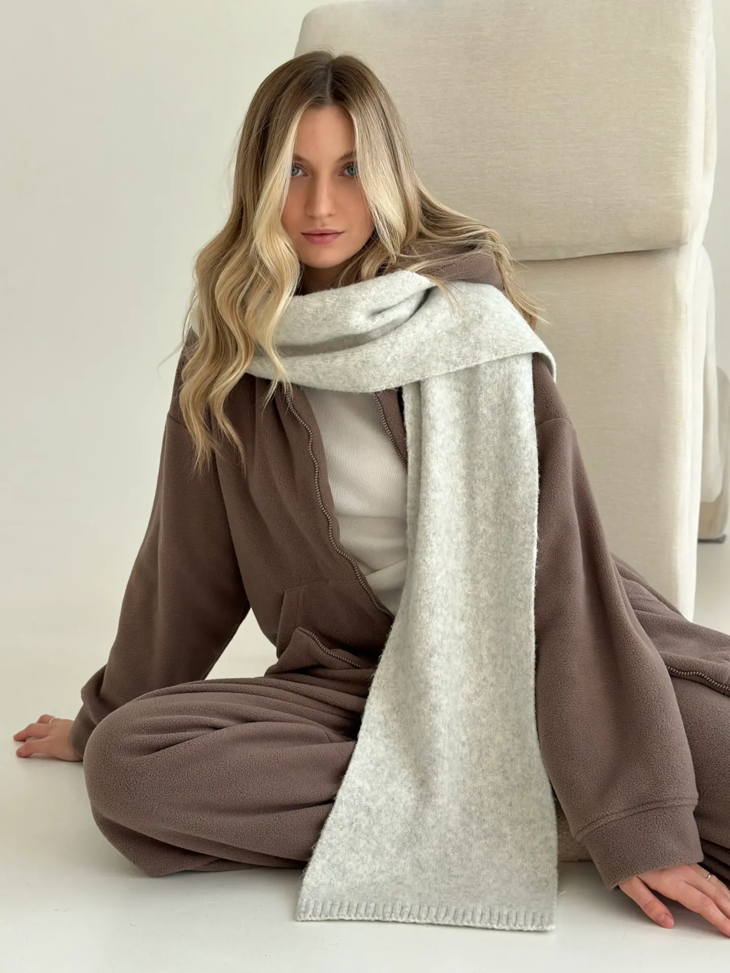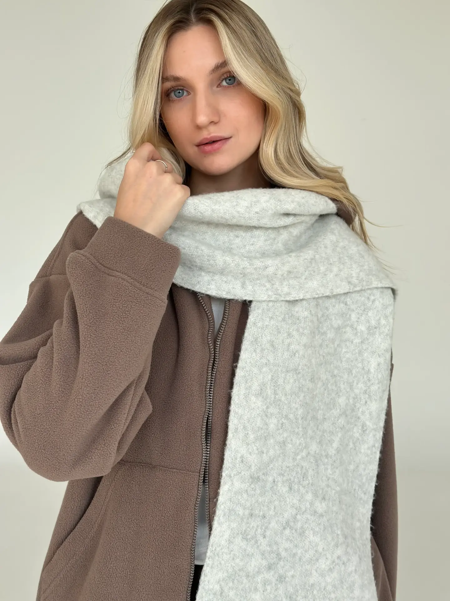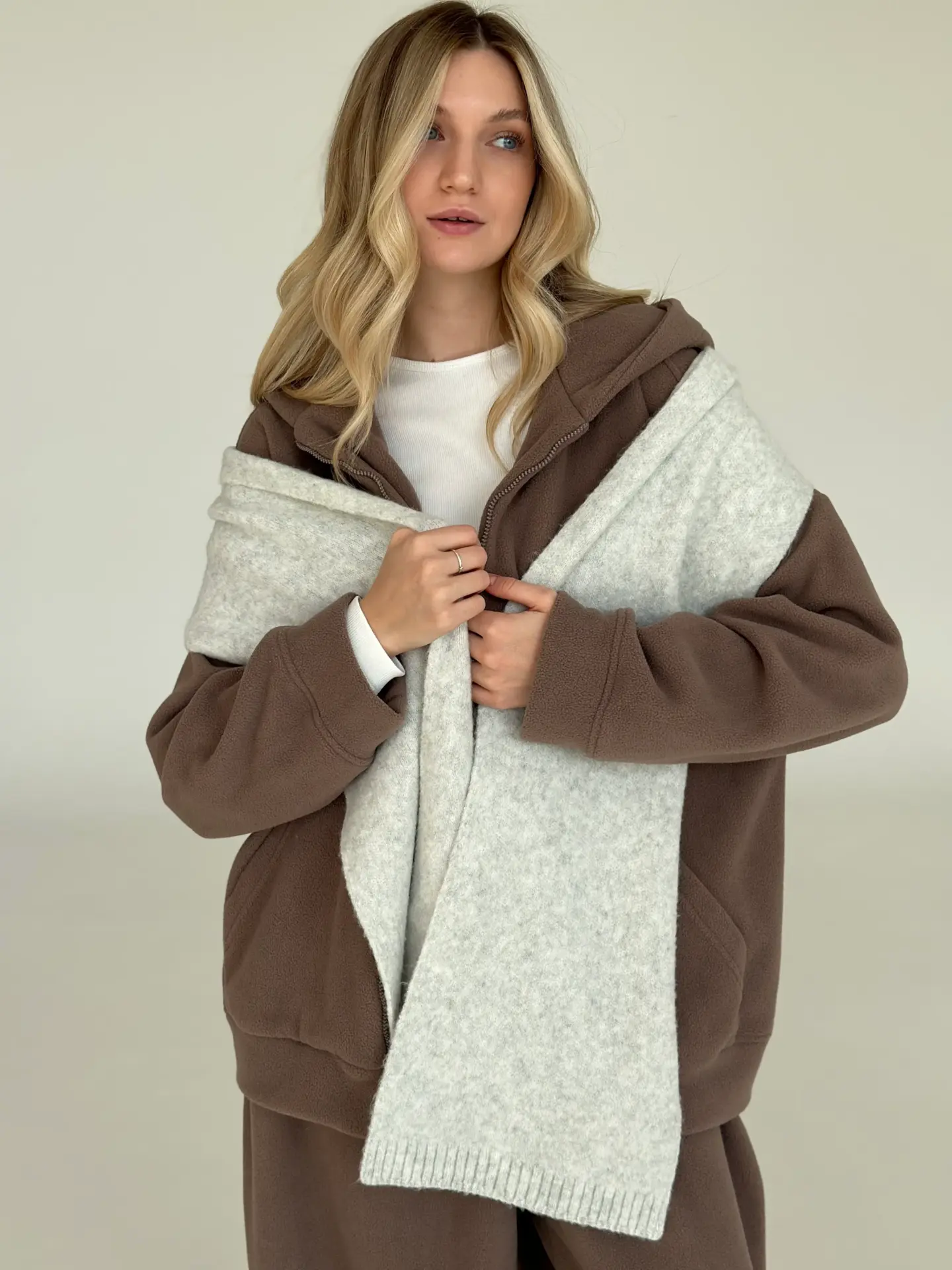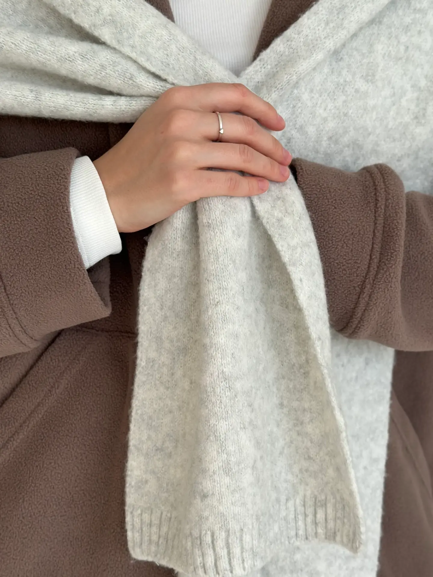 Шарф в’язаний із м’якої, об’ємної пряжі створює відчуття тепла й затишку. Акуратна в’язка та базові відтінки додають образу вишуканості. Ідеальний аксесуар для холодного сезону — легко поєднується з пальто, пуховиком чи светром.