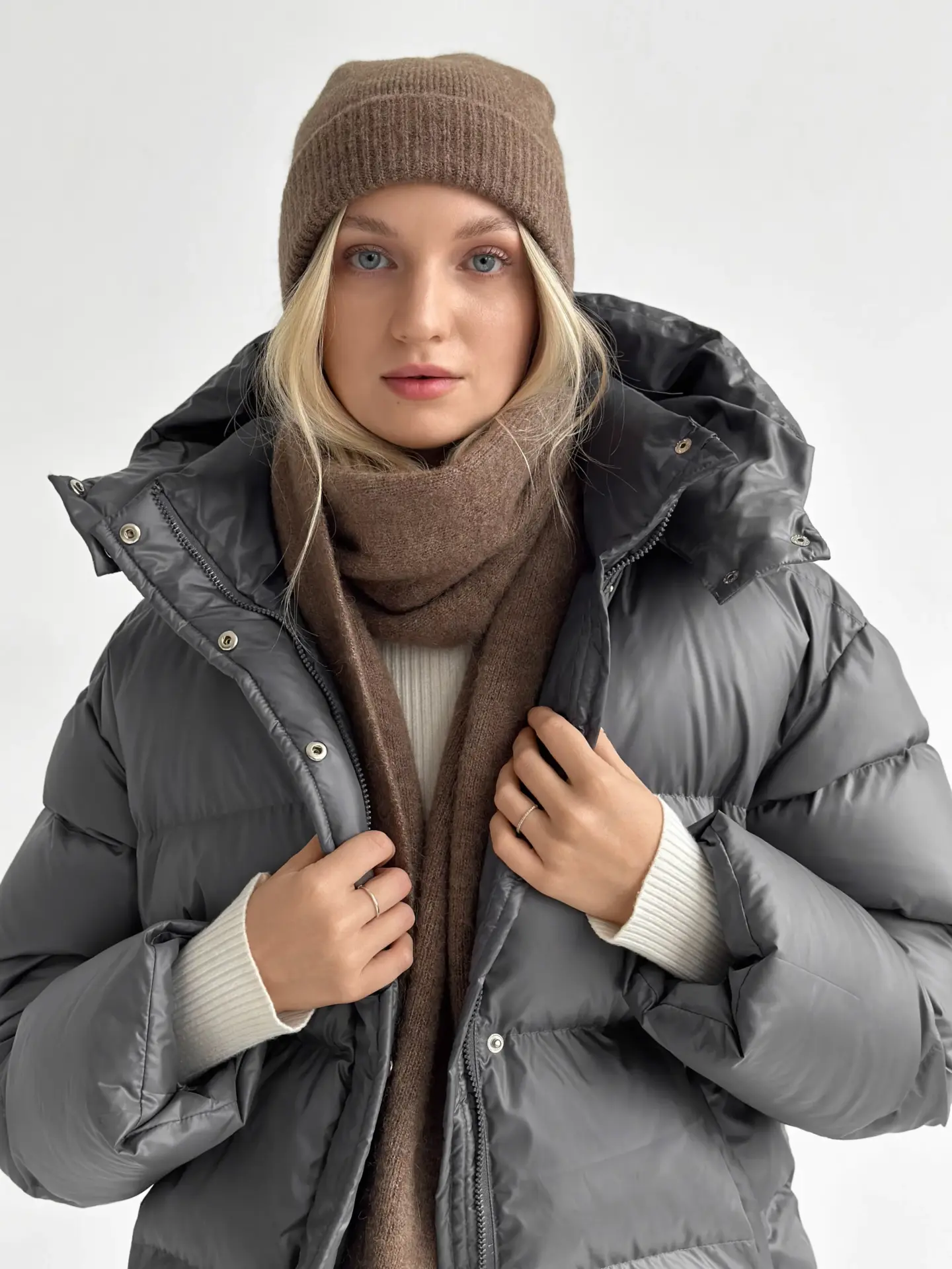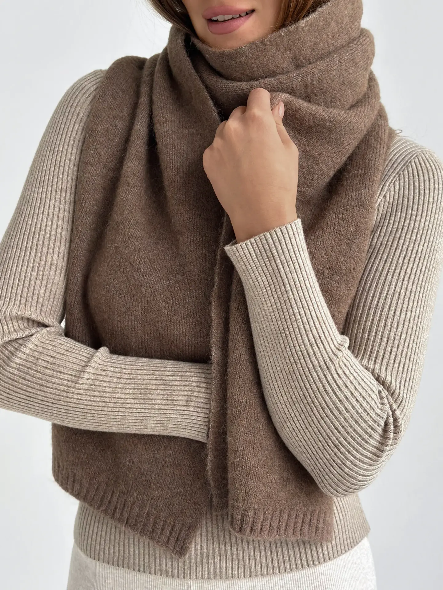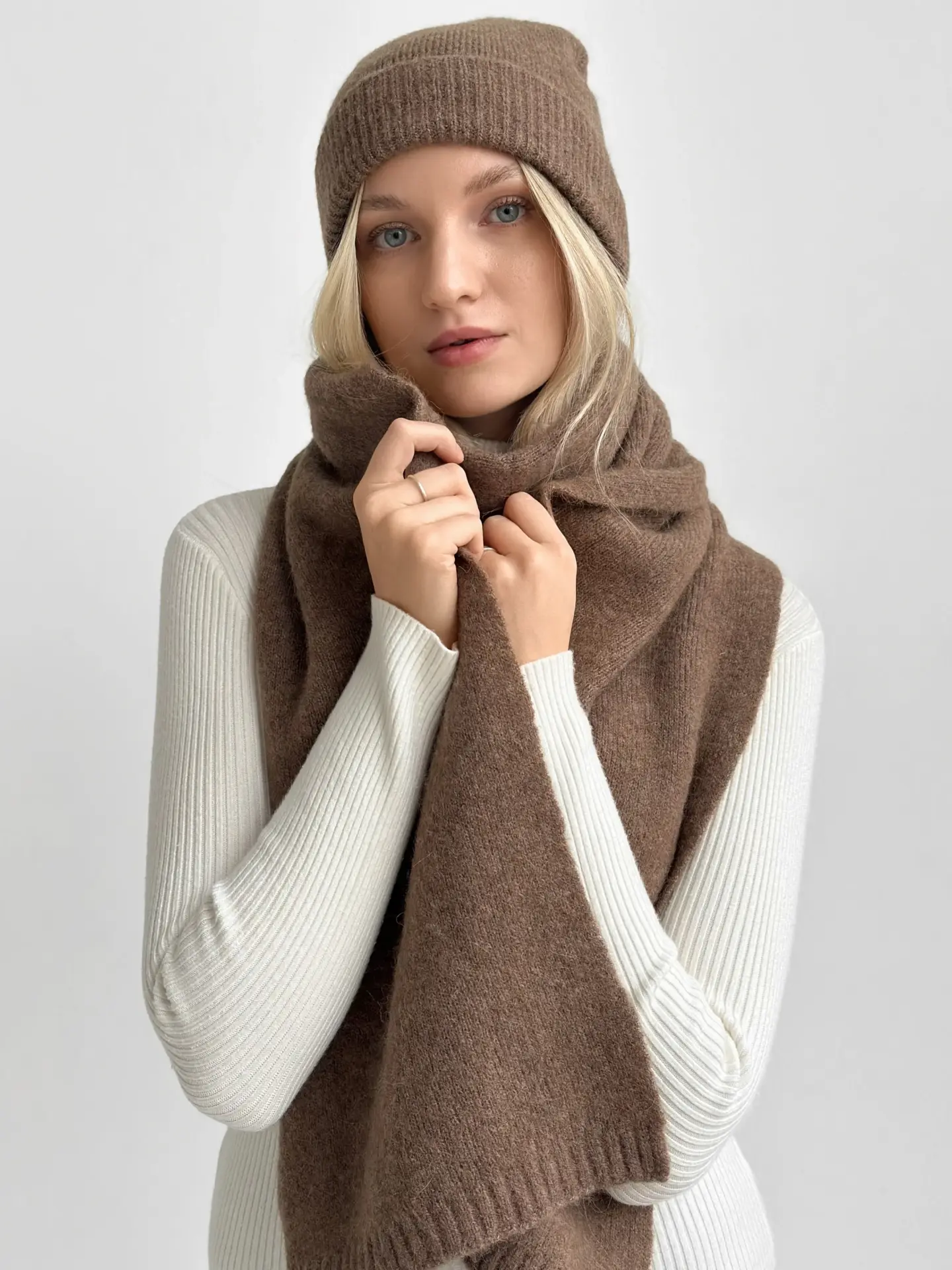 Жіночий шарф із альпаки поєднує елегантність і тепло натуральних волокон. М’яка й приємна на дотик тканина забезпечує комфорт навіть у найлютіші морози. Лаконічний дизайн легко доповнює будь-який образ — від повсякденного до класичного. Ідеальний аксесуар для холодного сезону — легко поєднується з пальто, пуховиком чи светром.