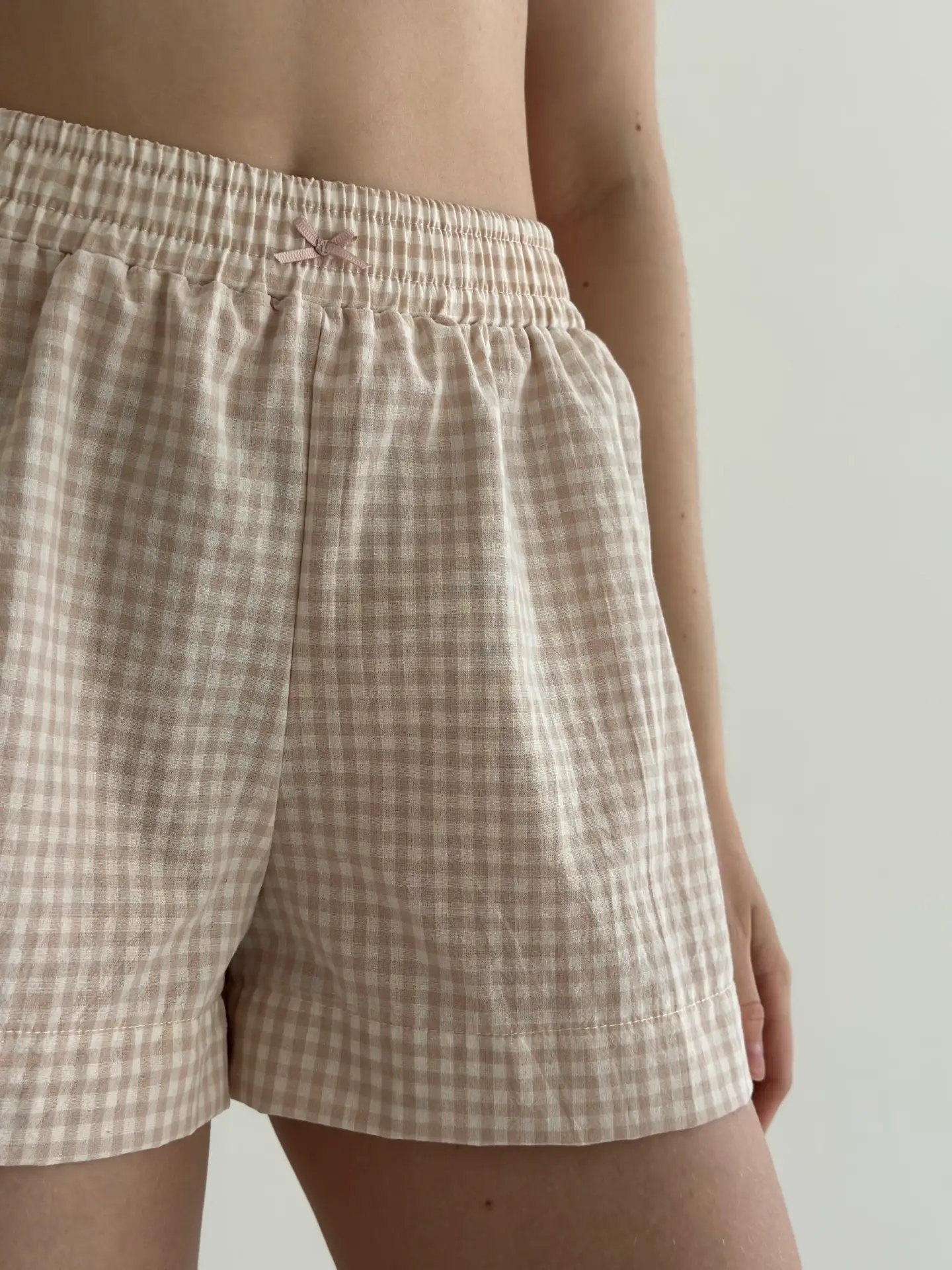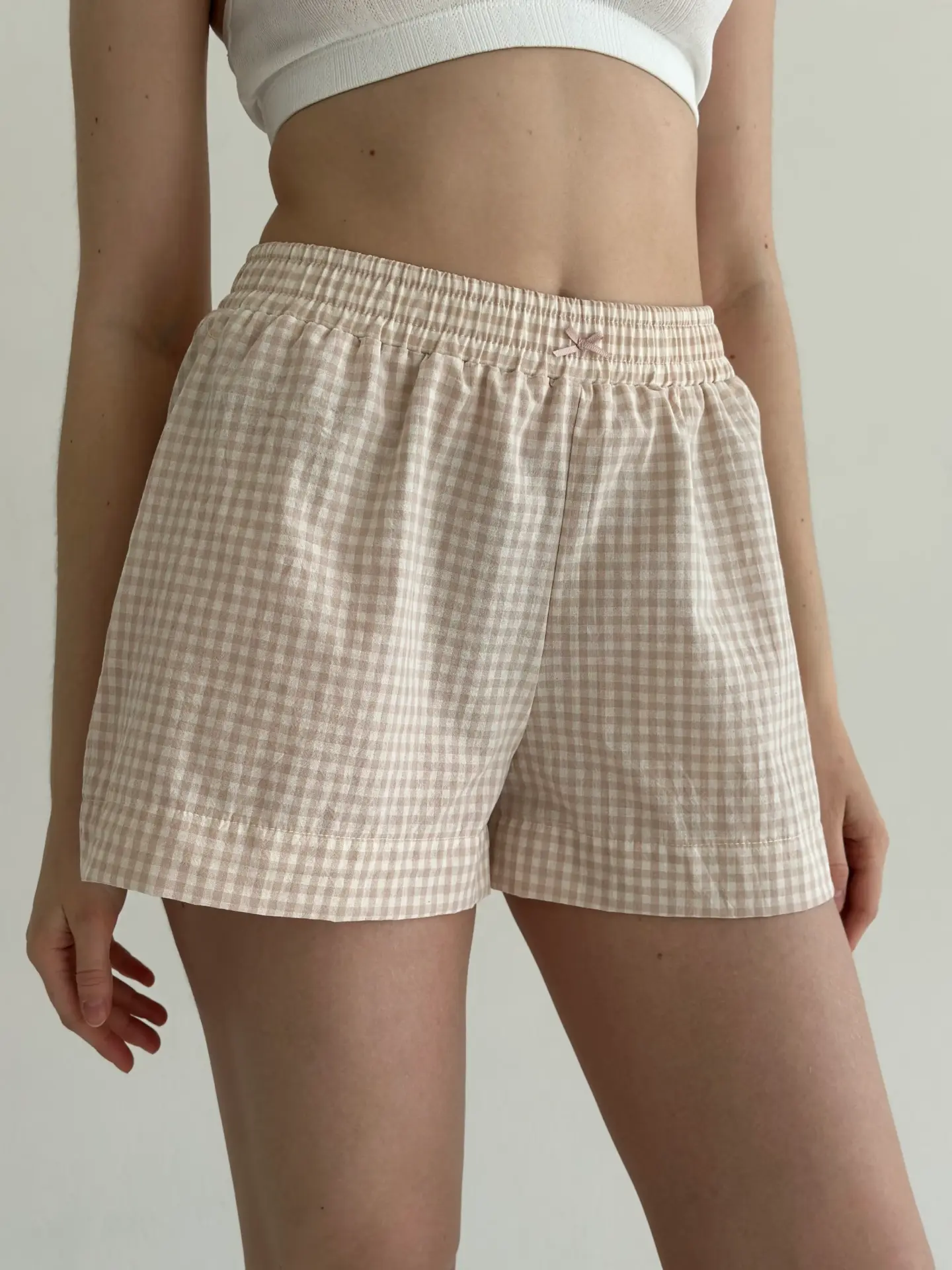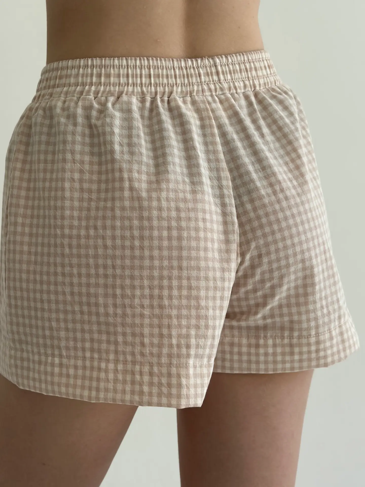 Шорти моно з котону в клітинку поєднують комфорт і лаконічний стиль. Натуральна бавовняна тканина приємна до тіла, добре пропускає повітря та забезпечує зручність упродовж дня. Завдяки простому крою модель ідеально підходить для домашнього відпочинку.