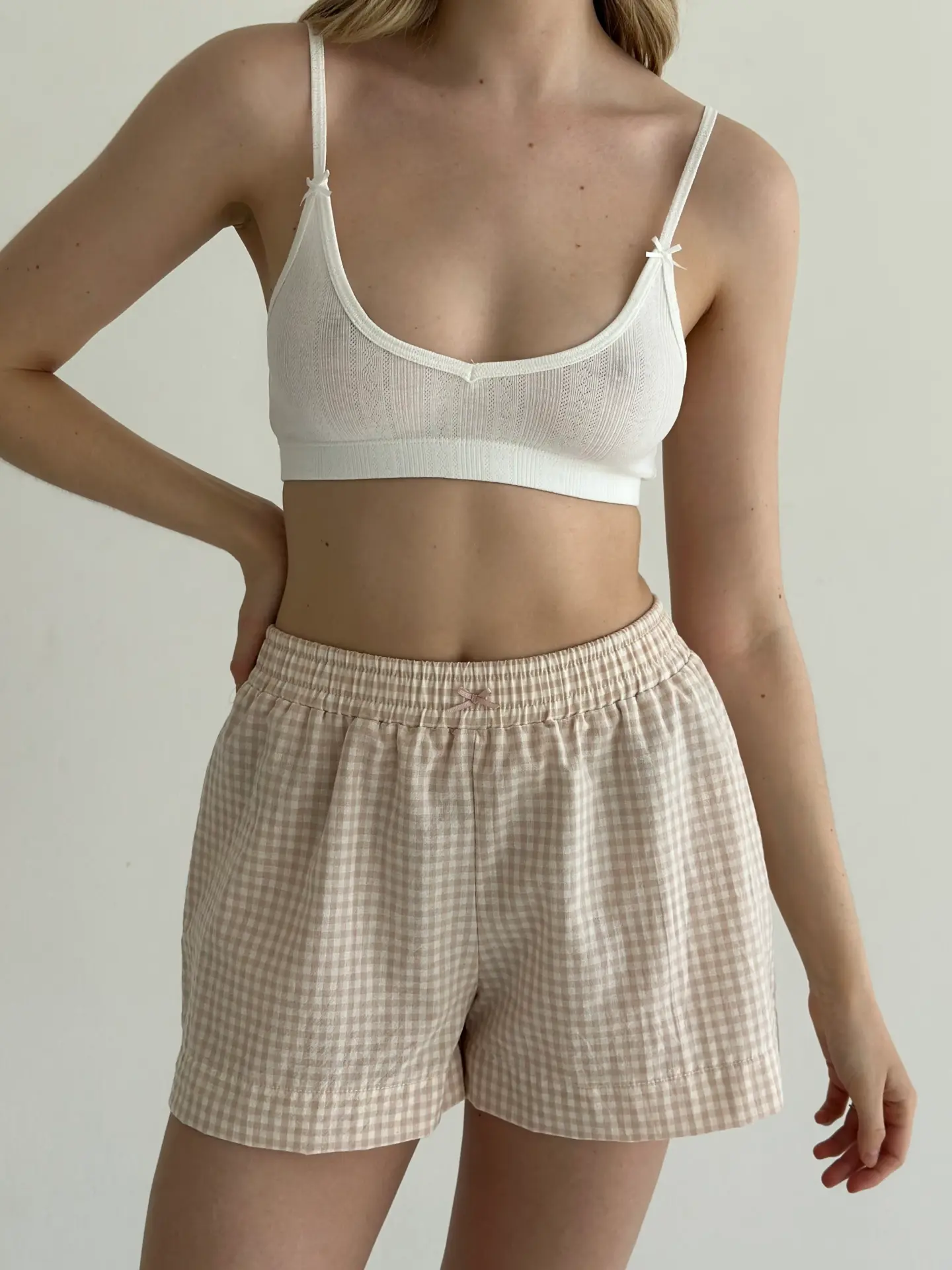 Шорти клітка котон МОНО беж/молоко