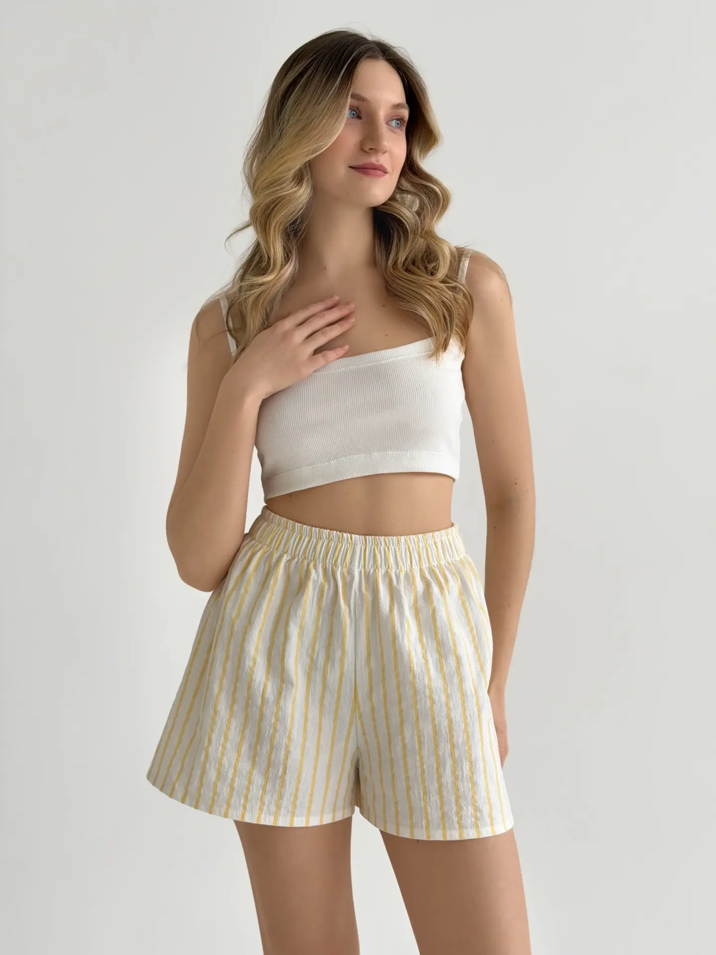Шорти Моно котон “жовта смужка на молочному”