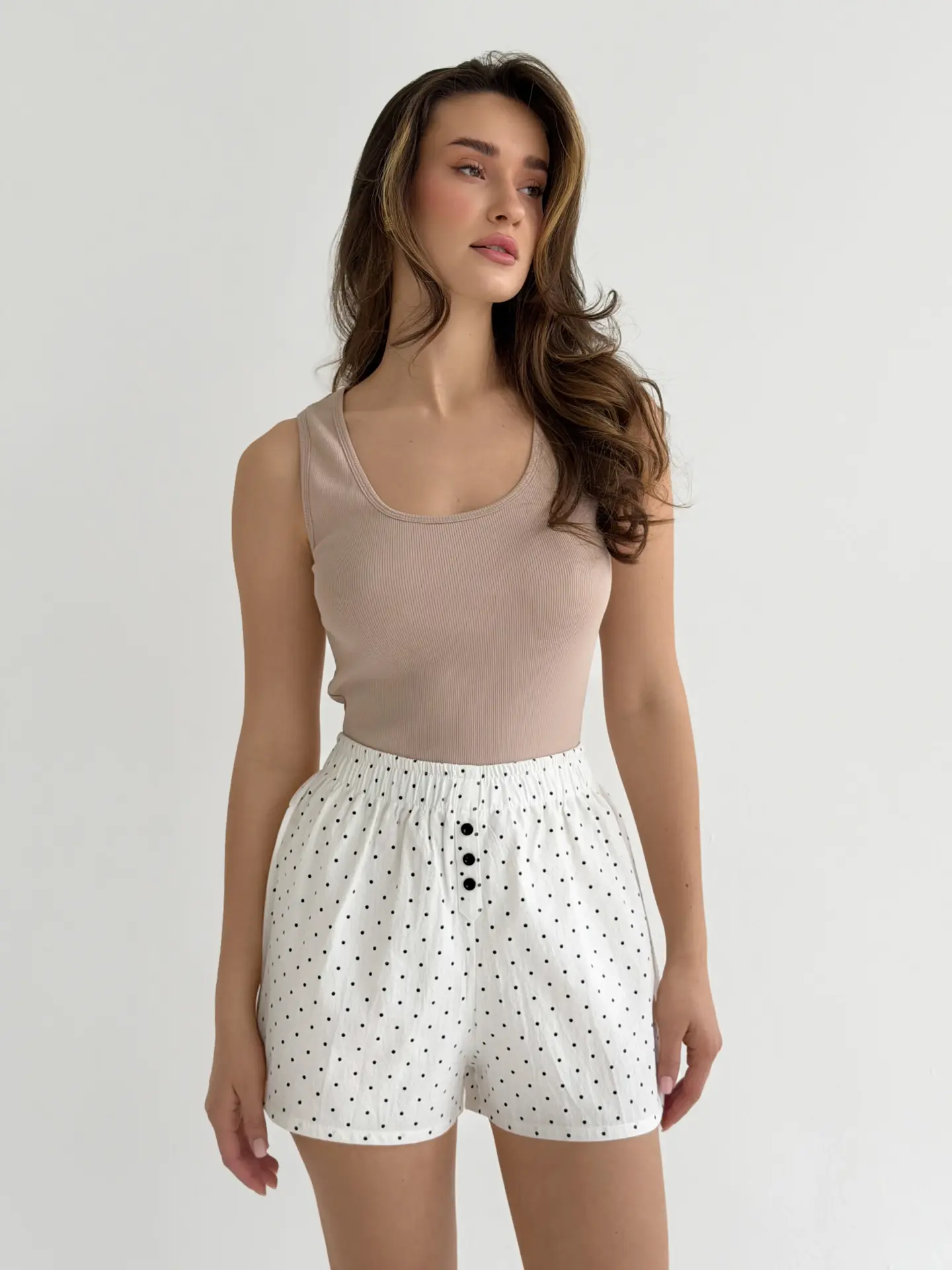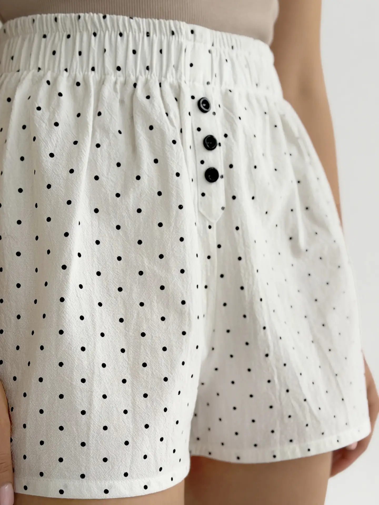Шорти Моно с гульфом бавовна варена “горох чорний на білому”
