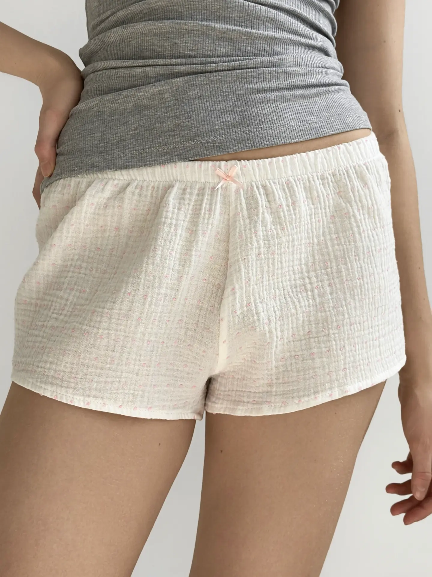 Шорти моно з мусліну поєднують легкість, комфорт і лаконічний стиль. Натуральна тканина приємна до тіла, добре пропускає повітря та забезпечує комфорт у спекотні дні. Ідеально підходять для домашнього відпочинку та створюють відчуття затишку й свободи рухів.