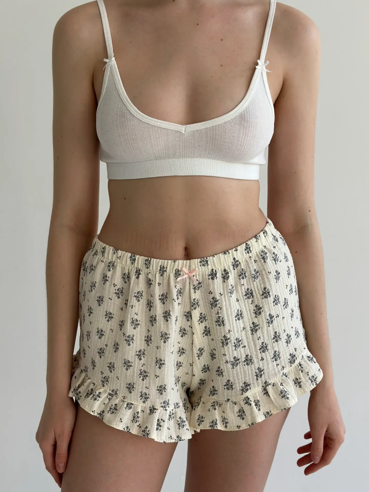 Шорти моно з мусліну поєднують легкість, комфорт і лаконічний стиль. Натуральна тканина приємна до тіла, добре пропускає повітря та забезпечує комфорт у спекотні дні. Ідеально підходять для домашнього відпочинку та створюють відчуття затишку й свободи рухів.