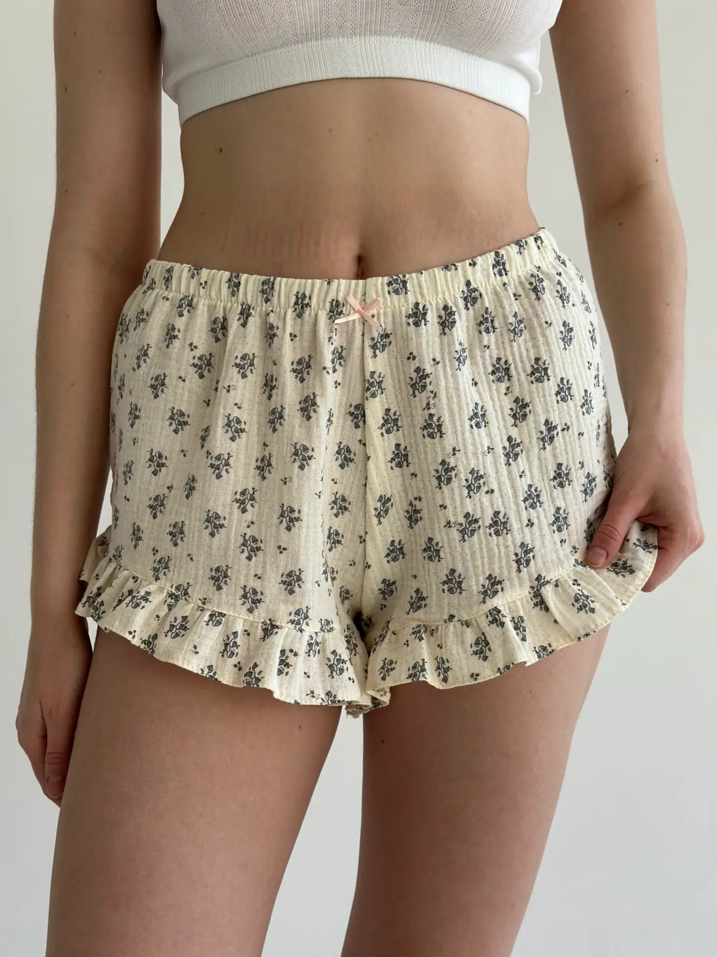 Шорти муслін Рюш квіти на айворі - Twins