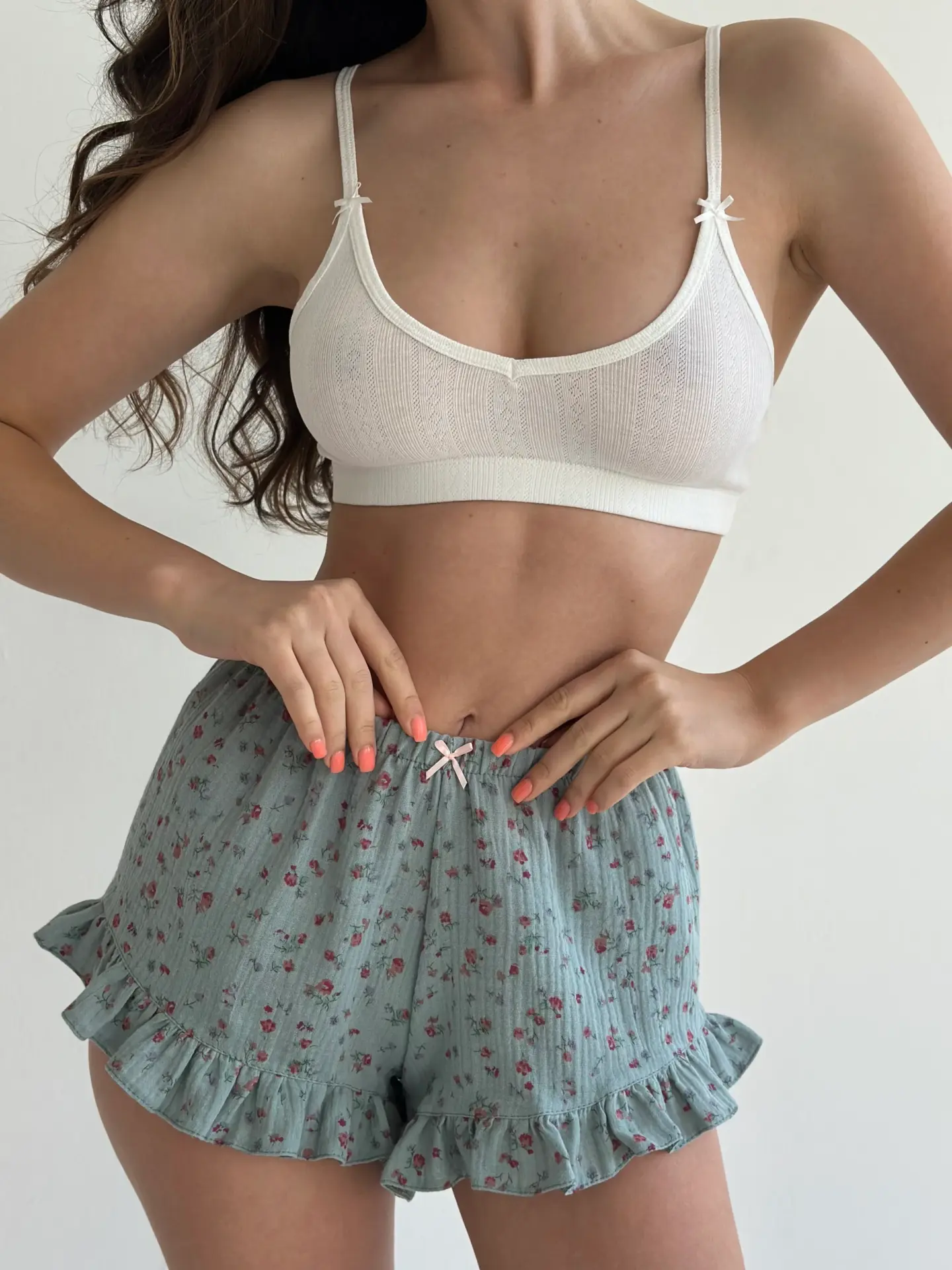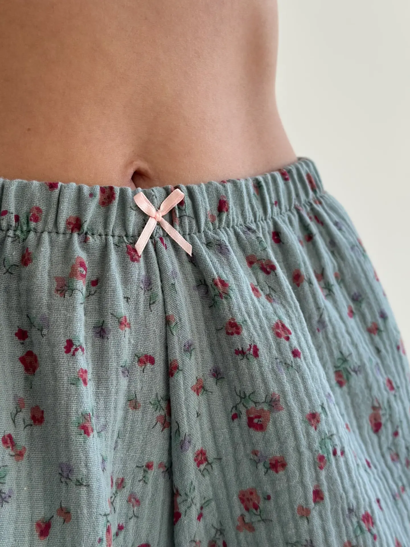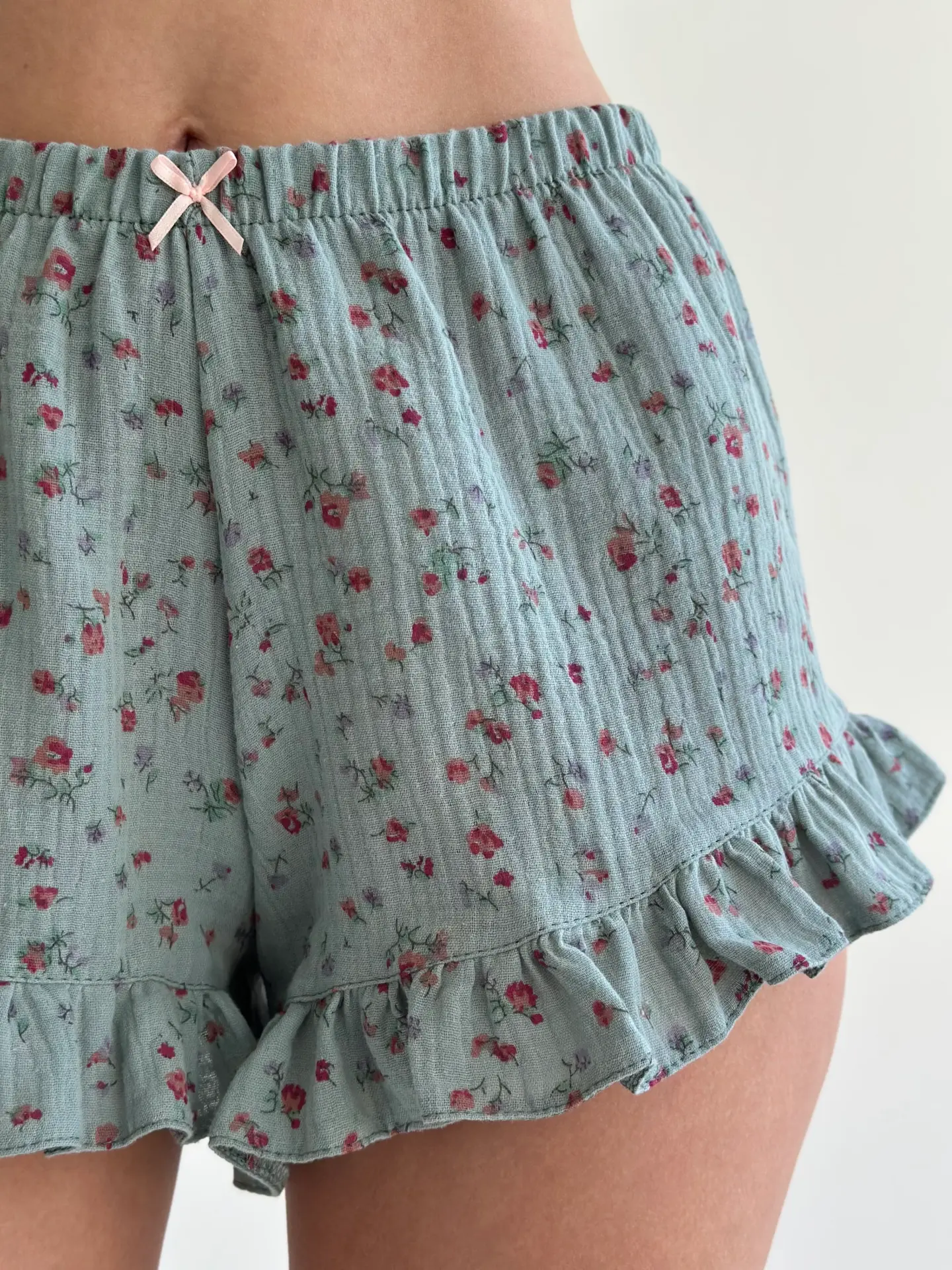 Шорти моно з мусліну поєднують легкість, комфорт і лаконічний стиль. Натуральна тканина приємна до тіла, добре пропускає повітря та забезпечує комфорт у спекотні дні. Ідеально підходять для домашнього відпочинку та створюють відчуття затишку й свободи рухів.