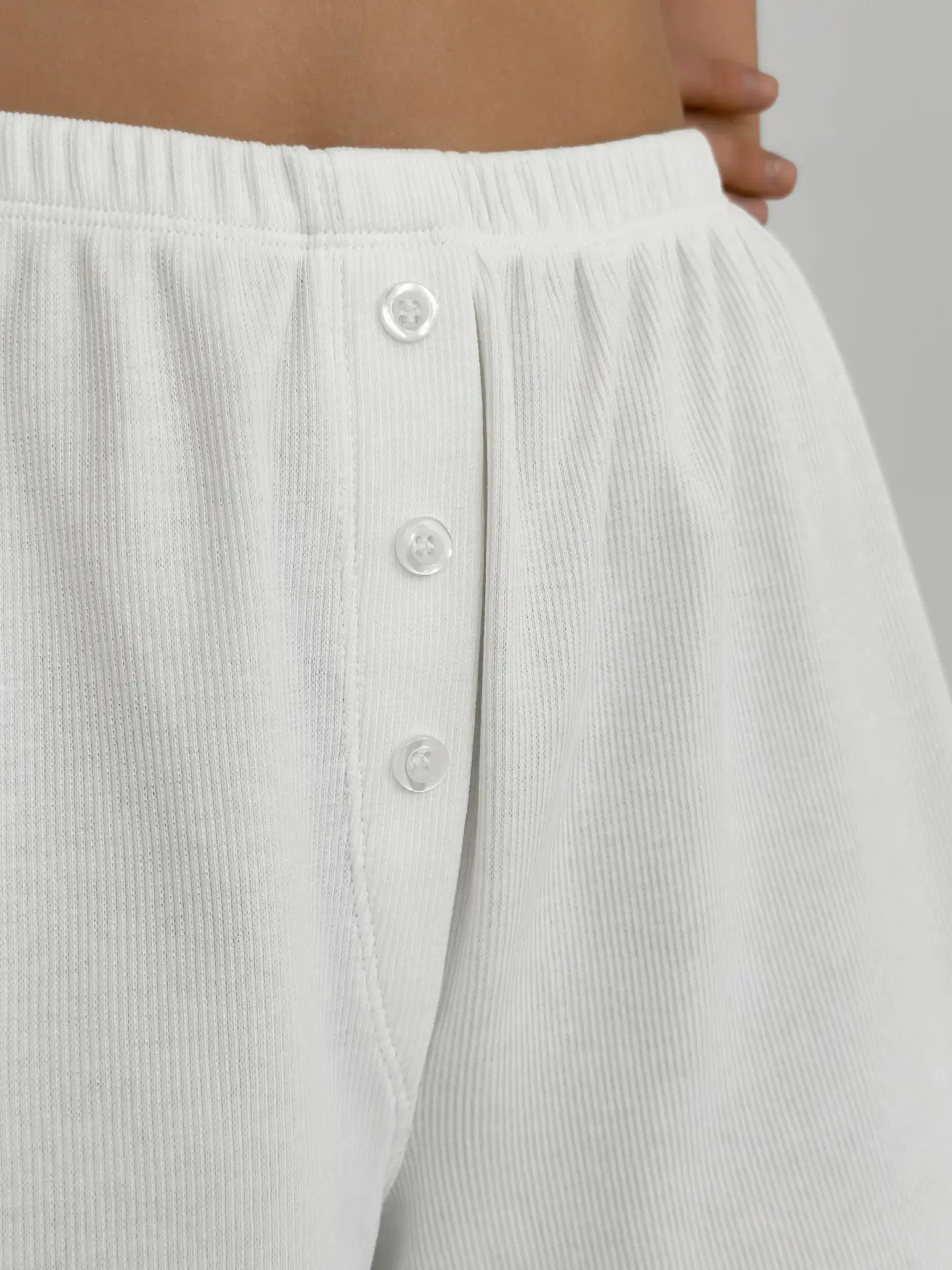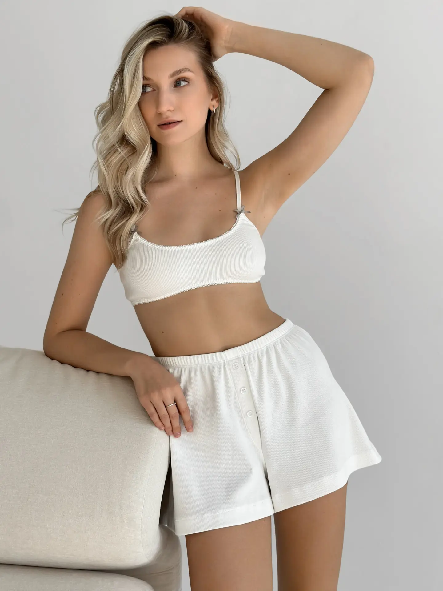 Шорти з гульфіком із трикотажу рубчик поєднують комфорт і практичність. М’яка еластична тканина забезпечує зручність у носінні та свободу рухів. Лаконічний дизайн робить їх універсальним вибором для дому та відпочинку.