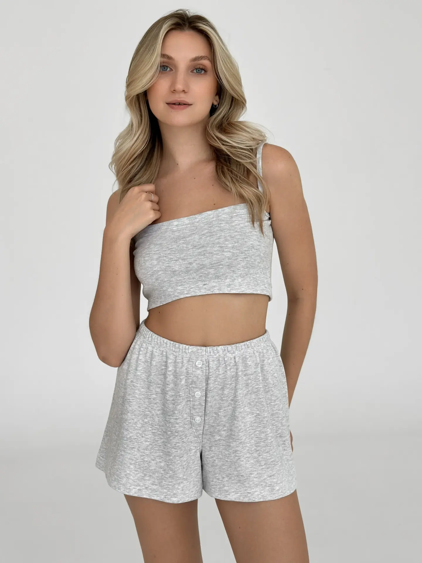 Шорти з гульфіком із трикотажу рубчик поєднують комфорт і практичність. М’яка еластична тканина забезпечує зручність у носінні та свободу рухів. Лаконічний дизайн робить їх універсальним вибором для дому та відпочинку.