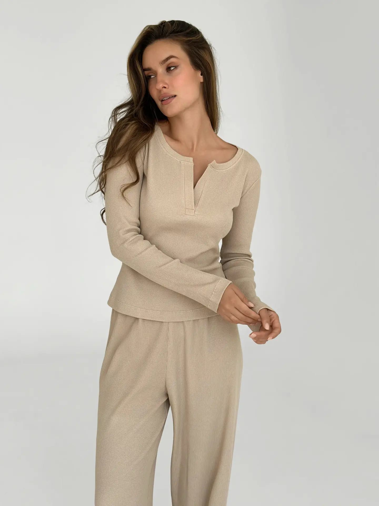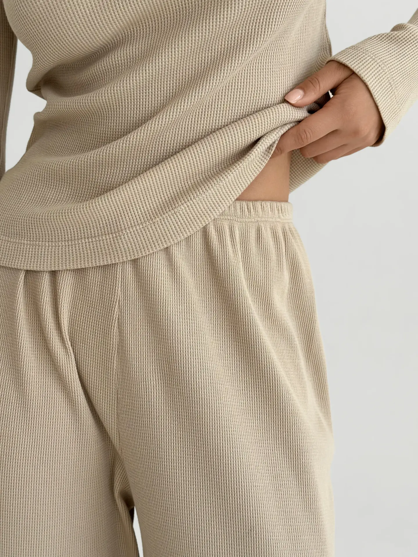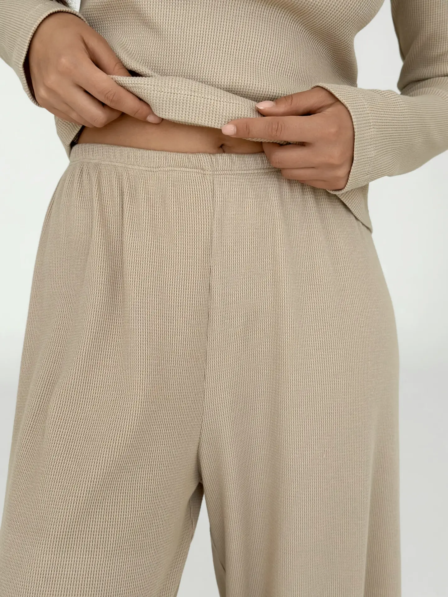 Штани широкі трикотаж вафельний бежеві