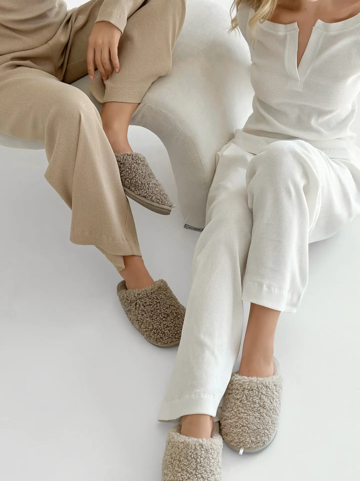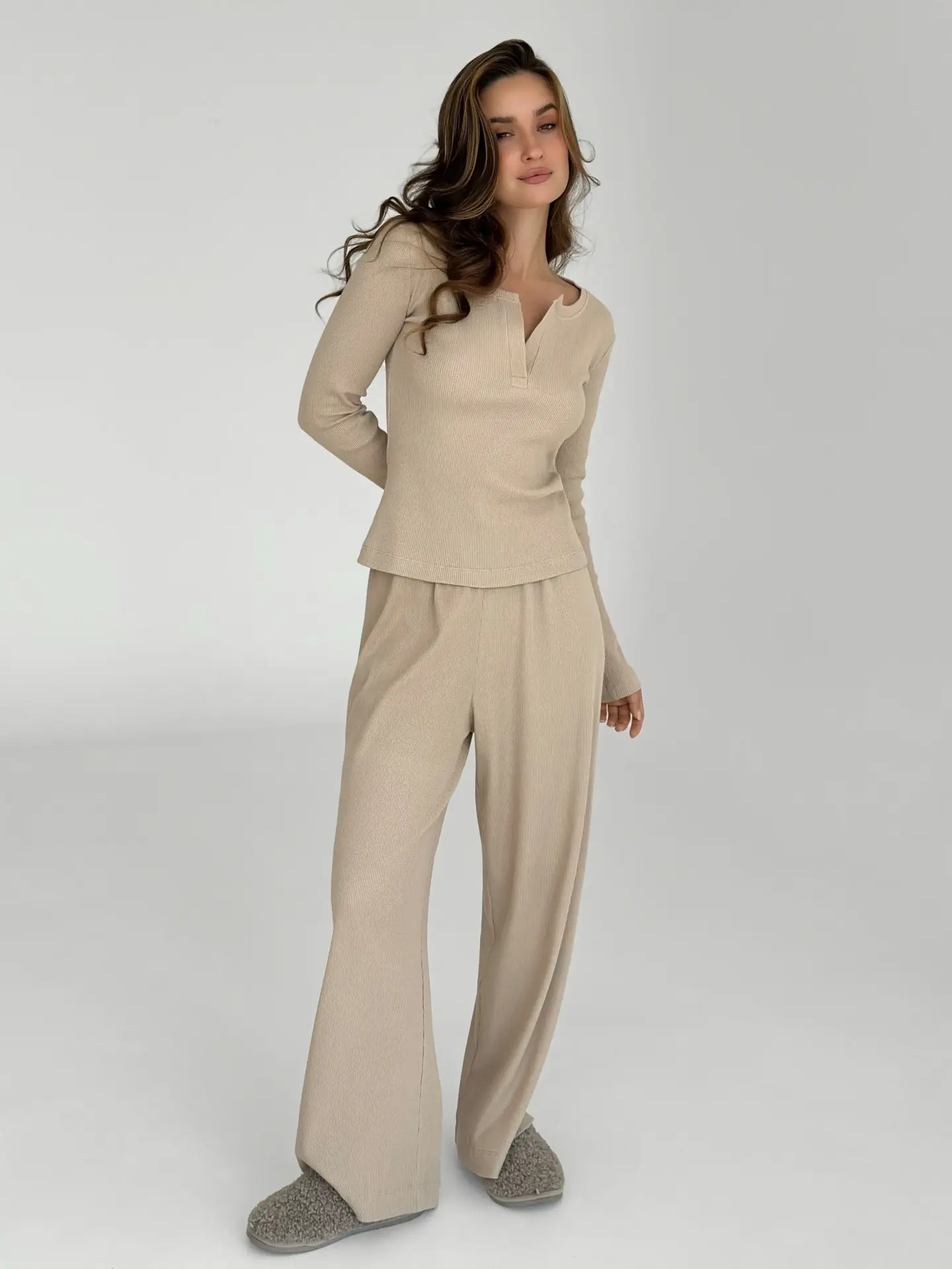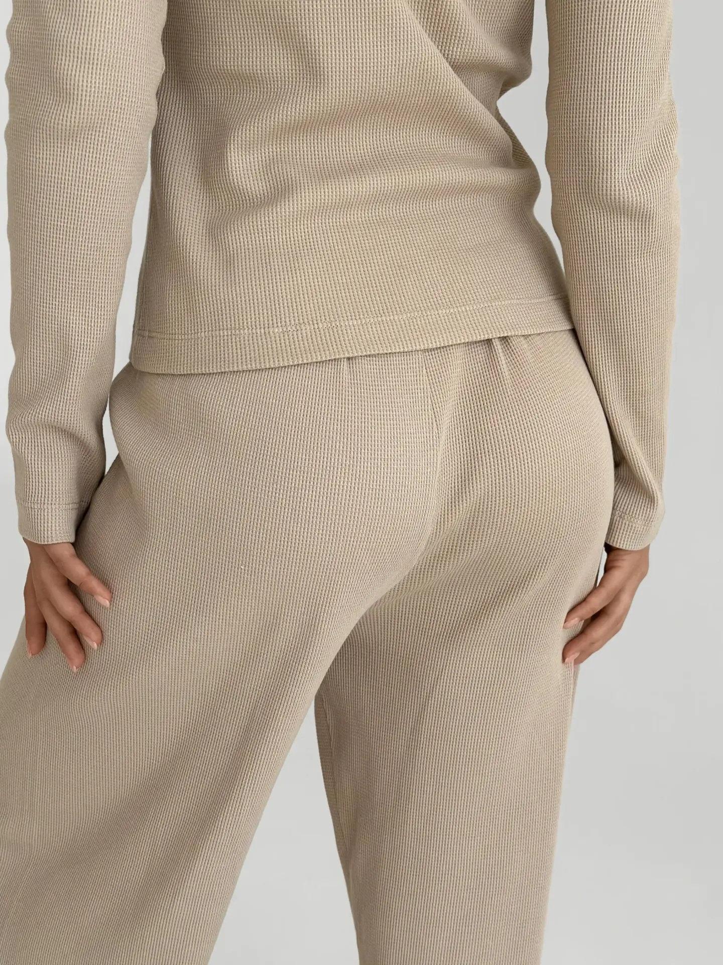 Штани широкі трикотаж вафельний бежеві