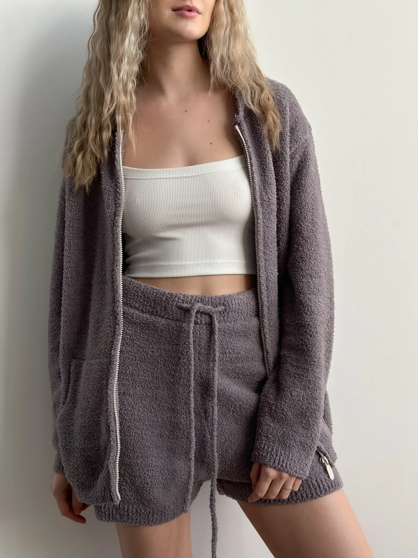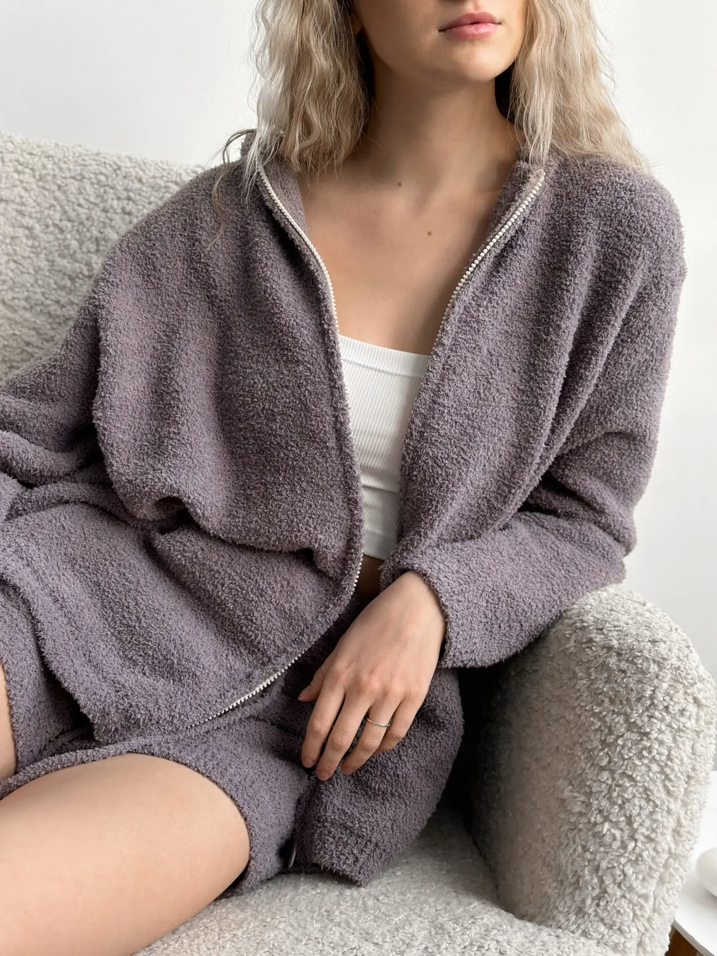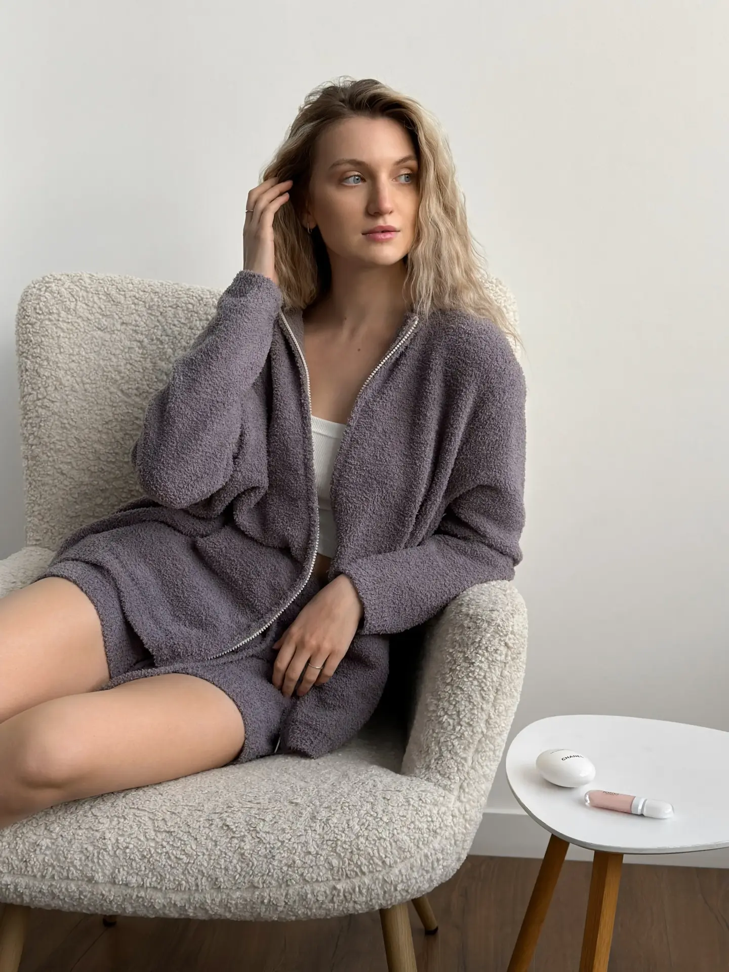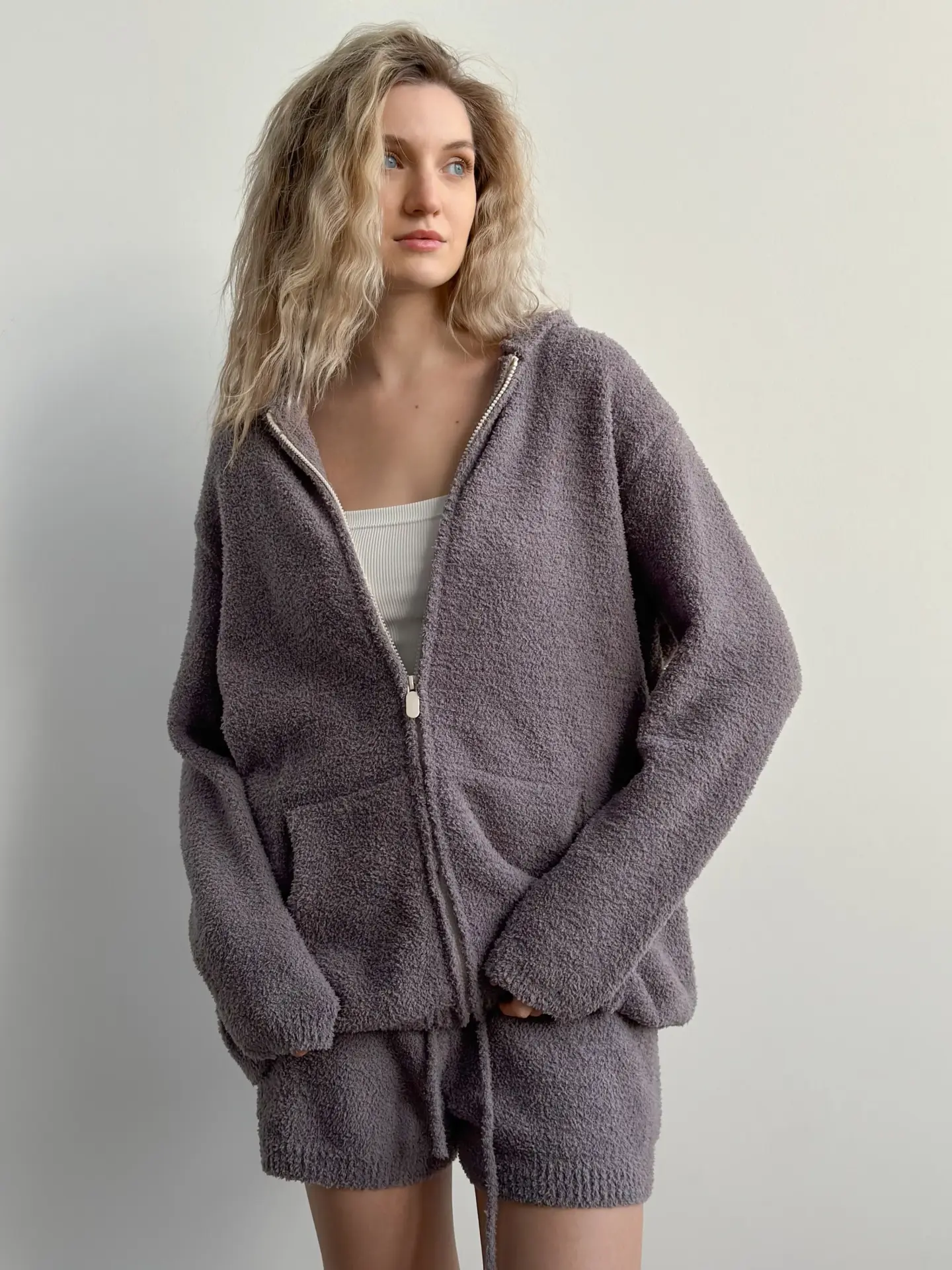 В’язана кофта Soft на блискавці поєднує тепло та стиль. М’яка пряжа приємна до тіла, забезпечує комфорт і затишок у прохолодну погоду. Зручна застібка-блискавка додає практичності, роблячи модель універсальною для щоденного носіння.