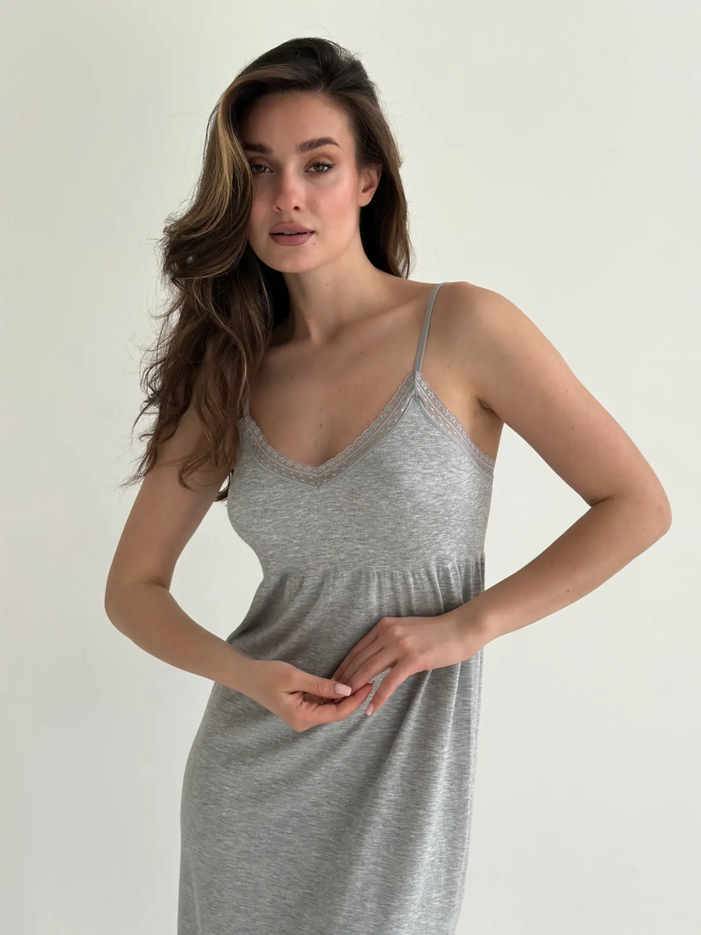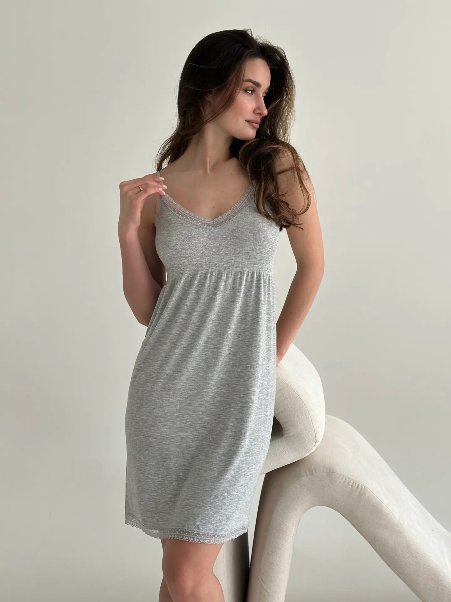 Сукня для сну з віскози з мереживом поєднує комфорт і ніжну жіночність. М’яка та легка тканина приємна до тіла, добре пропускає повітря й забезпечує зручність під час сну. Акуратне мереживо додає витонченості та створює елегантний домашній образ.