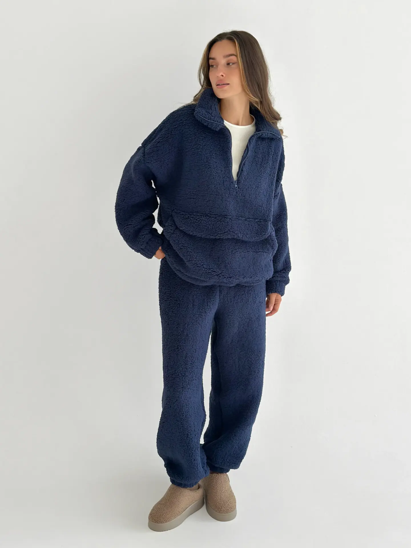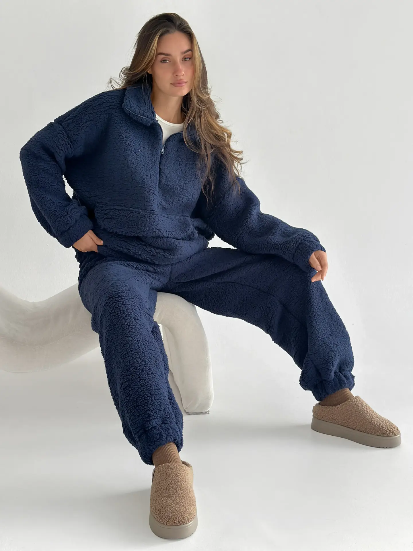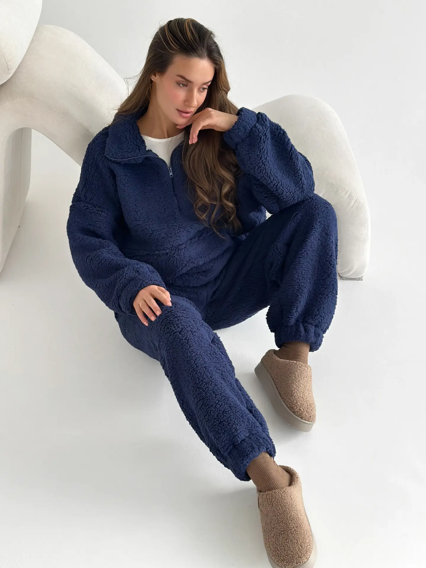 Костюм Teddy Soft — це максимум затишку та стилю. М’який пухнастий матеріал забезпечує комфорт і тепло, ідеально підходячи для холодних днів. Стильний крій і практична блискавка роблять костюм універсальним для дому чи прогулянок.
