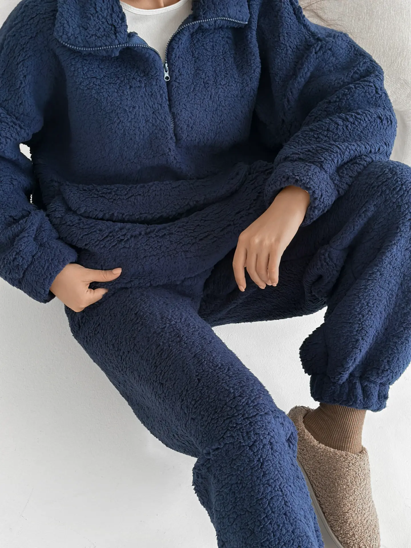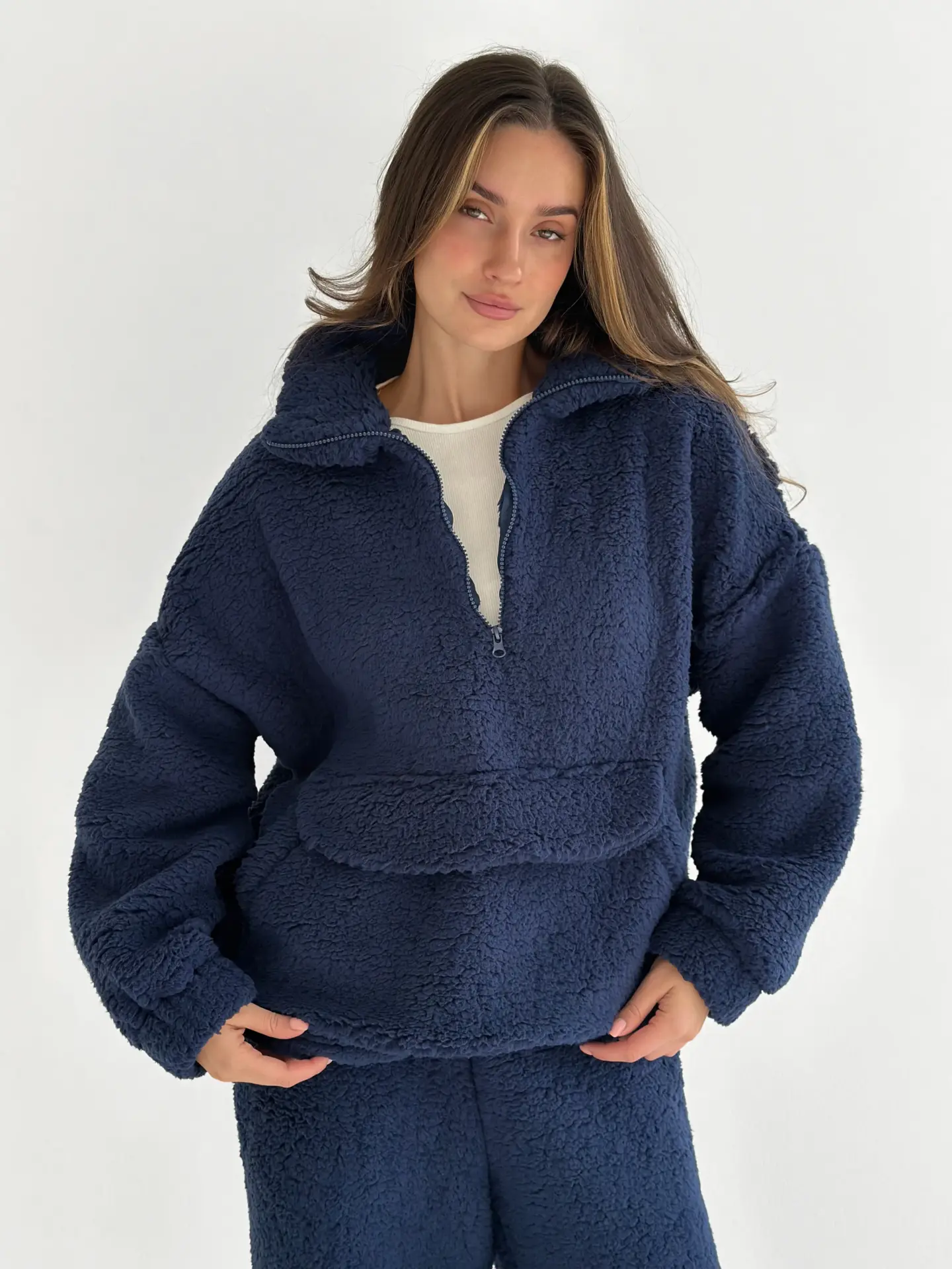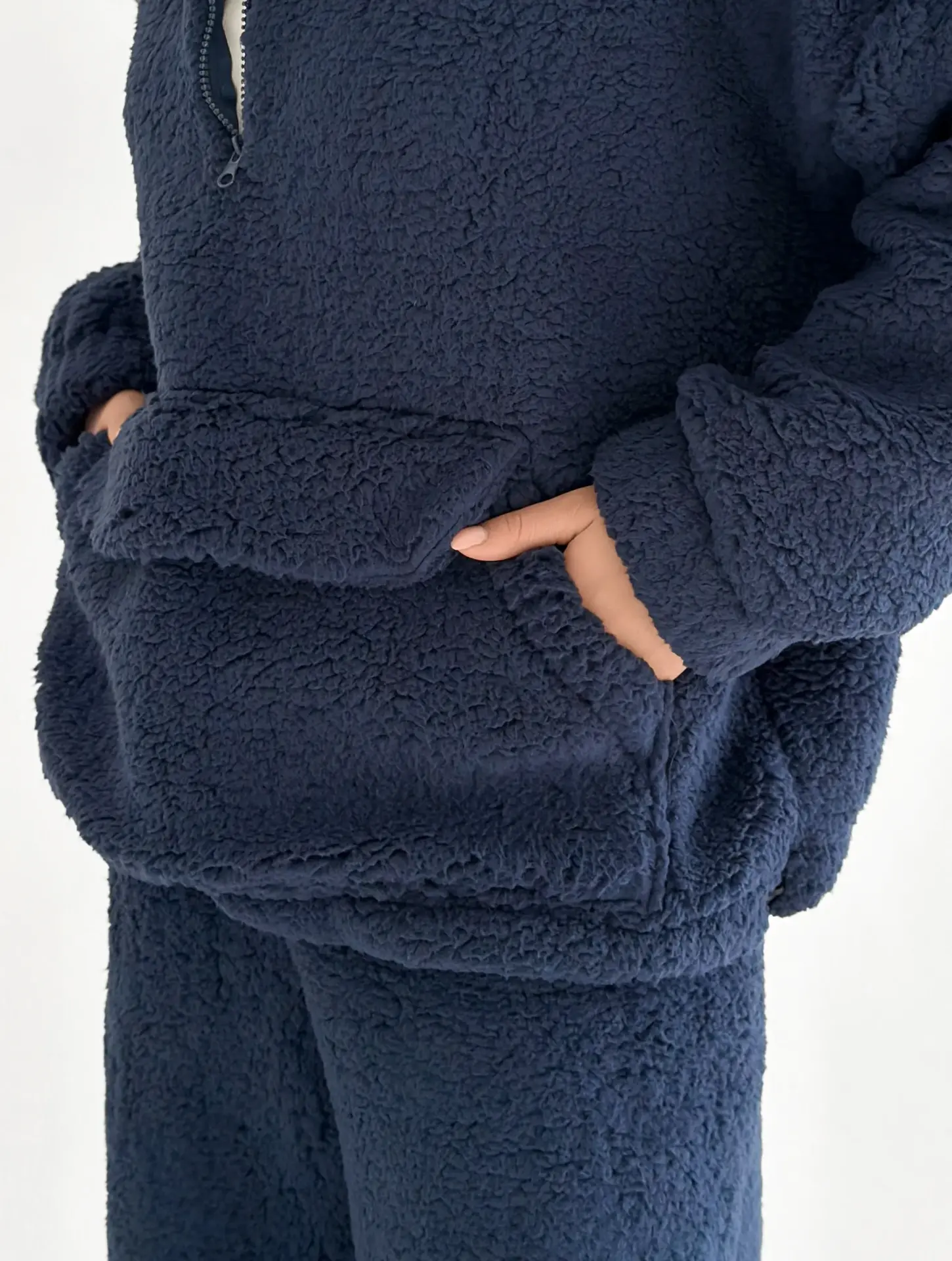 Костюм Teddy Soft — це максимум затишку та стилю. М’який пухнастий матеріал забезпечує комфорт і тепло, ідеально підходячи для холодних днів. Стильний крій і практична блискавка роблять костюм універсальним для дому чи прогулянок.