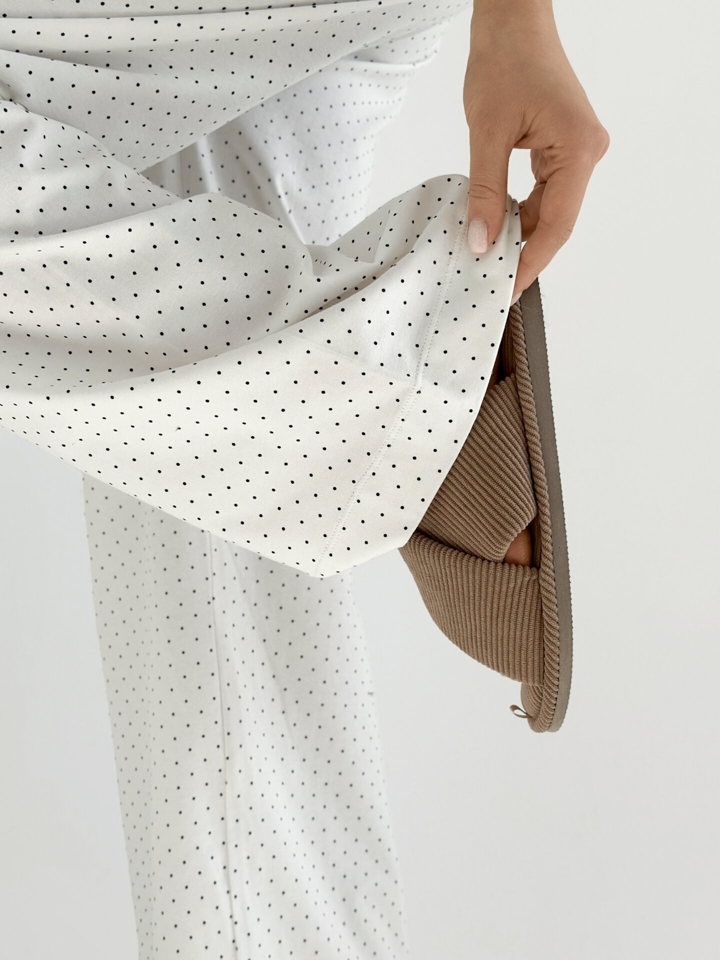 SOLD OUTТрикотаж штани широкі горох синій на білому