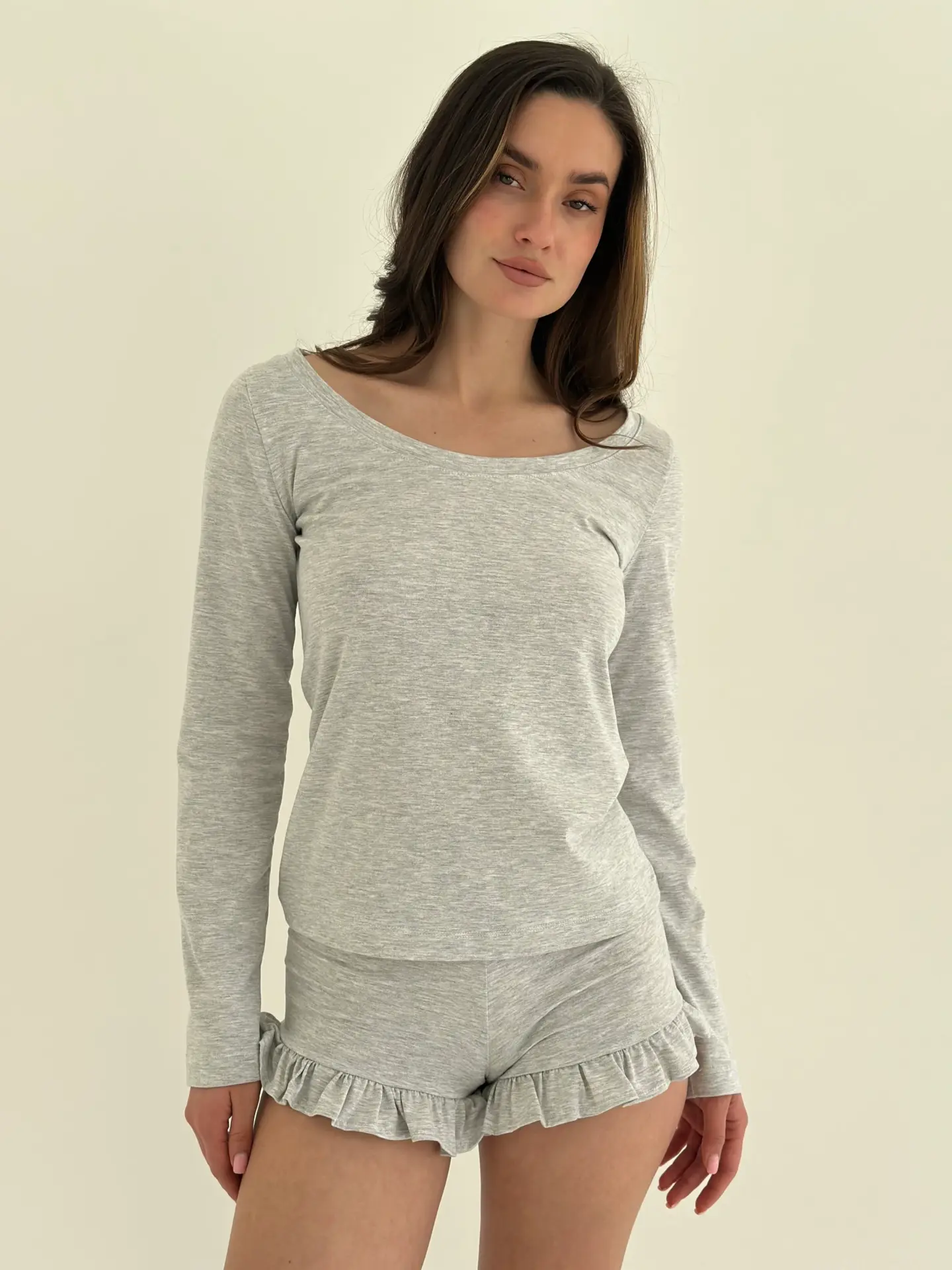 Трикотаж Кулір комплект лонгслів та шорти з рюшами сірий