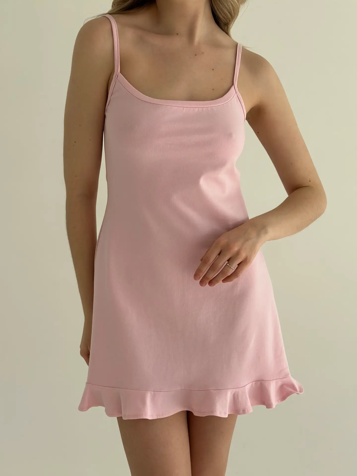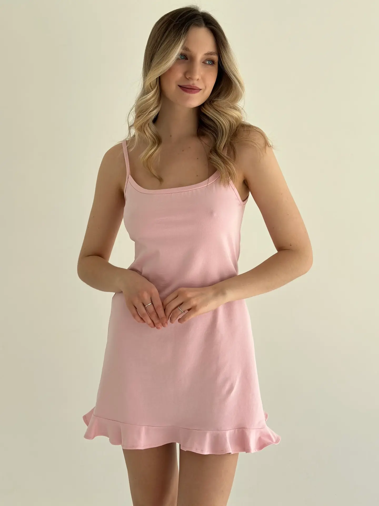 Трикотаж Кулір сукня для сну з рюшем рожева