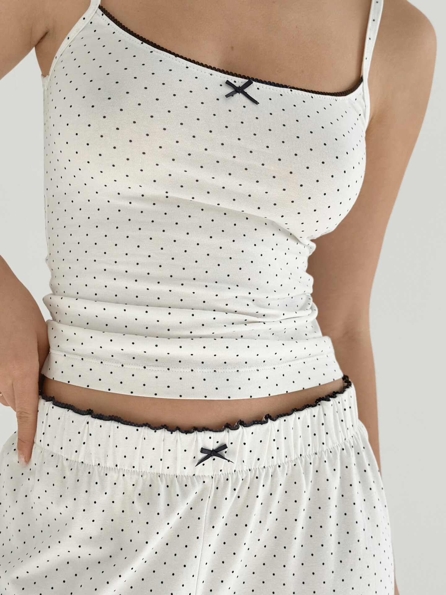 ТОПSOLD OUTТрикотаж костюм штани широкі та майка горох синій на білому