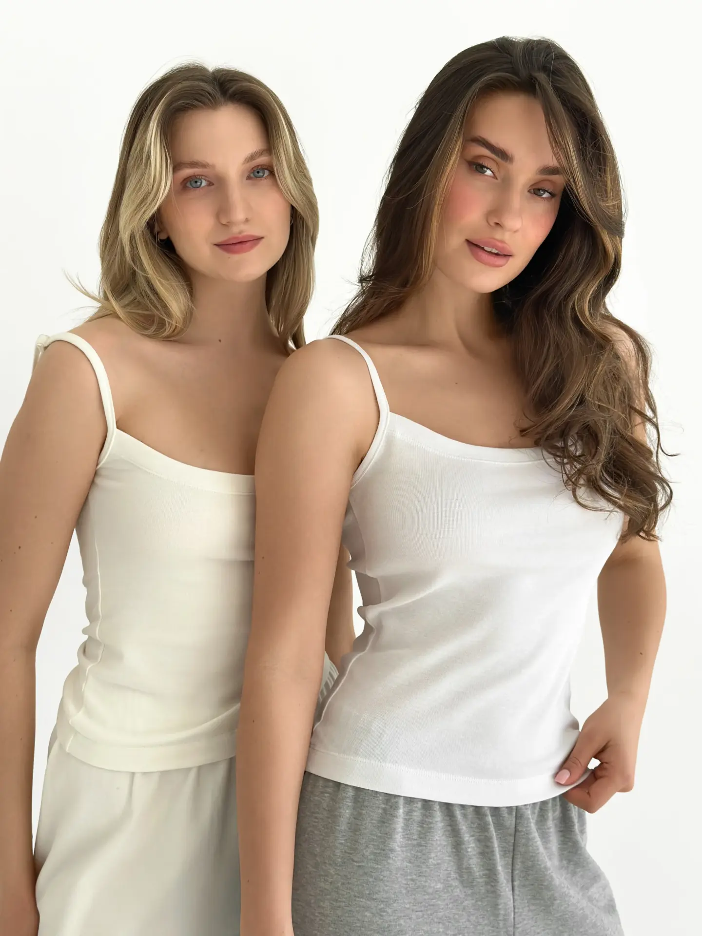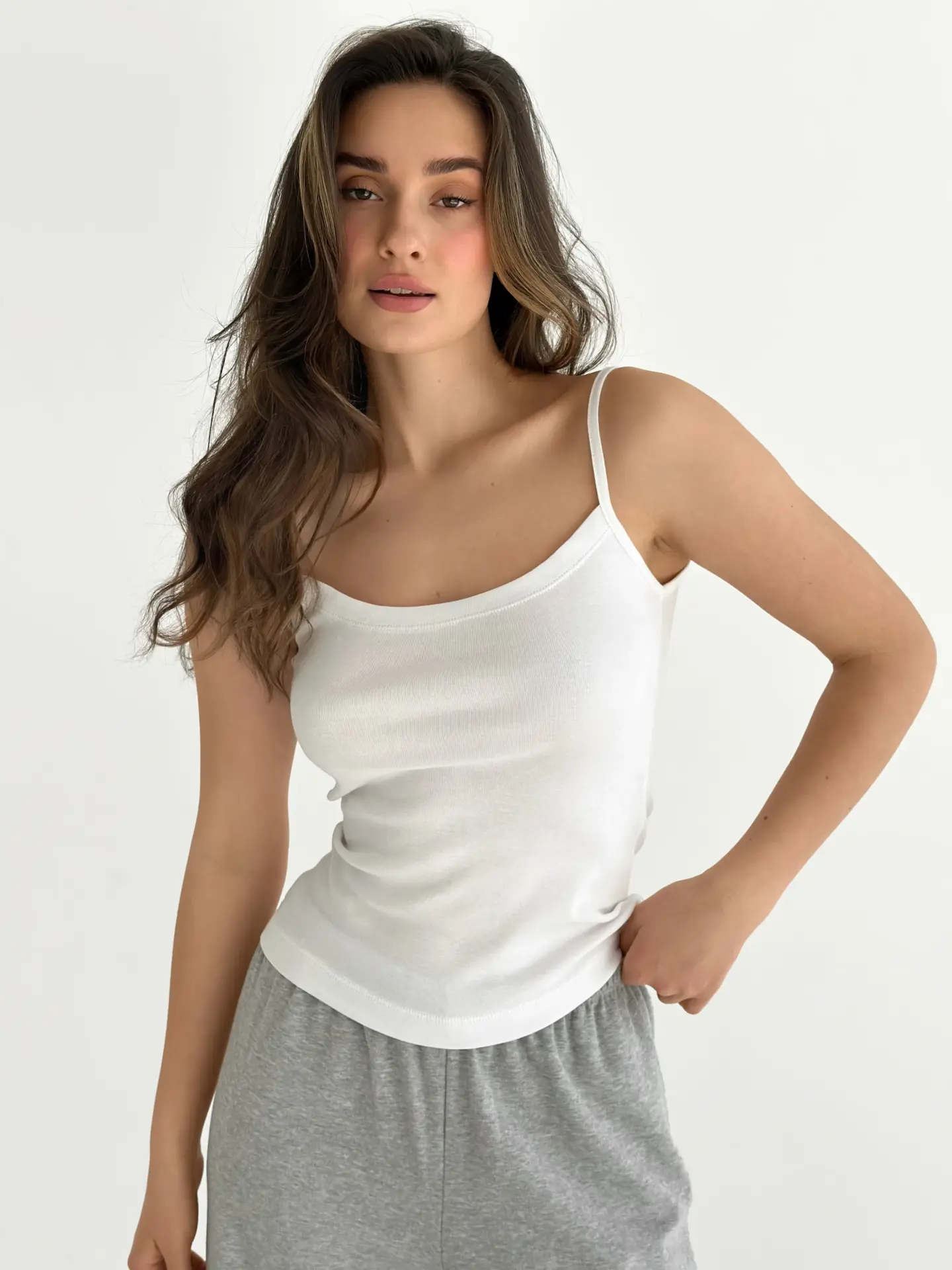 Майка на бретелях з трикотажу «Ніжність» легка й приємна до тіла. М’яка тканина комфортно прилягає і не створює дискомфорту. Зручний варіант для дому та щоденного носіння.