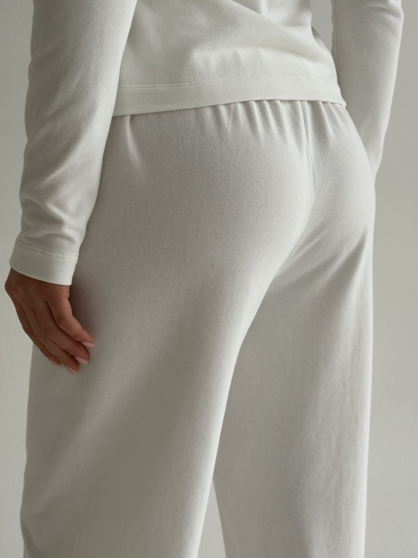 Широкі штани з трикотажу «Ніжність» м’які та комфортні у носінні. Тканина приємна до тіла і дарує відчуття легкості. Вільний крій забезпечує зручність протягом дня і створює розслаблений силует.