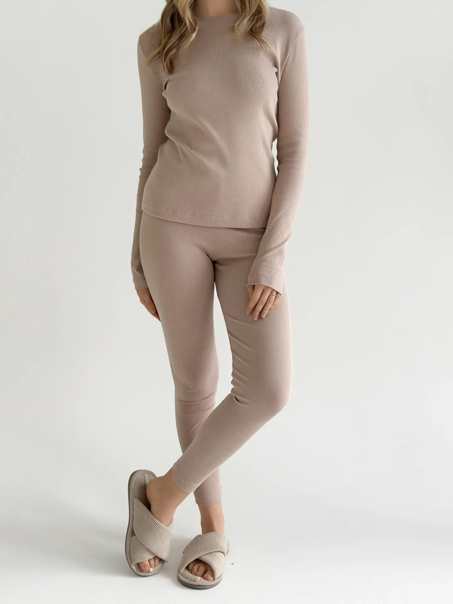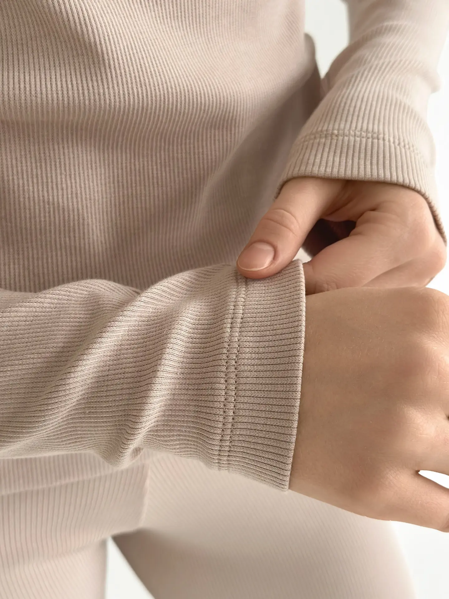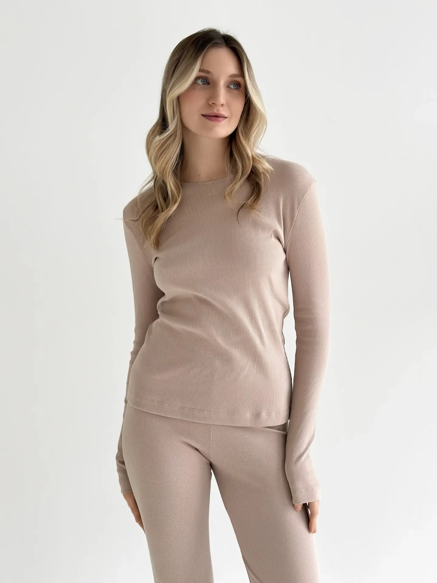 Трикотаж рубчик Лонгслів бежевий (без гудзика) - Twins