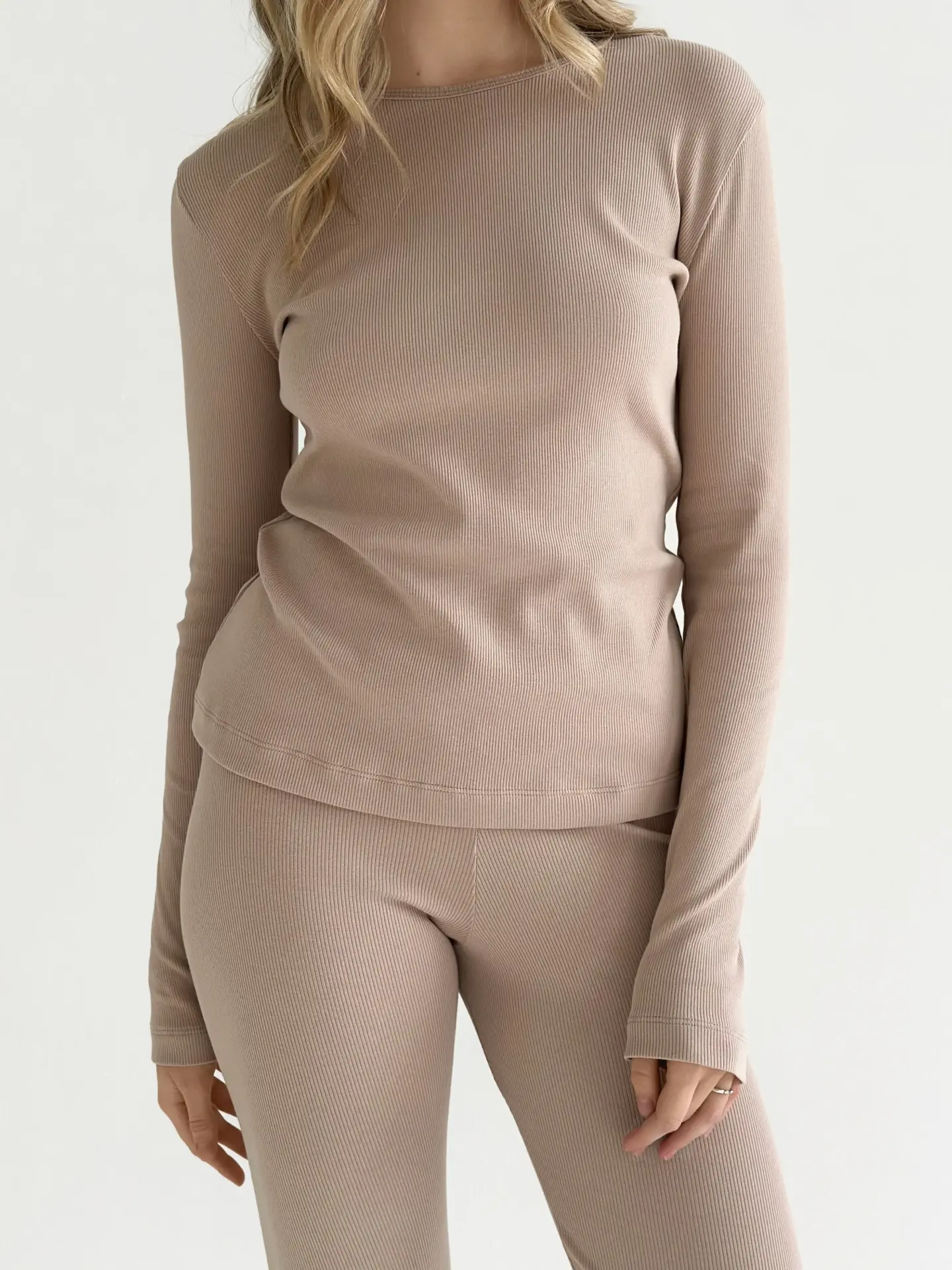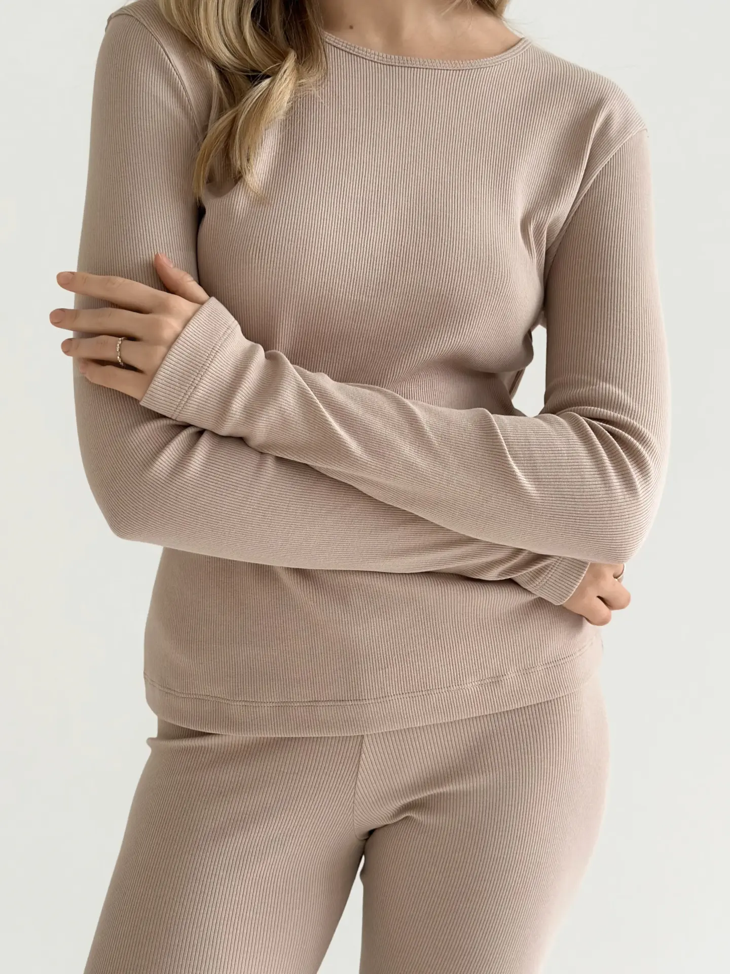 Трикотаж рубчик Лонгслів бежевий (без гудзика)