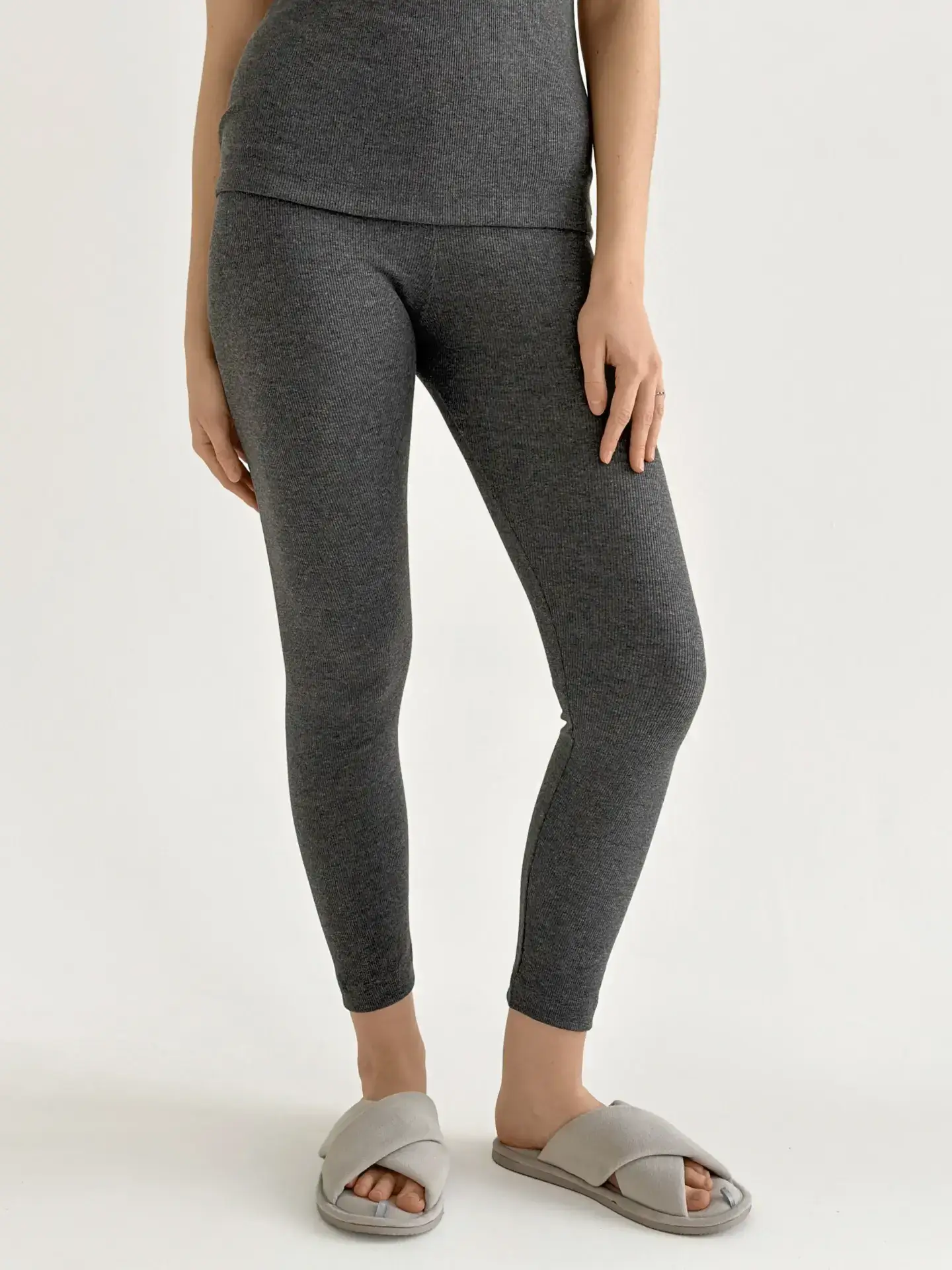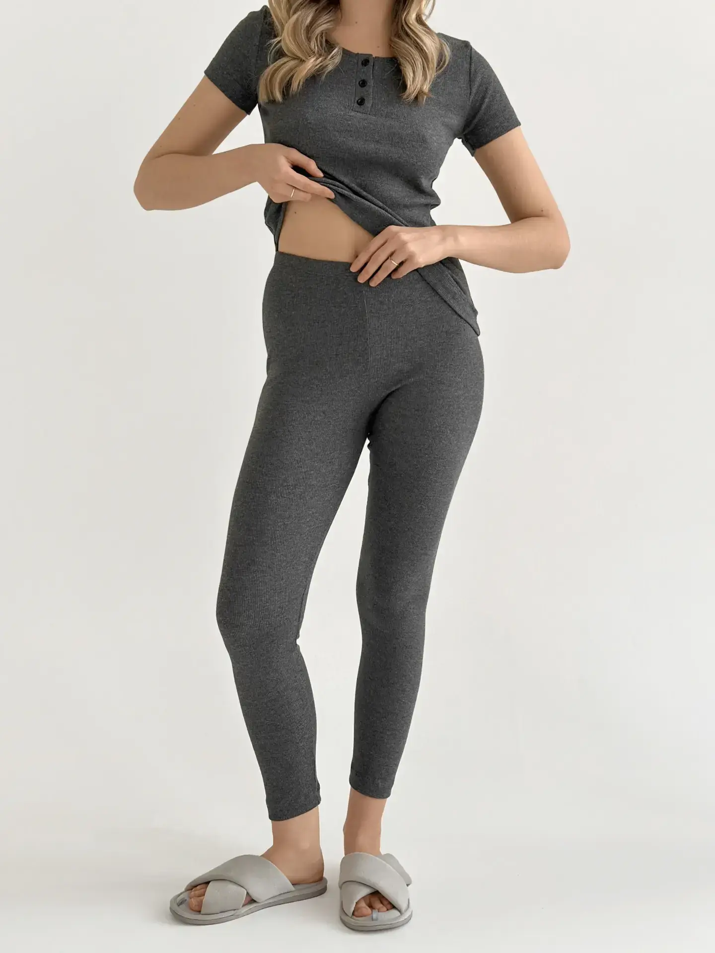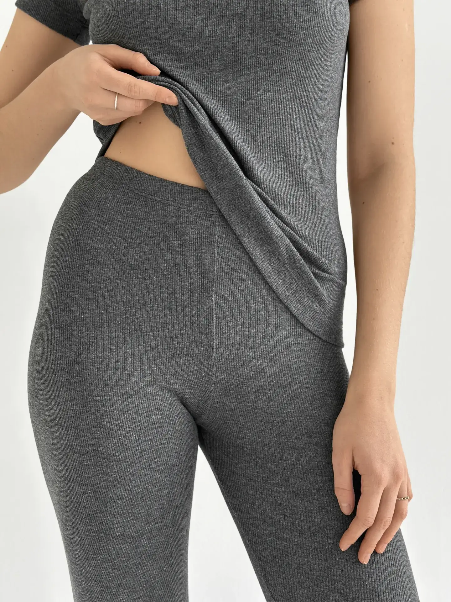 Лосини з трикотажу рубчик поєднують комфорт і стиль. Еластична тканина м’яко облягає фігуру та забезпечує зручність у носінні. Ідеально підходять для повсякденних образів та відпочинку.