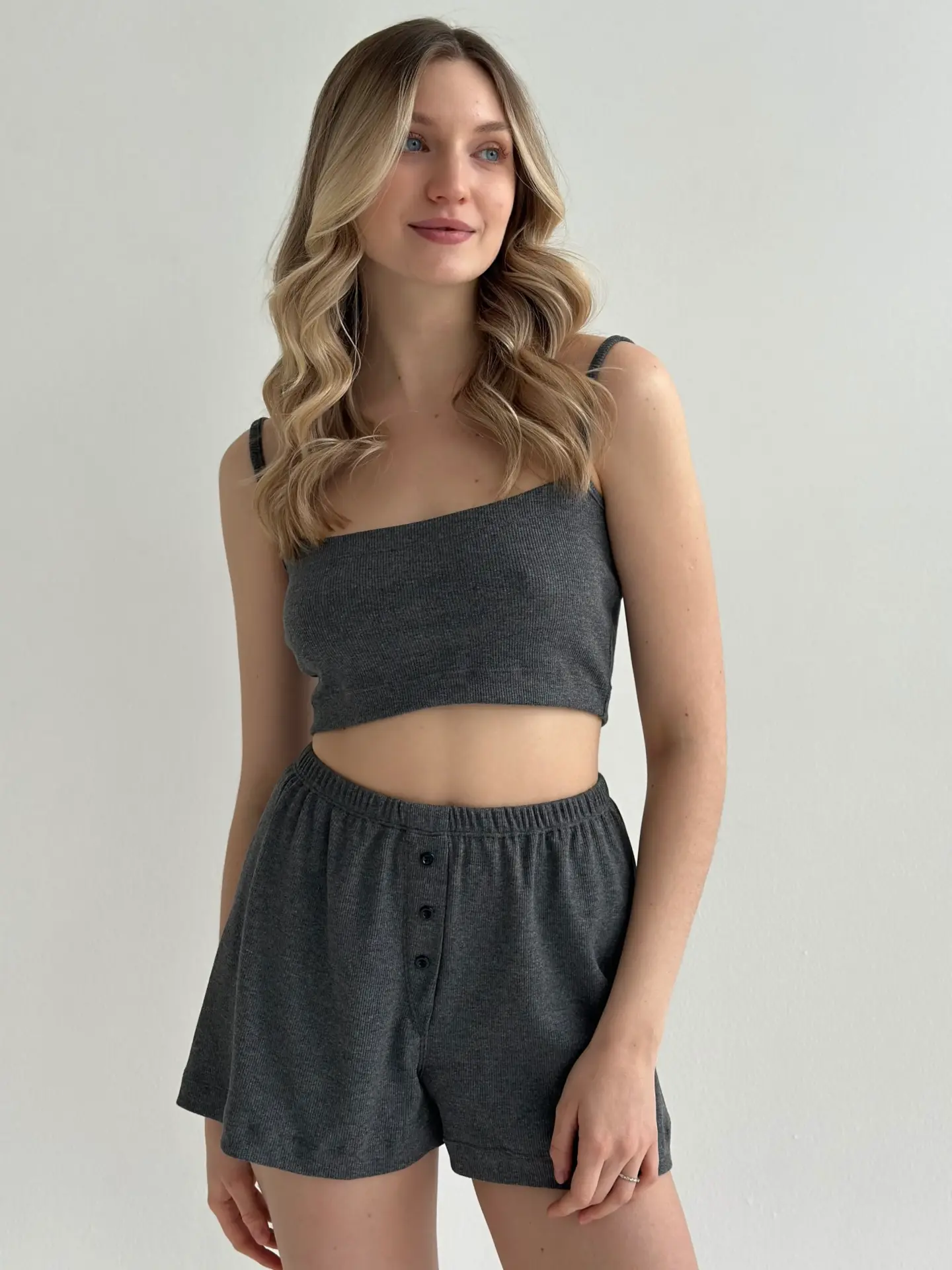 Шорти з гульфіком із трикотажу рубчик поєднують комфорт і практичність. М’яка еластична тканина забезпечує зручність у носінні та свободу рухів. Лаконічний дизайн робить їх універсальним вибором для дому та відпочинку.