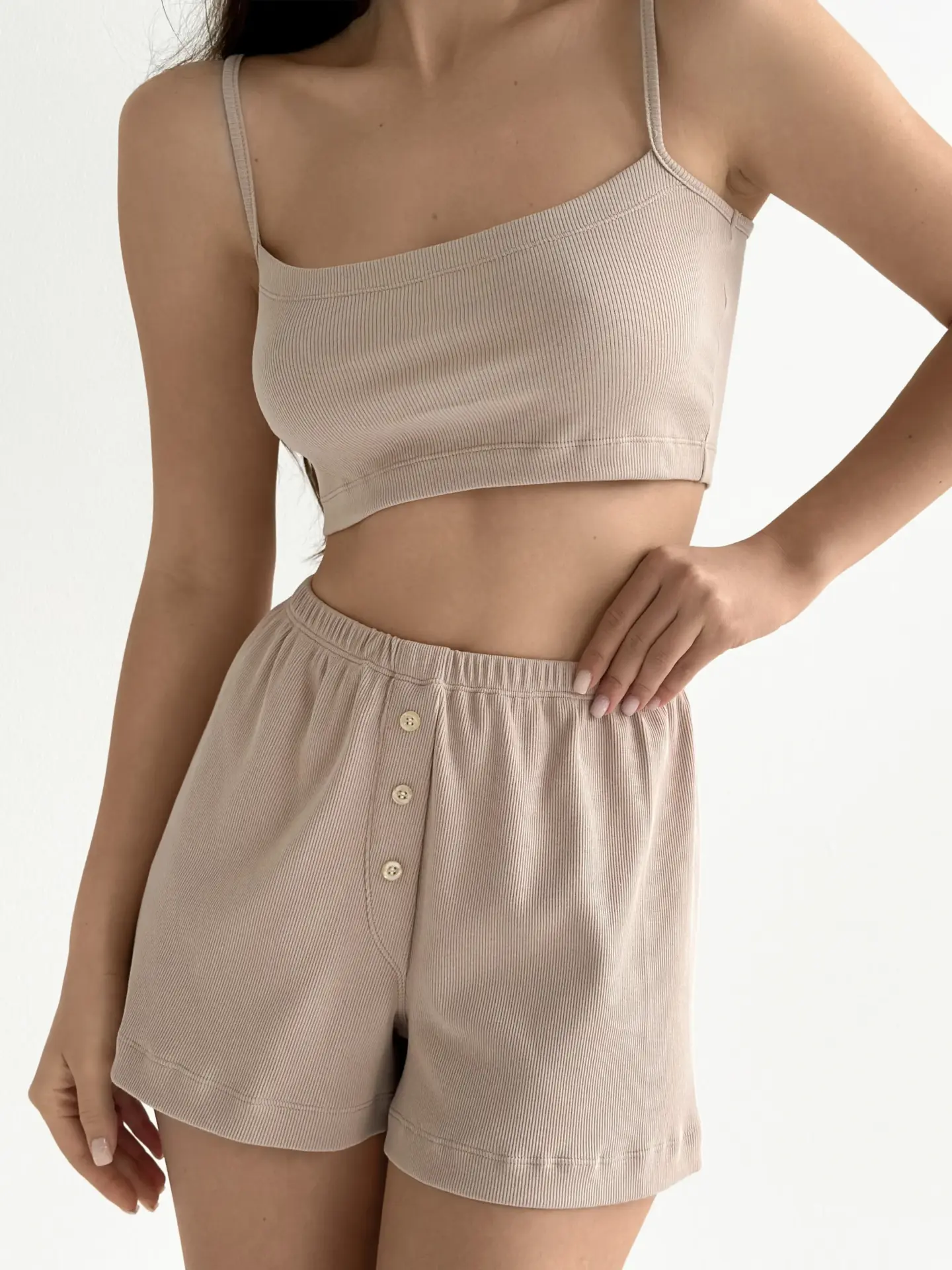 Трикотаж рубчик Шорти з гульфіком бежеві